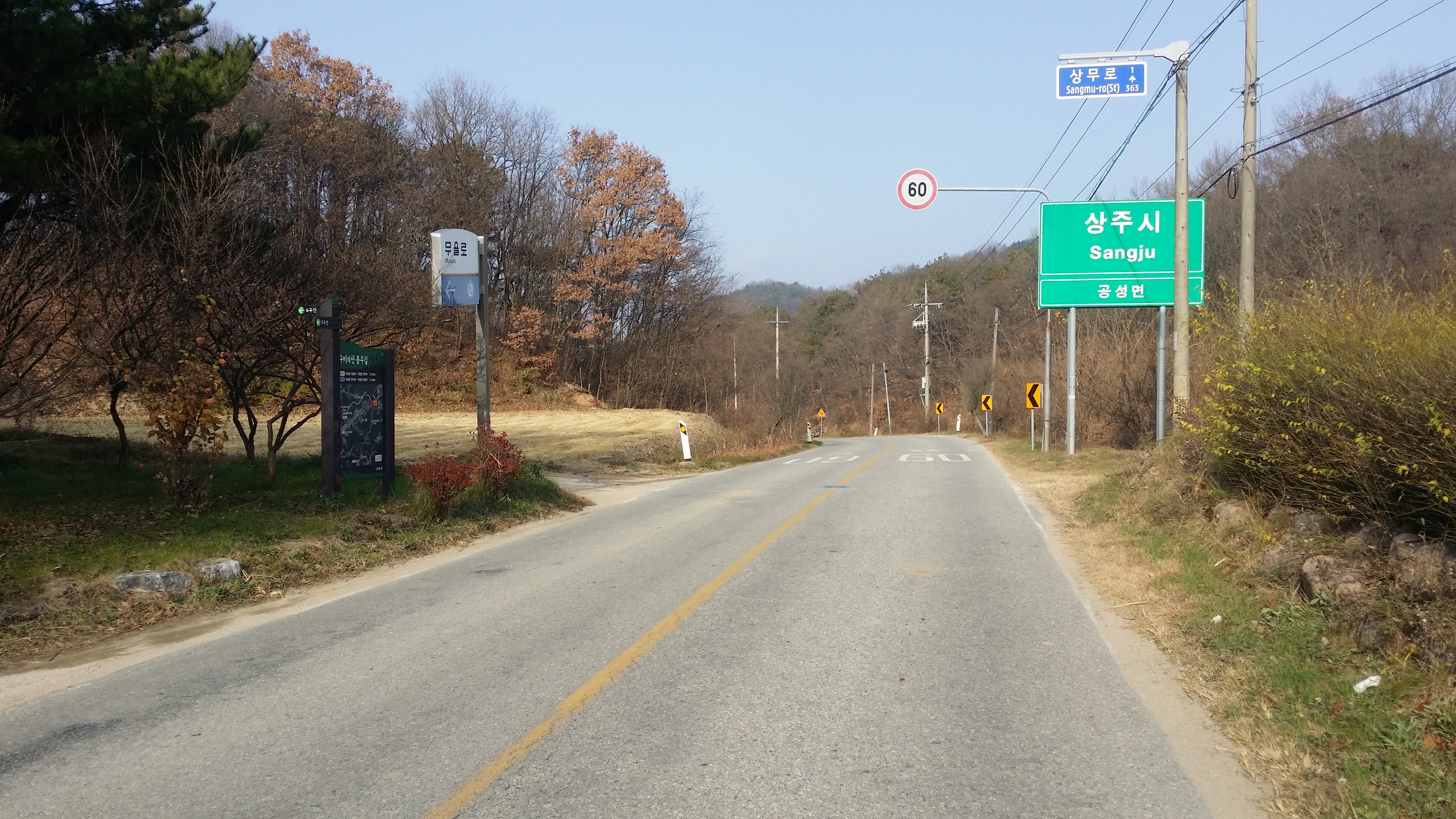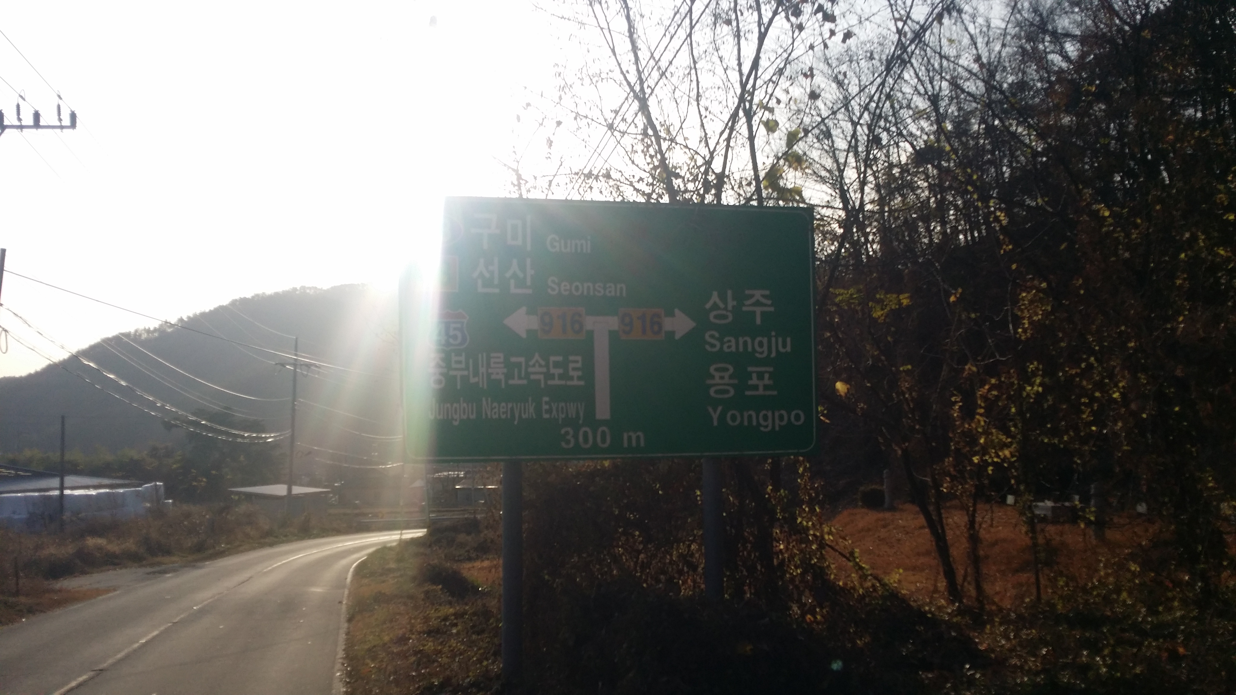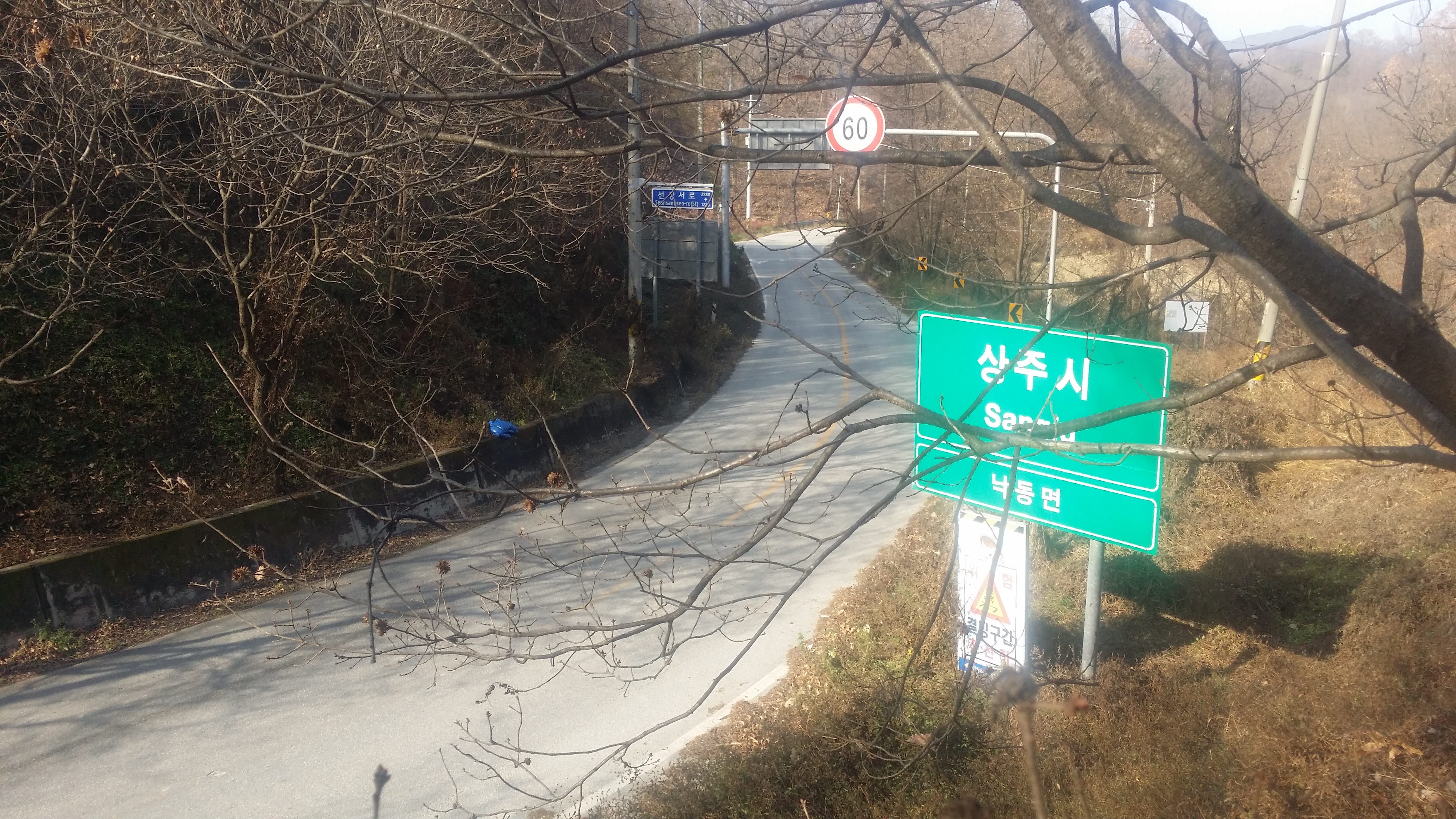 15:24 옥성 곶감 영농법인 입구에서 주아현을 바라보고, 선산휴계소로 향한다