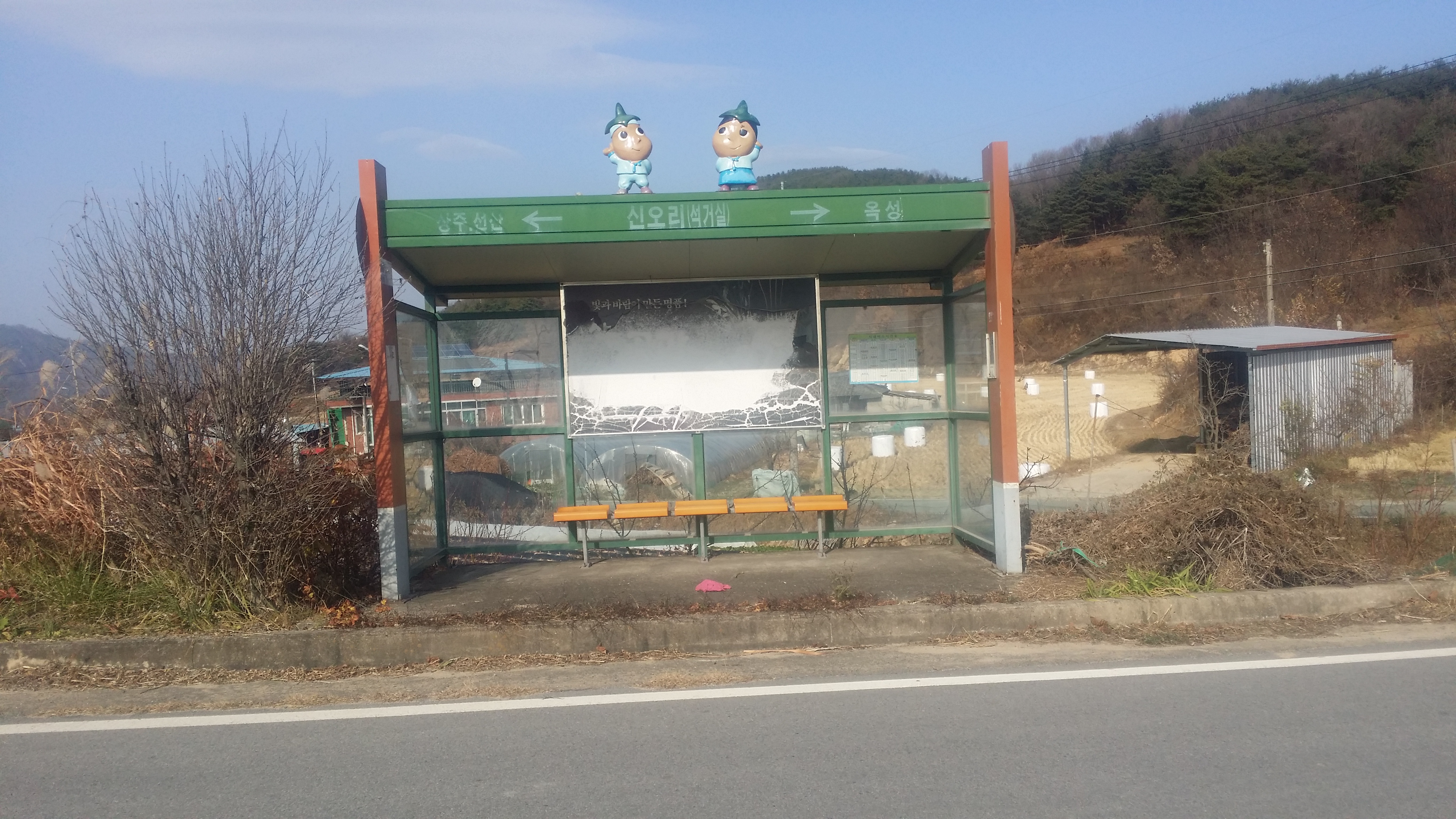 15:39 덕촌2리 버스 정류소 및 구멍가게 / 15시46분경 72-5번(선산 15시 발) 선산行 시내버스가 지나간다