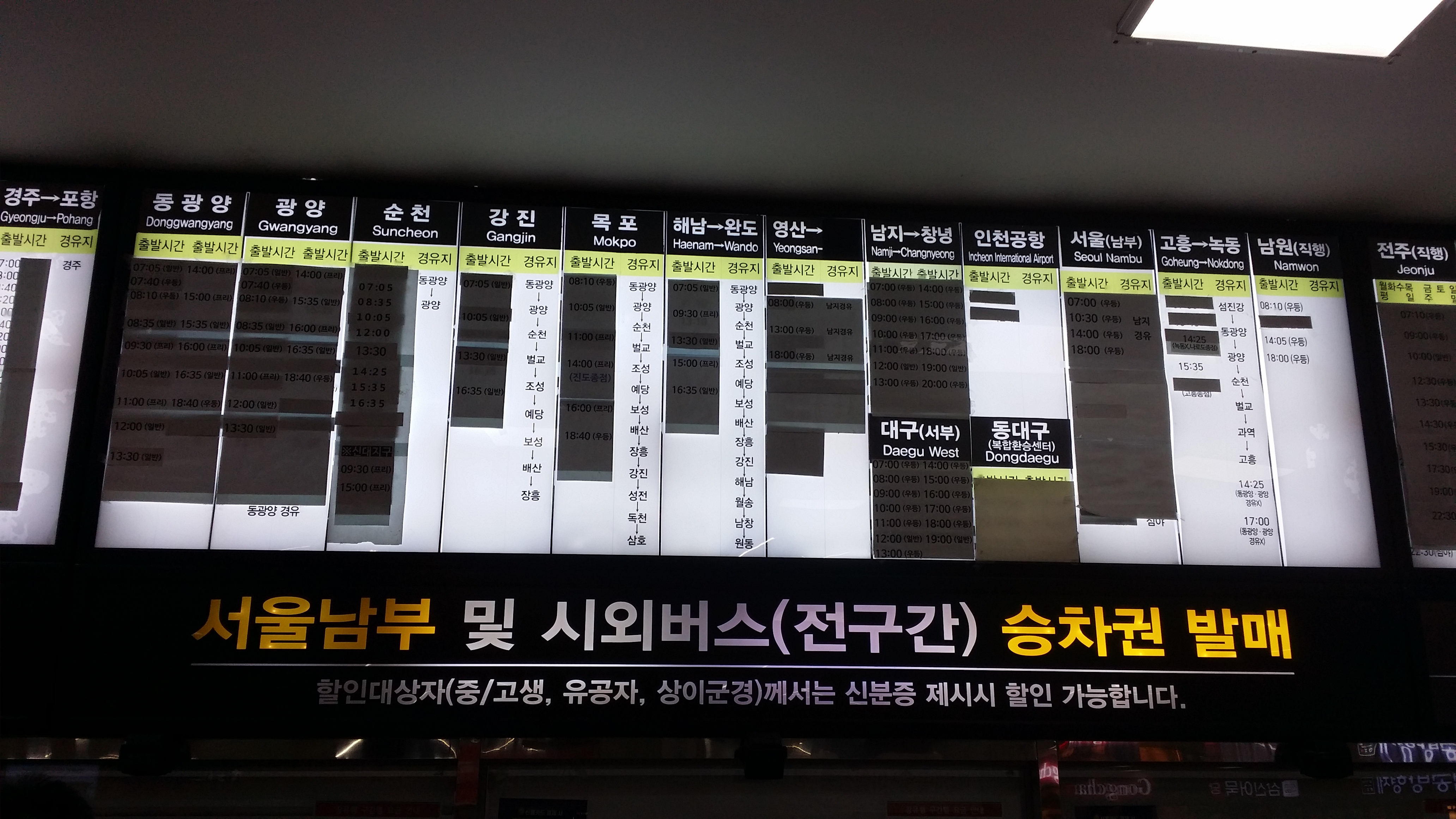 예상 운행 시간이 1시간50분인데 신대구 고속도로 밀린다고 구마고속도로로 우회했다지만 2시간13분만에 서부터미널에 도착했다.