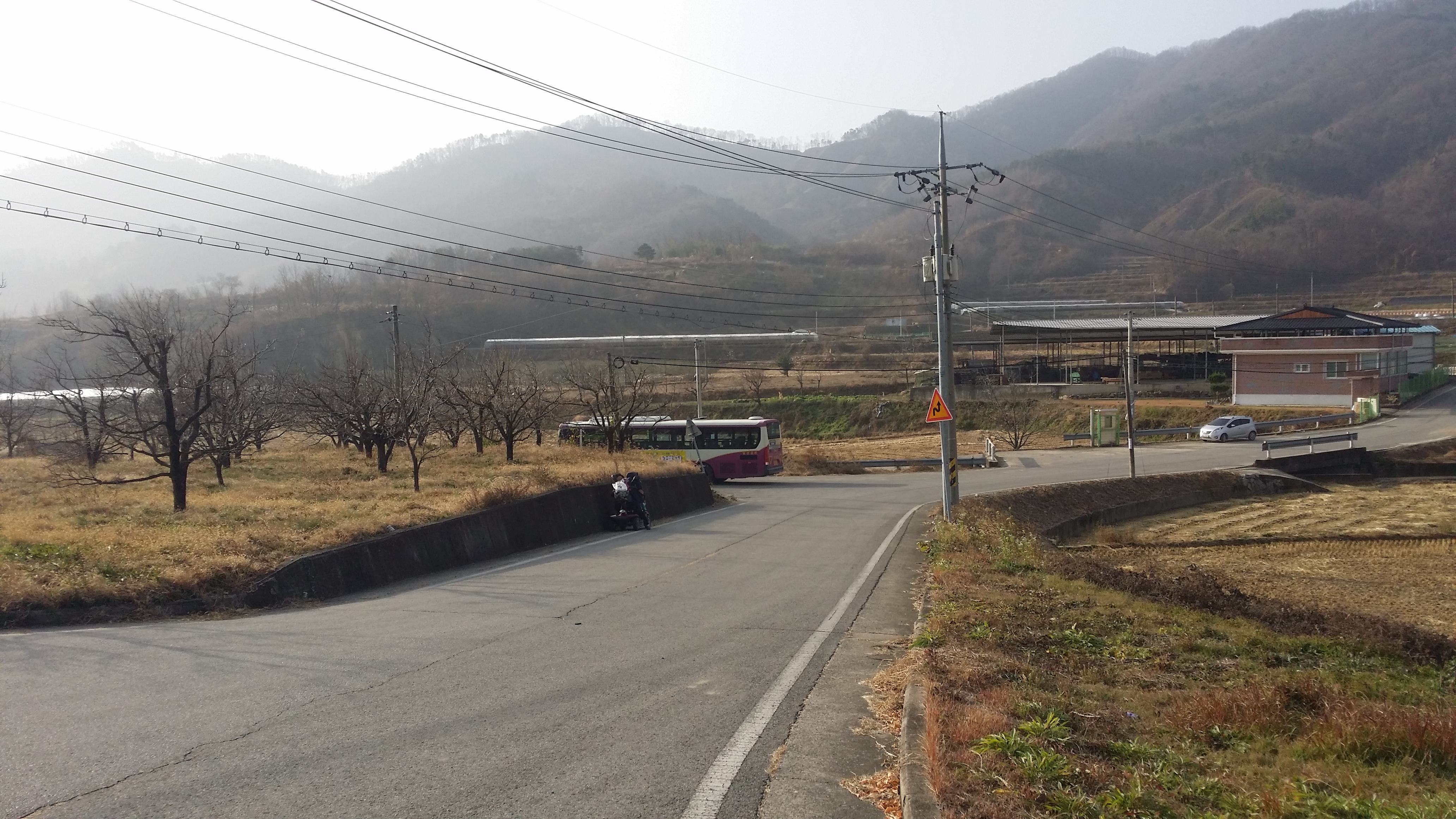 15:45 중부내륙 고속도로 선산휴계소 입구에 도착할쯤 선산행 72-5번 버스가 지나간다