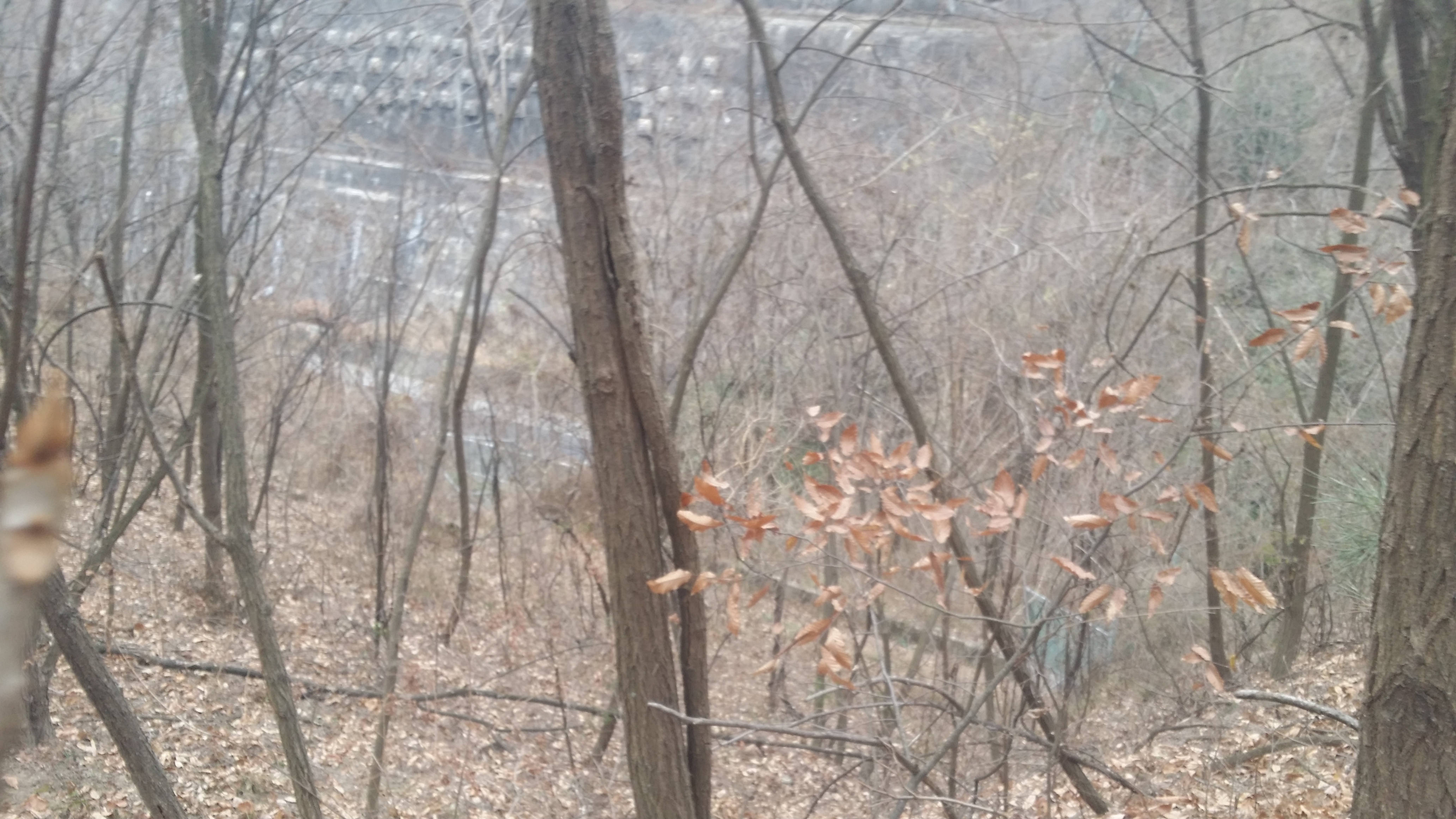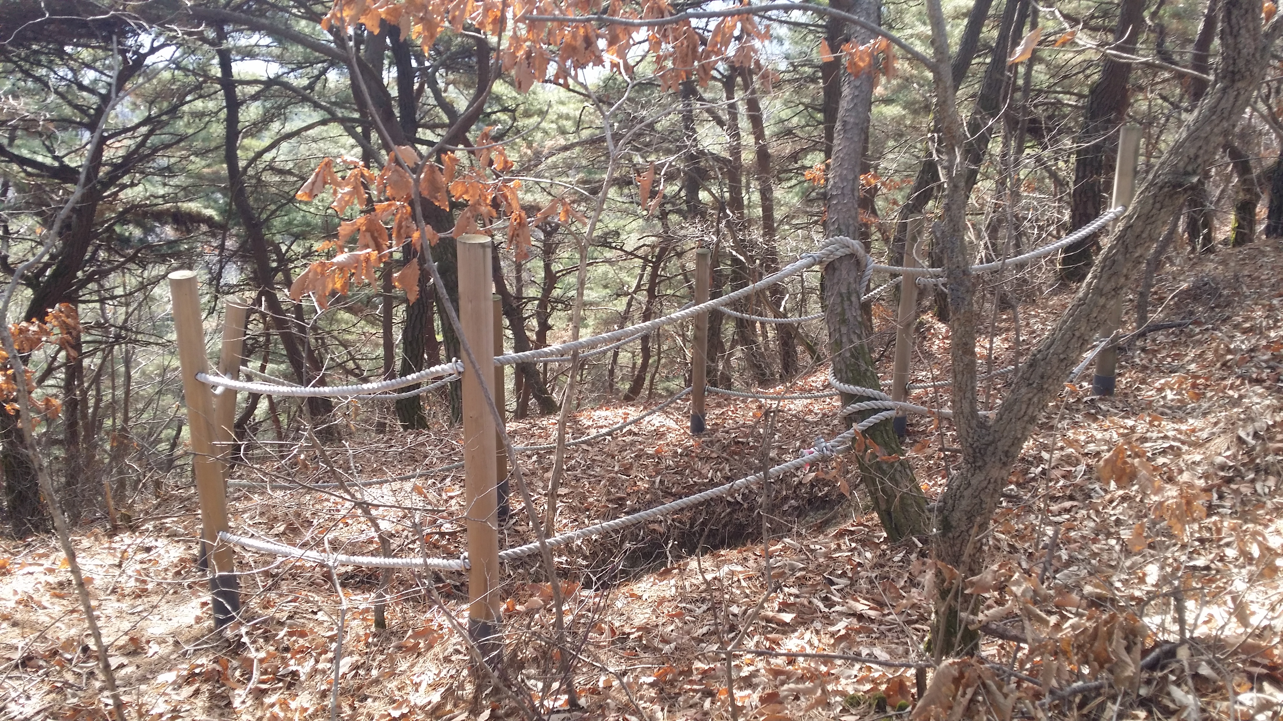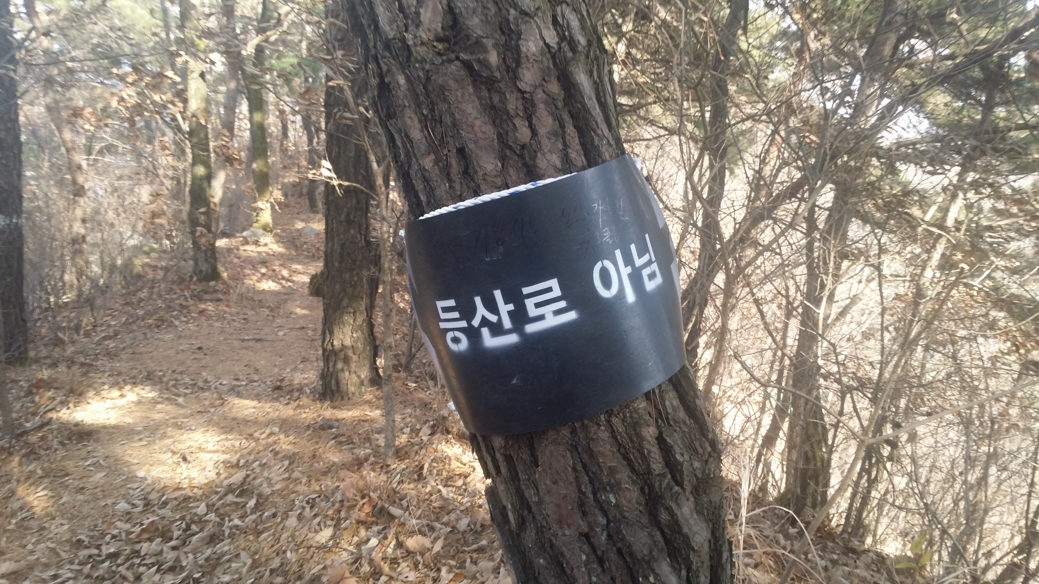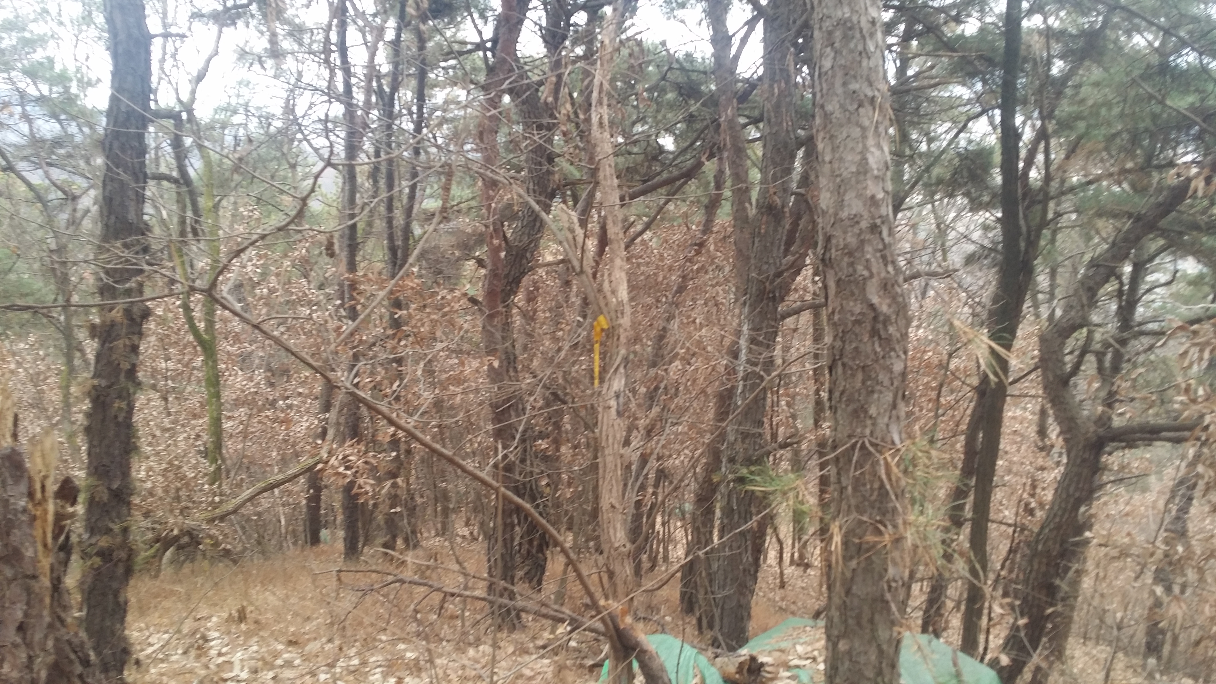 14:39 마루금에 복귀하여 뒤돌아보니 옹벽으로 올라서도 목재 야적장과 크게 관련은 없는것 같다