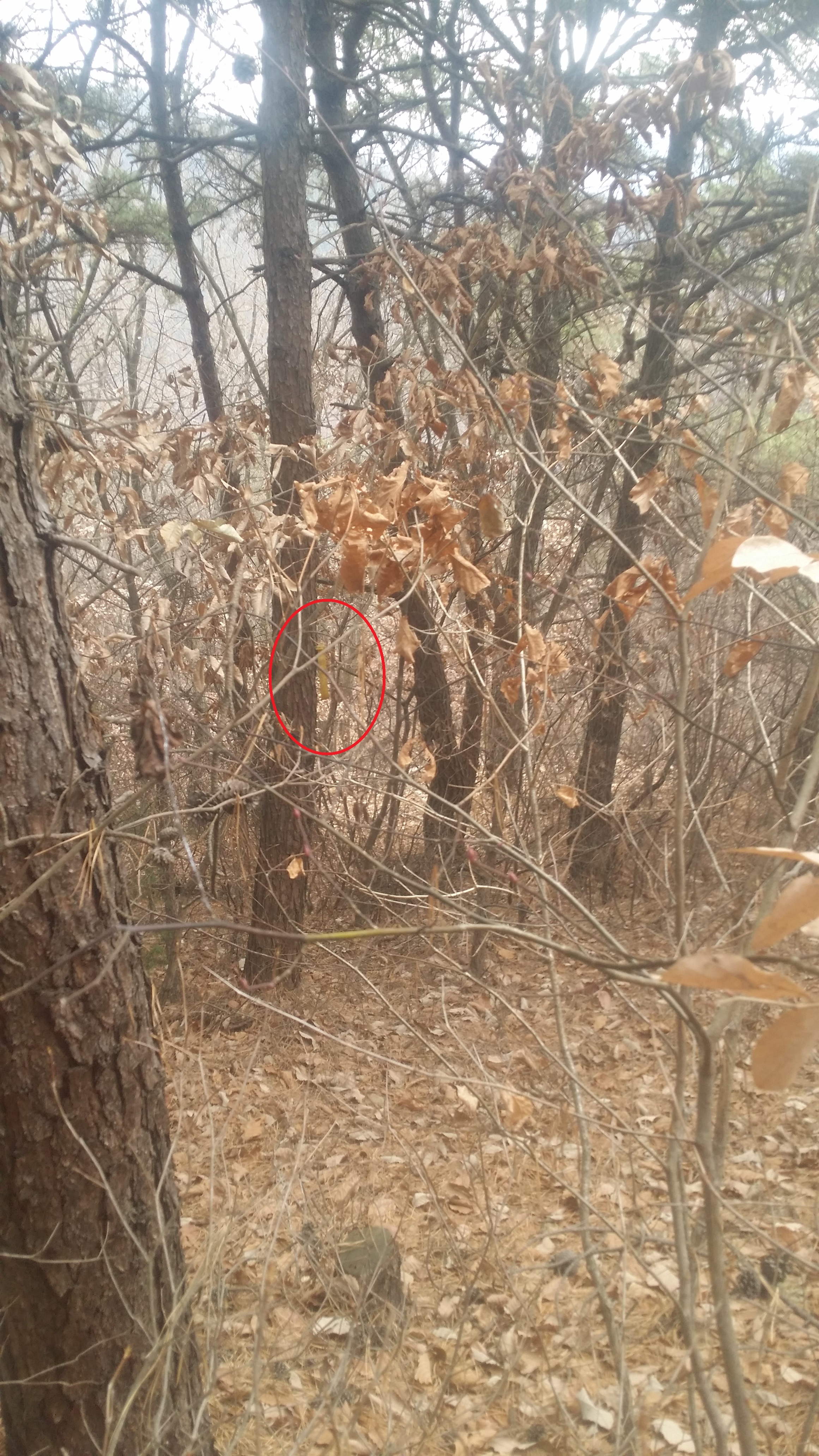14:11 선산독동반송 갈림길 / 좌측으로 시그럴이 보인다. 알바다 천연기념물 제357호 선산독동반송 가는길이다 우측으로 등로가 있네