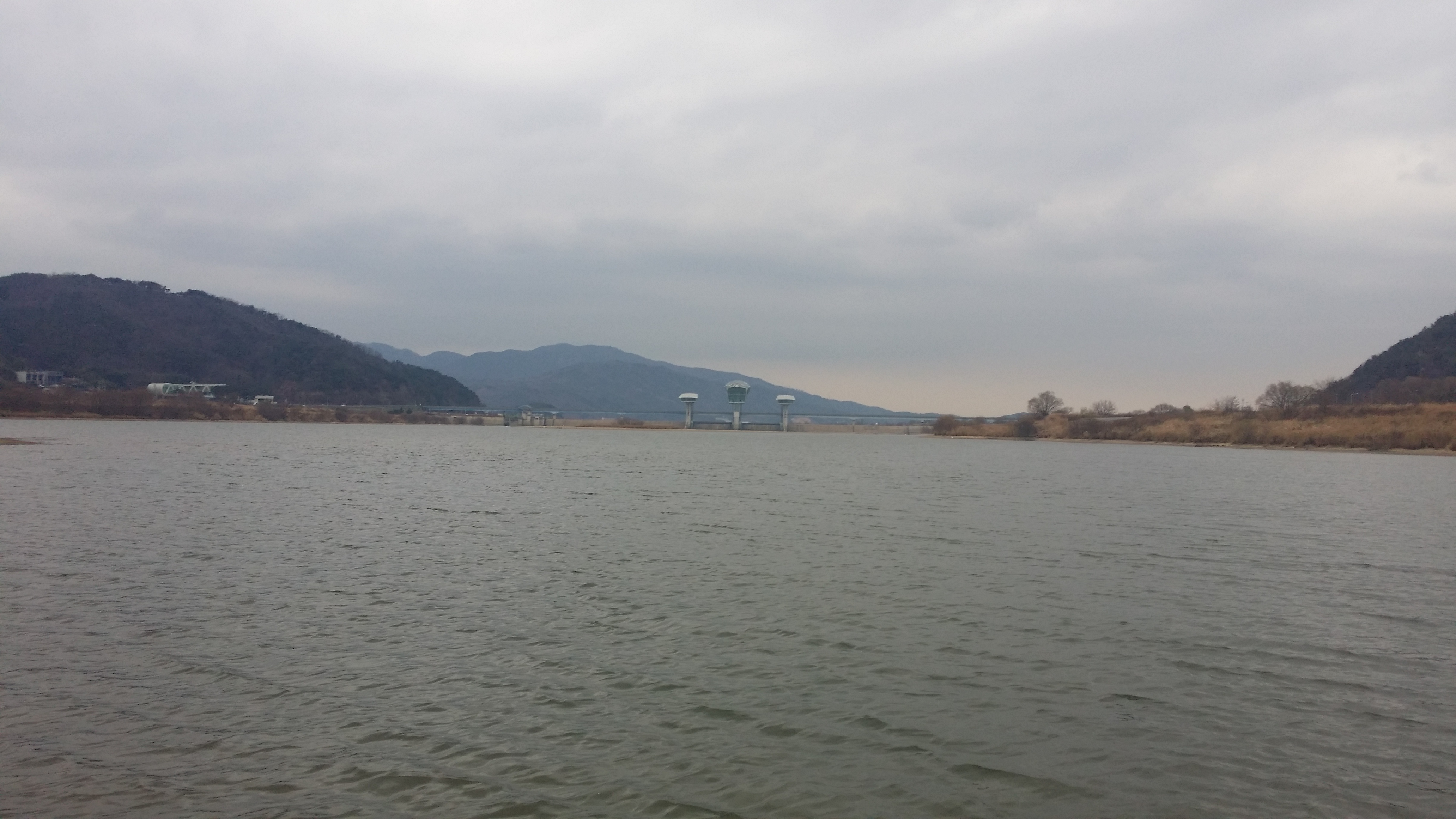 낙동강과 구미보를 바라보고