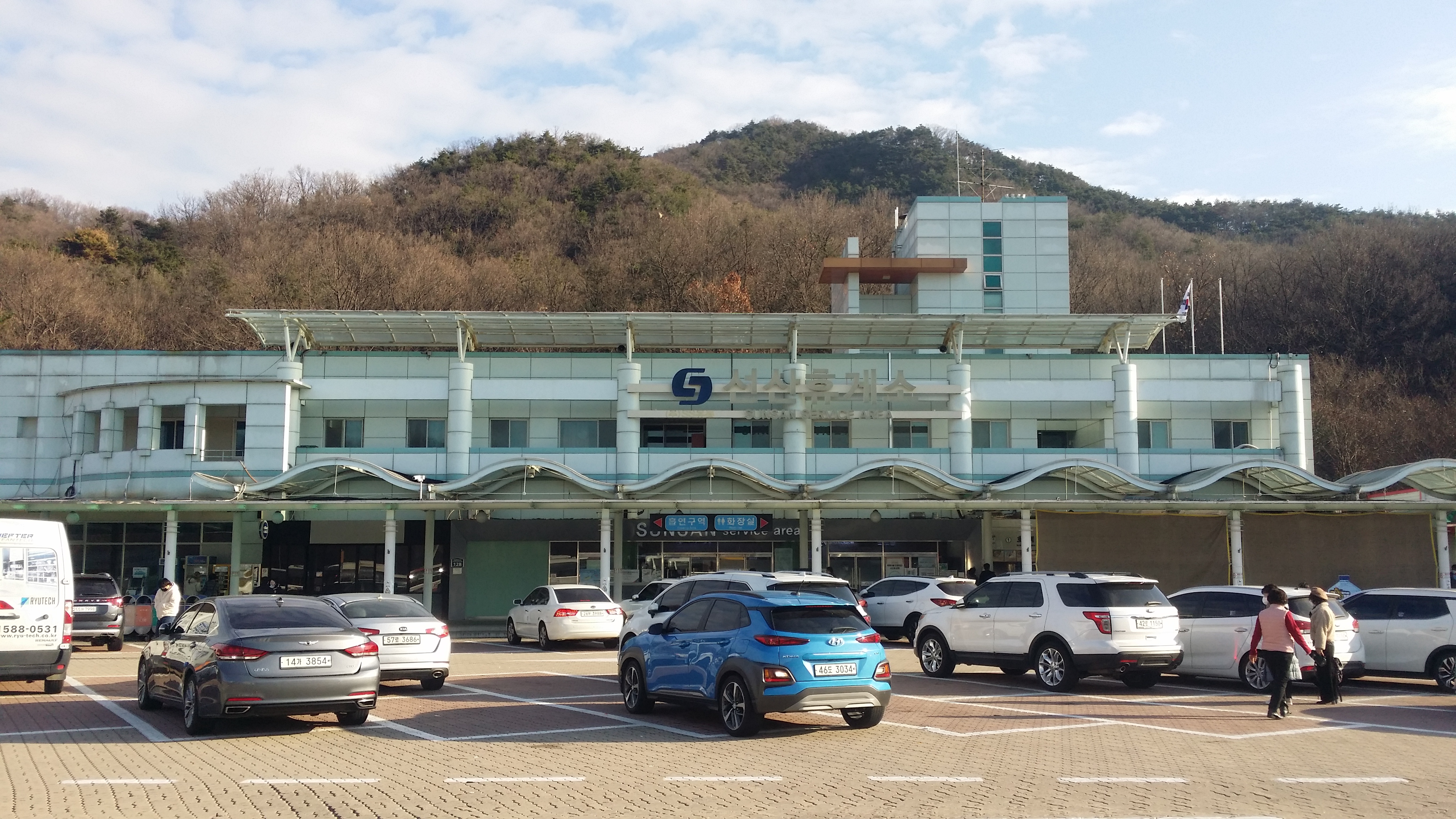09:28 선산휴계소(상행선) / 예상보다 일찍 도착했다. 휴계소 진입로 방향으로 이동하면 전기차충전소옆에 하행선 휴계소로 가는 통로가 있다