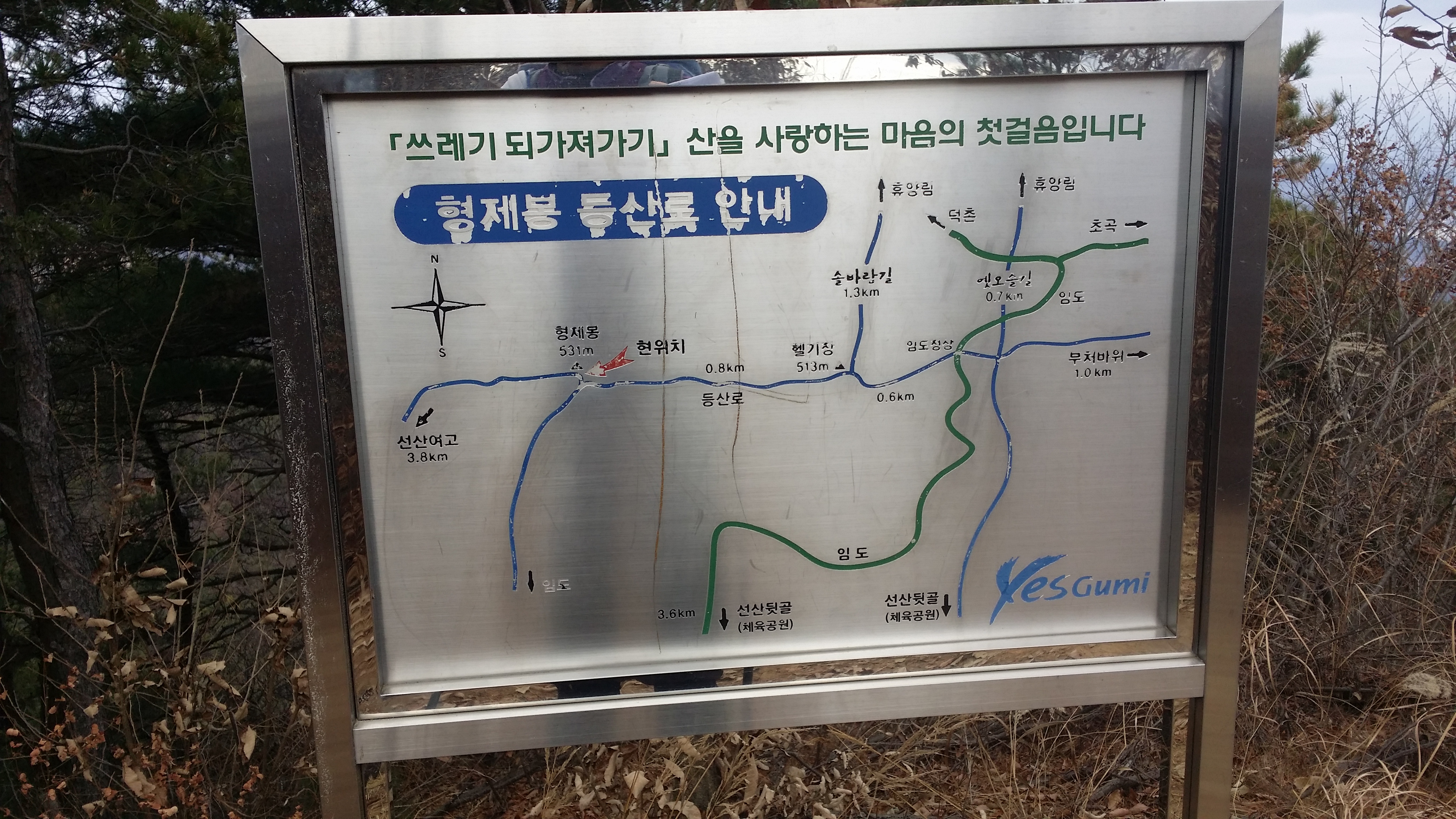 - 산행구간 : (중부내륙고속도로 선산휴계소) ~ 주아현 ~ 형제봉 ~ 신산(1,163順) ~ 낙동강&감천 합수부 ~ (원리마을)