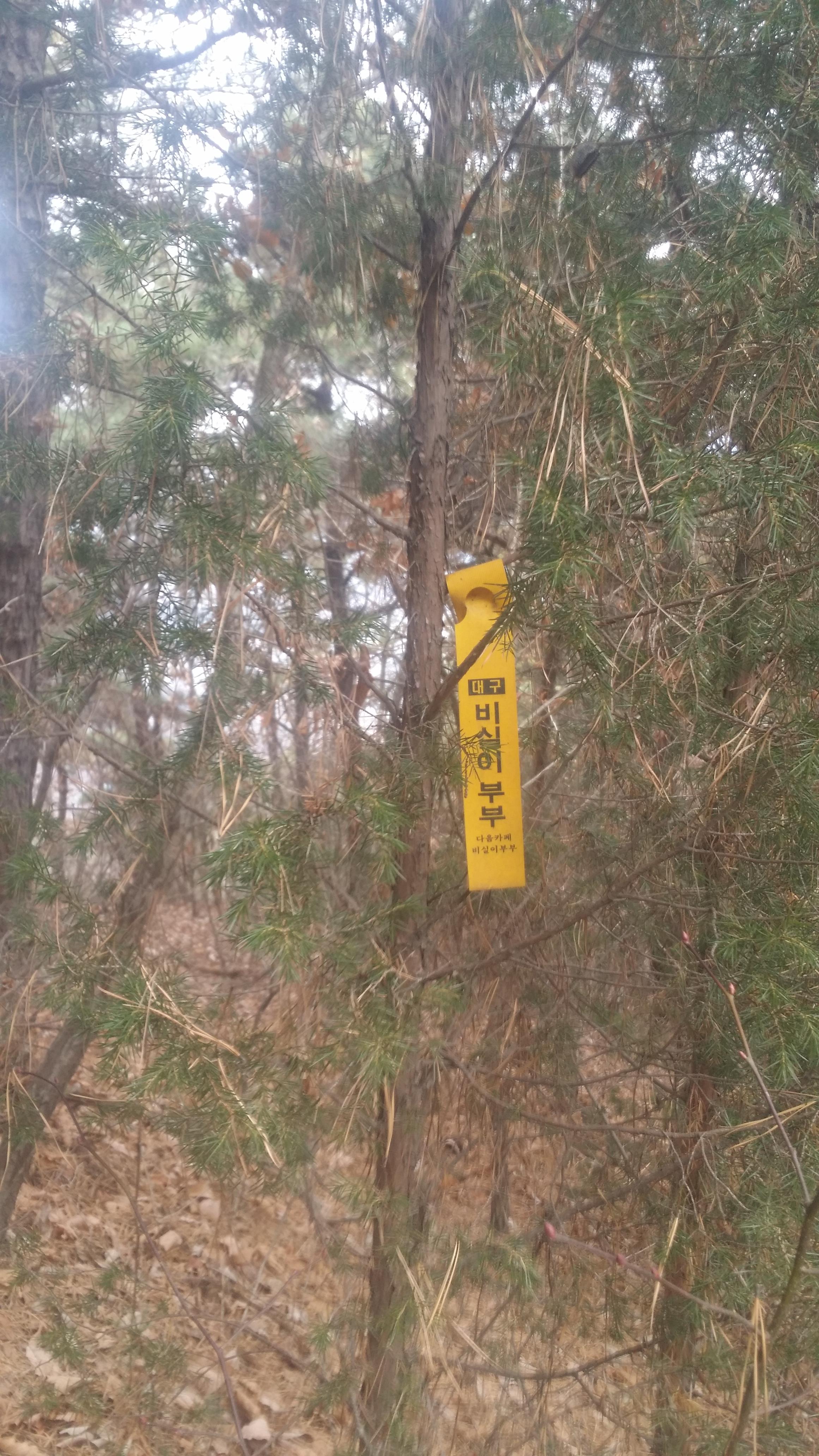 12:36~12:45 등로체크지점 / 435.6봉을 내려서다 등로는 좌측으로 꺽이면서 시그럴을 잘보며 내려서야 한다. 어느 순간 등로가 좌측으로 이동한다. 비실이부부 시그럴이 보이면 여기서 우측으로 내려서야 한다. 만약 지나쳤다면 2~3m 아래에 보만식계 시그럴과 우측으로 등로가 있다. 난 길이 좋아 쭉 내려 섰는데 다시 나타난 비실이부부 시그럴 보고 잘 가고 있구나 했는데 지맥 왼쪽 능선을 내려서고 있어 BACK
