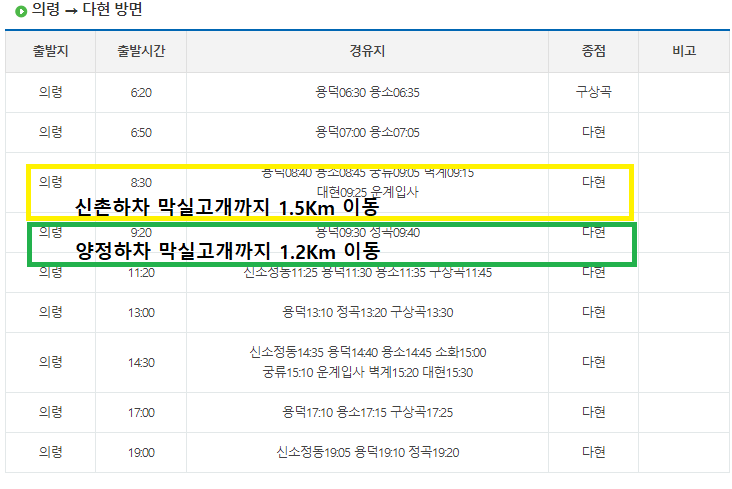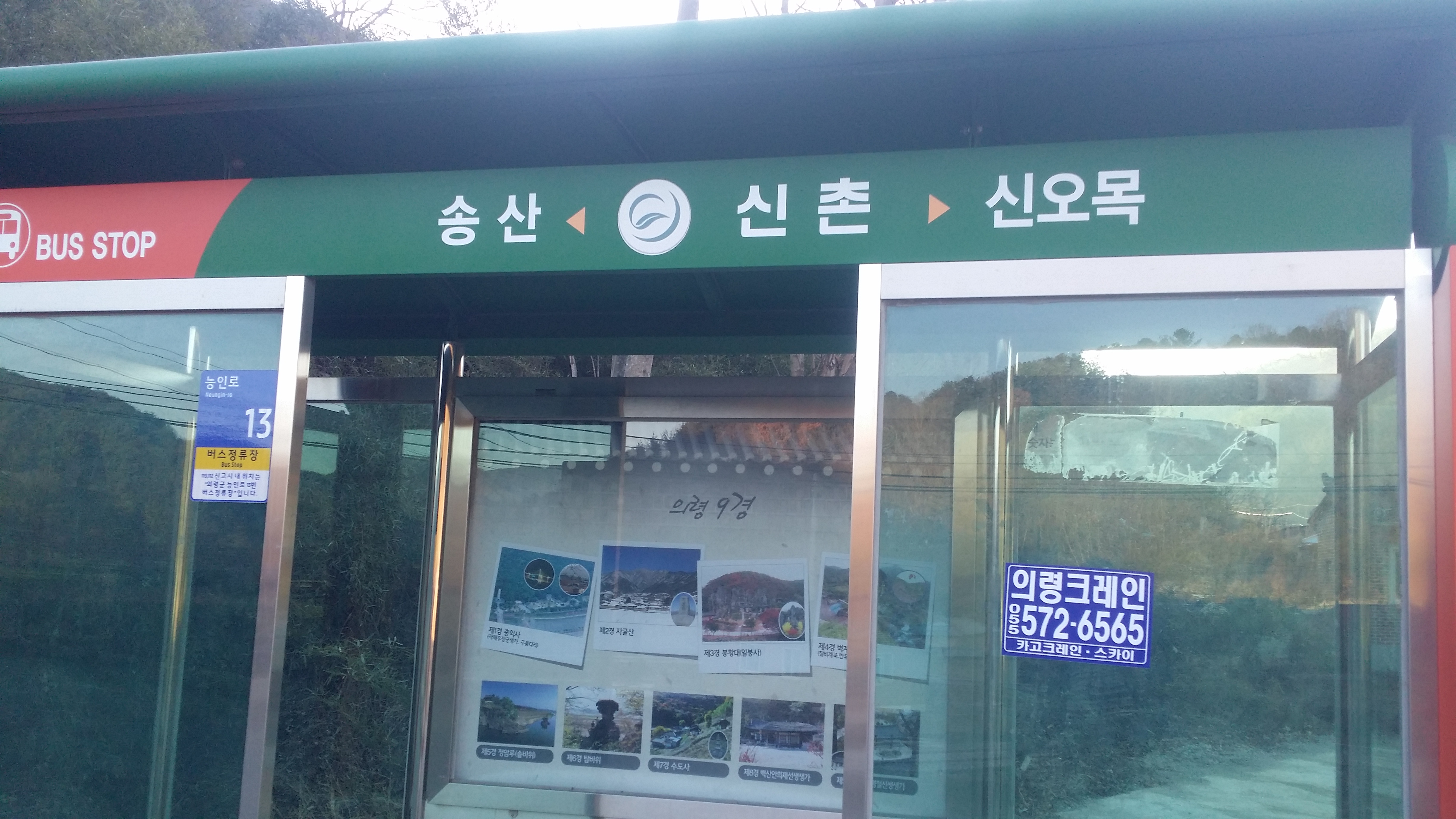 오늘은 지난번과 달리 신촌마을에서 막실고개로 진입한다. 참고로 터미널 입구에도 버스 정류소가 있다. 이는 의령읍내를 운행하는 노선 정류소다.
