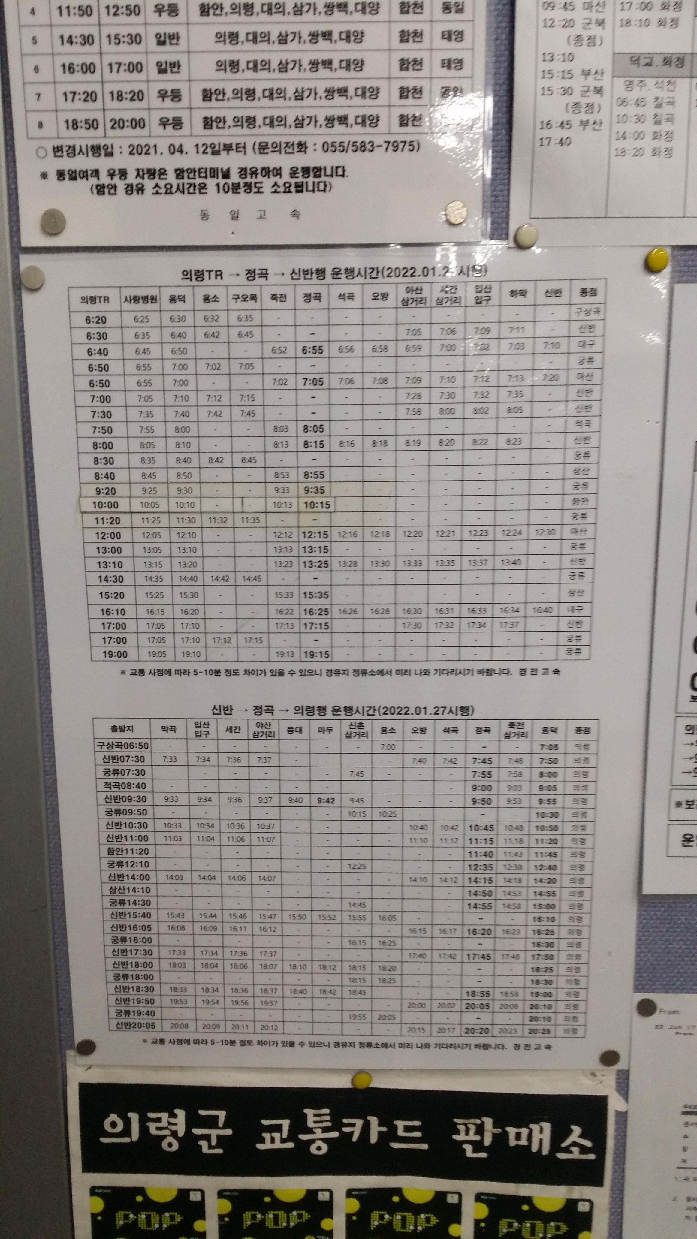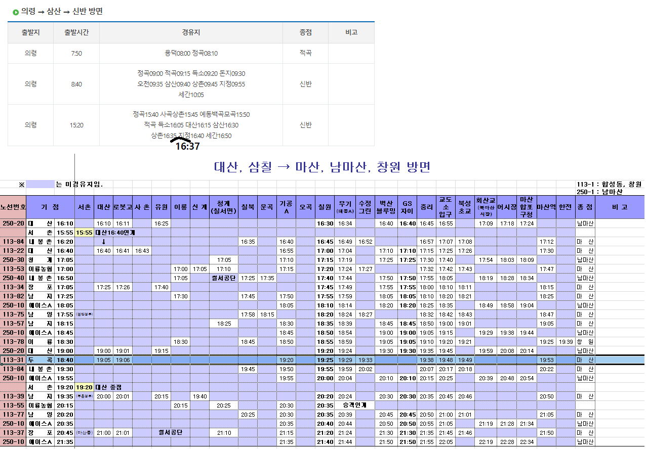 15시20분에 의령에서 출발한 버스가 16시37분 이전에 도착하리라 예상 했는데, 16시44분이 되어서야 도착한다. 신반으로 갔다가 의령으로 가야 하는데 버스요금이 엄청나네. 강추위에 산행지 선택의 한계로 산행을 했다만, 마산으로 탈출하는 방법도 있는데, 아쉽네