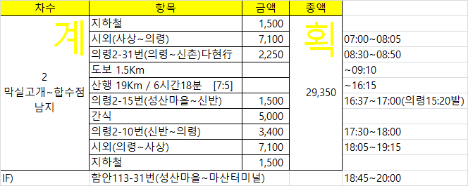 - 산행구간 : (신촌 정류소) ~ 막실고개 ~ 옥녀봉 ~ 왕봉산(1,168順) ~ 낙동강&남강 합수부 ~ (성산 정류소)