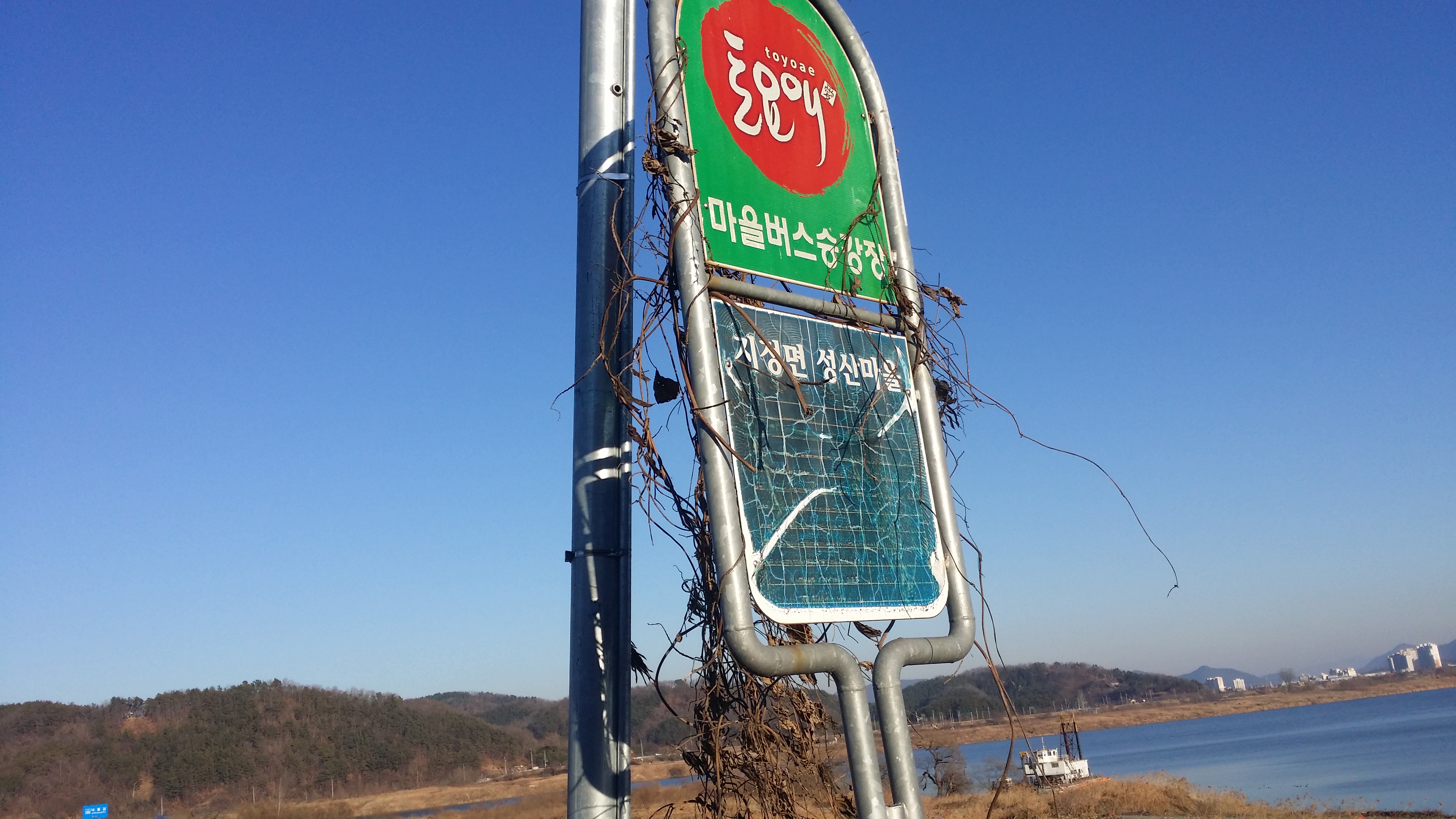 08:54 신촌정류소 / 예상보다 4분 초과 되었다. 날머리에서 16시37분경(의령 15시20분發) 버스를 놓치면 2시간을 추위에 떨어야 한다. 농어촌 버스라 예상 시간보다 10분전에 도착하여야 안전 하기에 마음이 급하다