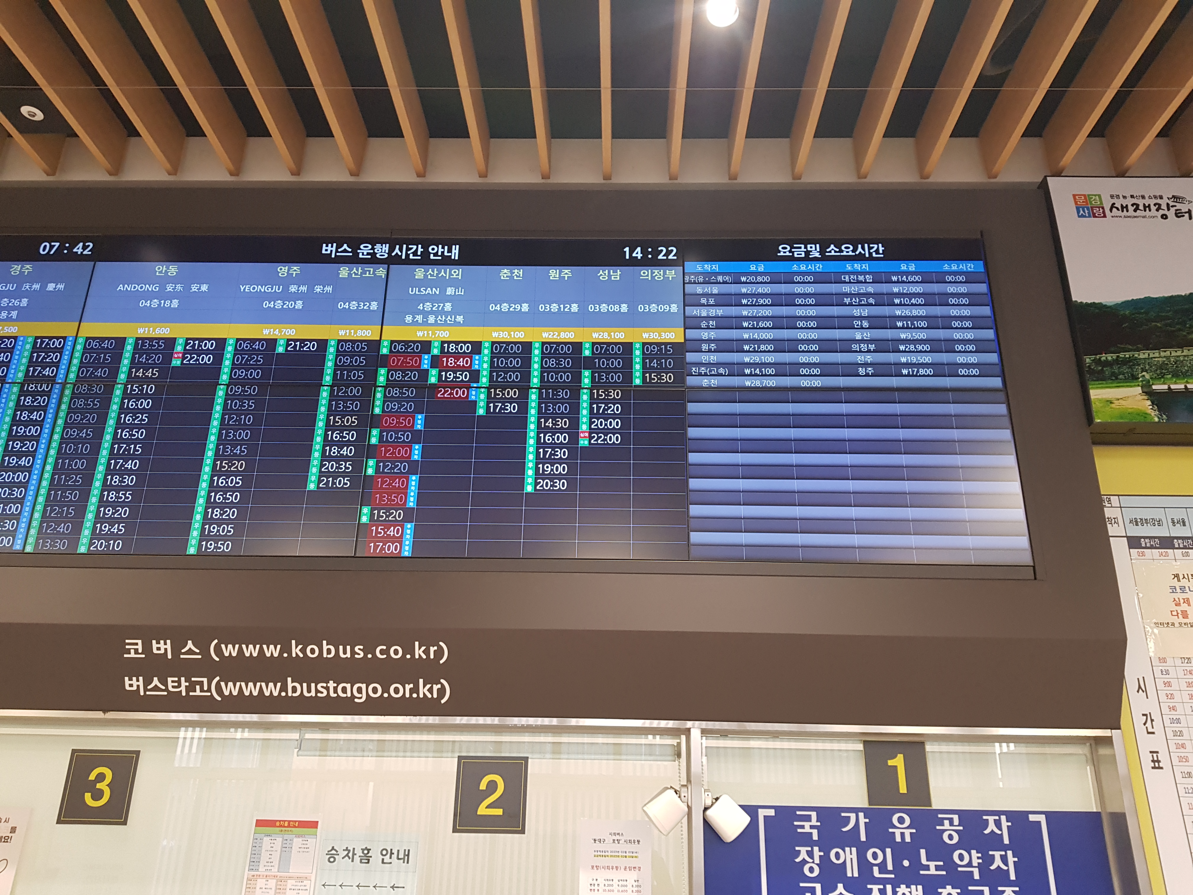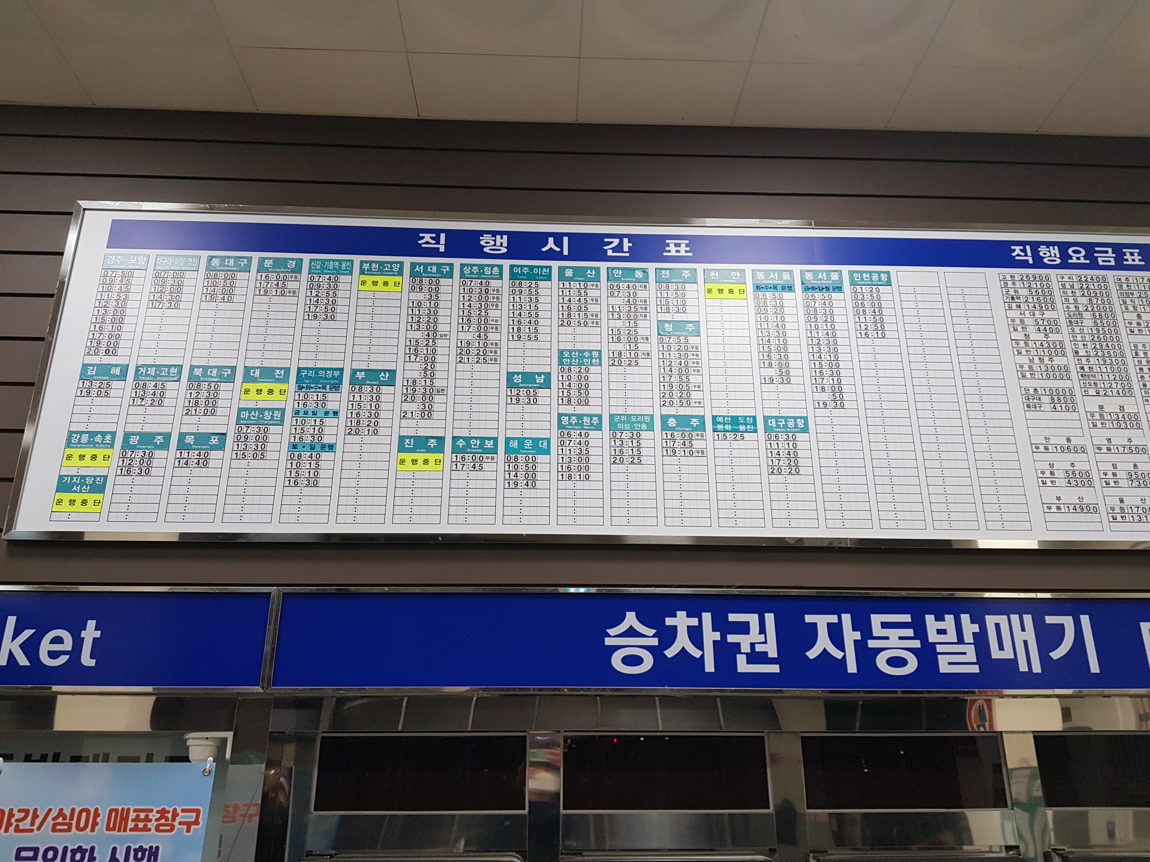 중부내륙 방면은 시외버스를 이용하는 사람들이 별로 없네, 서부 경남 방면은 많은데.