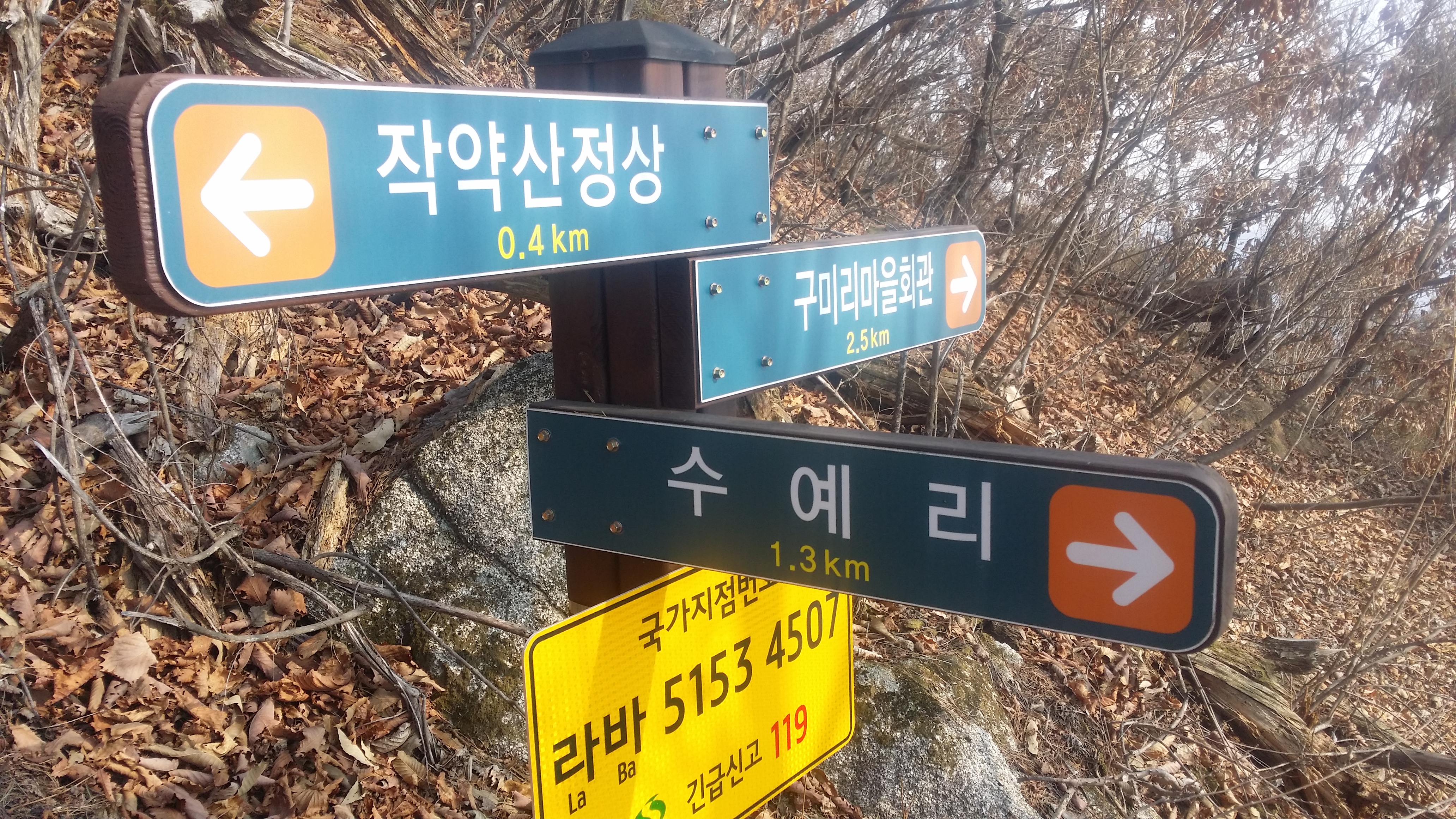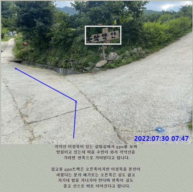 마을길로 진행하면 영감님이 세운 작약산 등산로 안내판이 있는 갑습니다