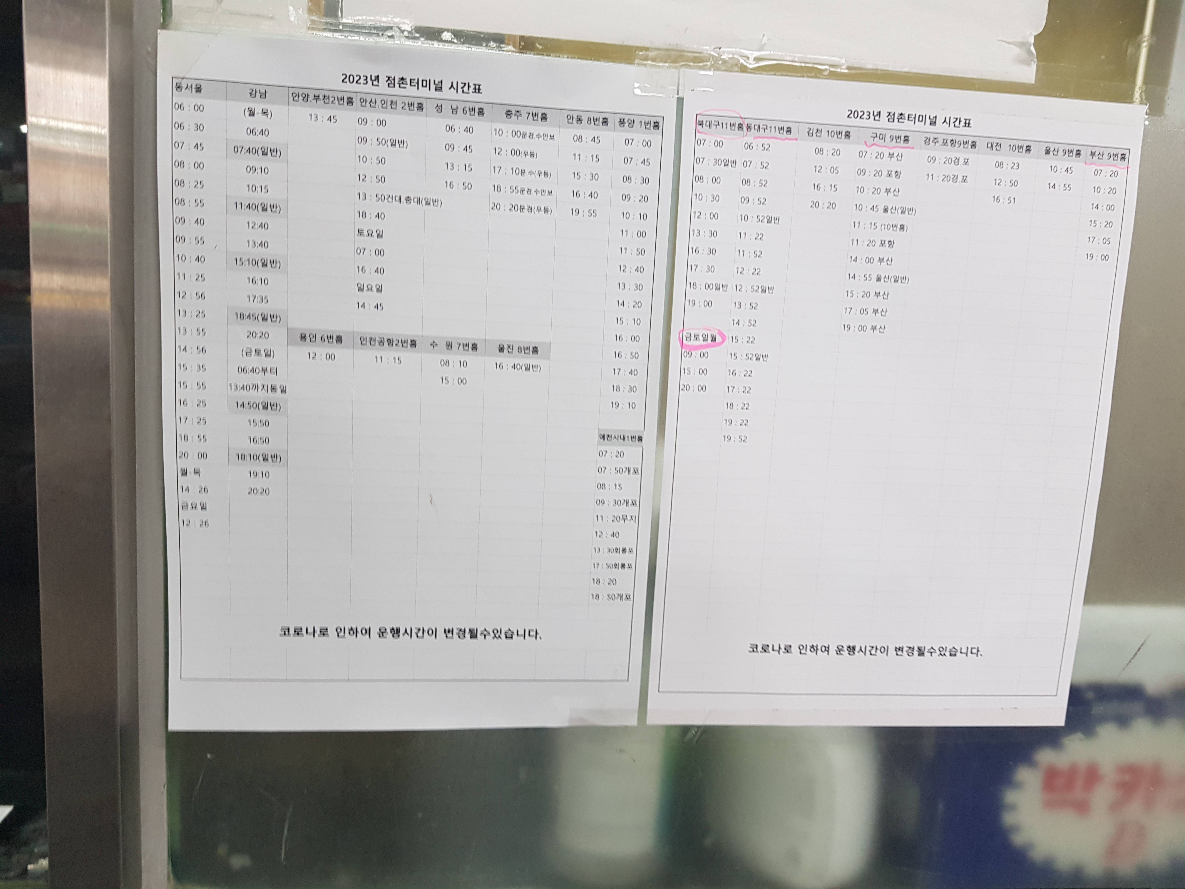 버스 승강자엔 내가 파악한 자료보다 상세하게 시간표가 비치되어 있다.