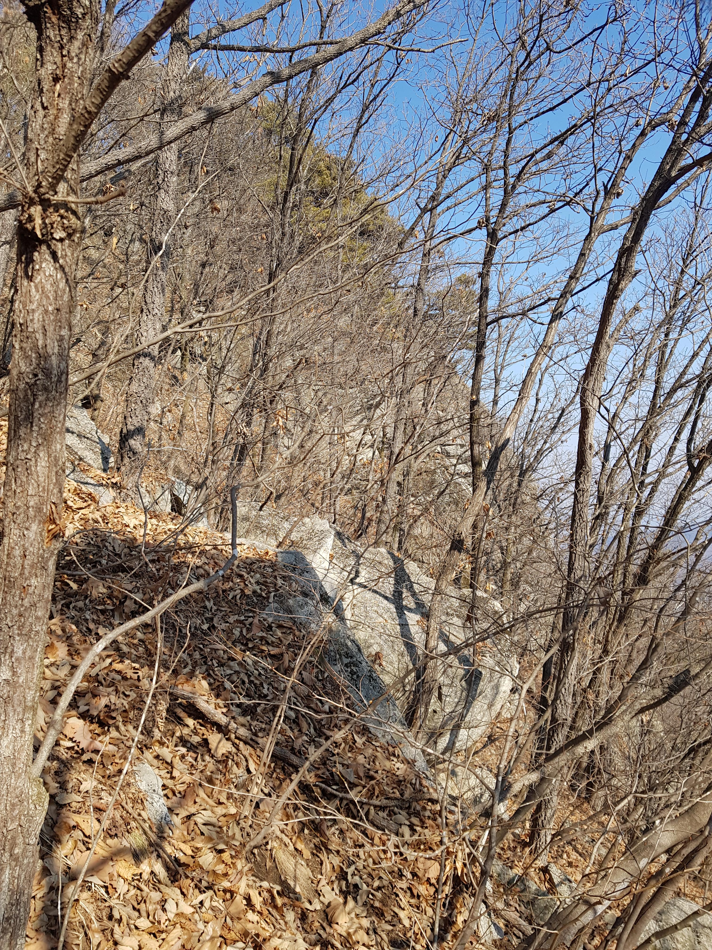16:21 406봉 / 수정봉 지나면 아름다운 내리막 길인줄 알았는데 연속되는 찐빵에 괴롭습니다. 하루 산행도 힘든데 3월에 한남금북정맥 1박2일 엄두가 안납니다
