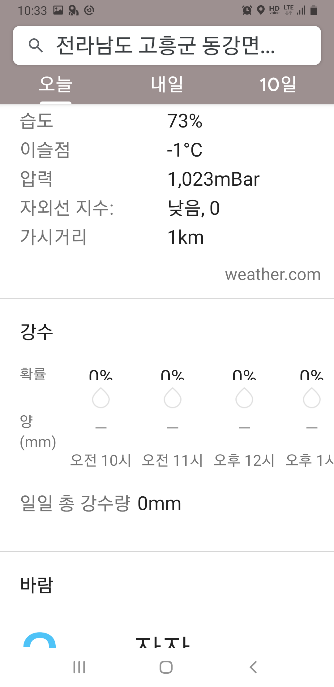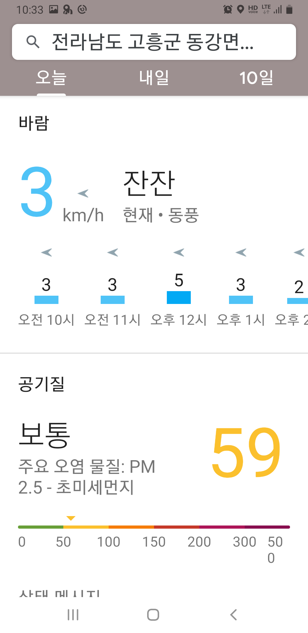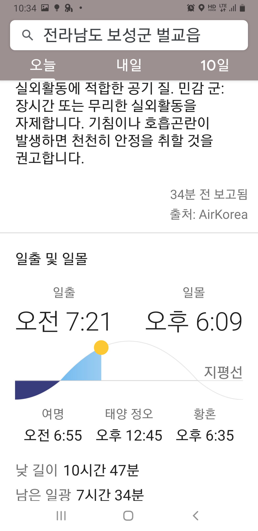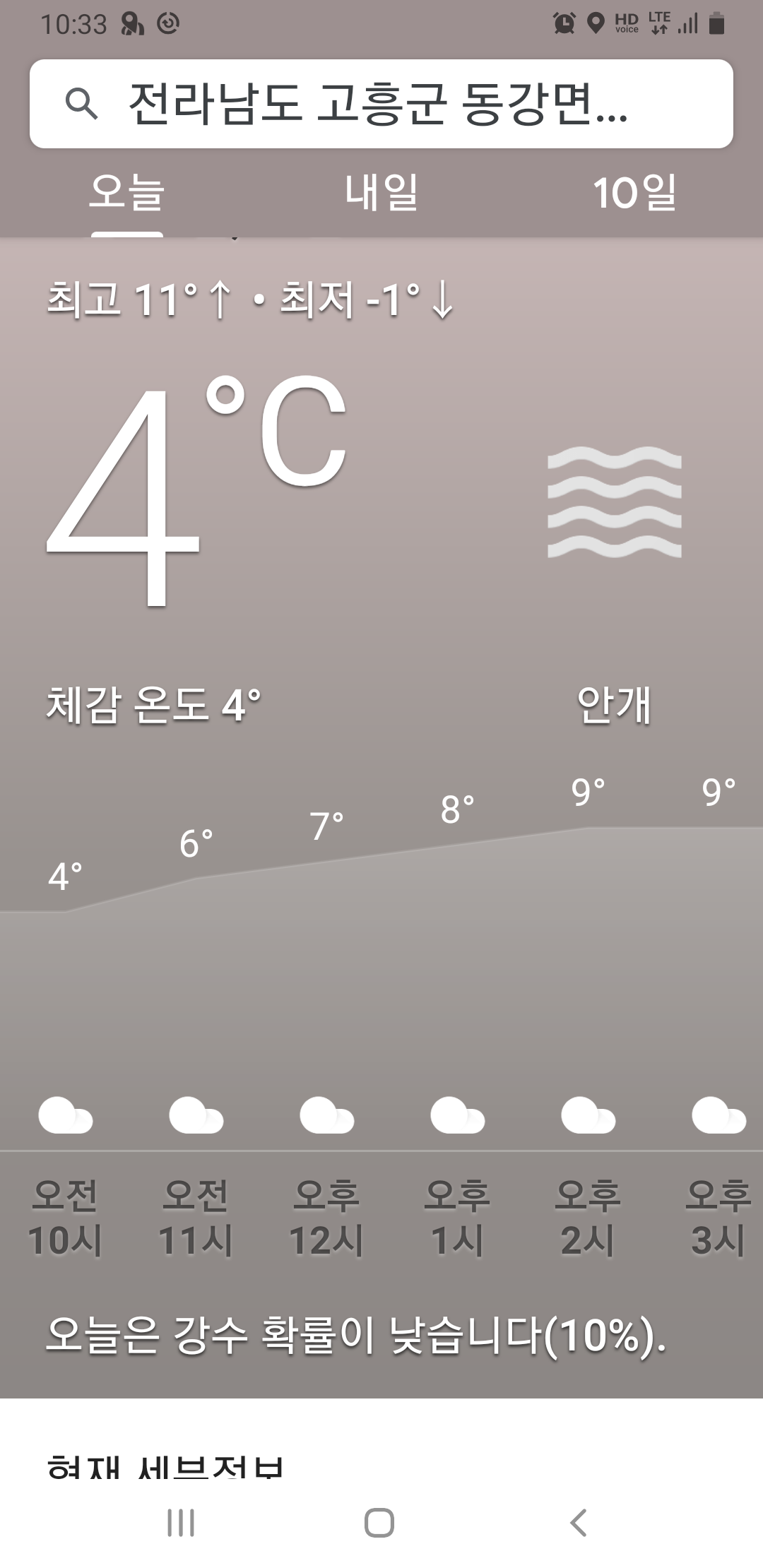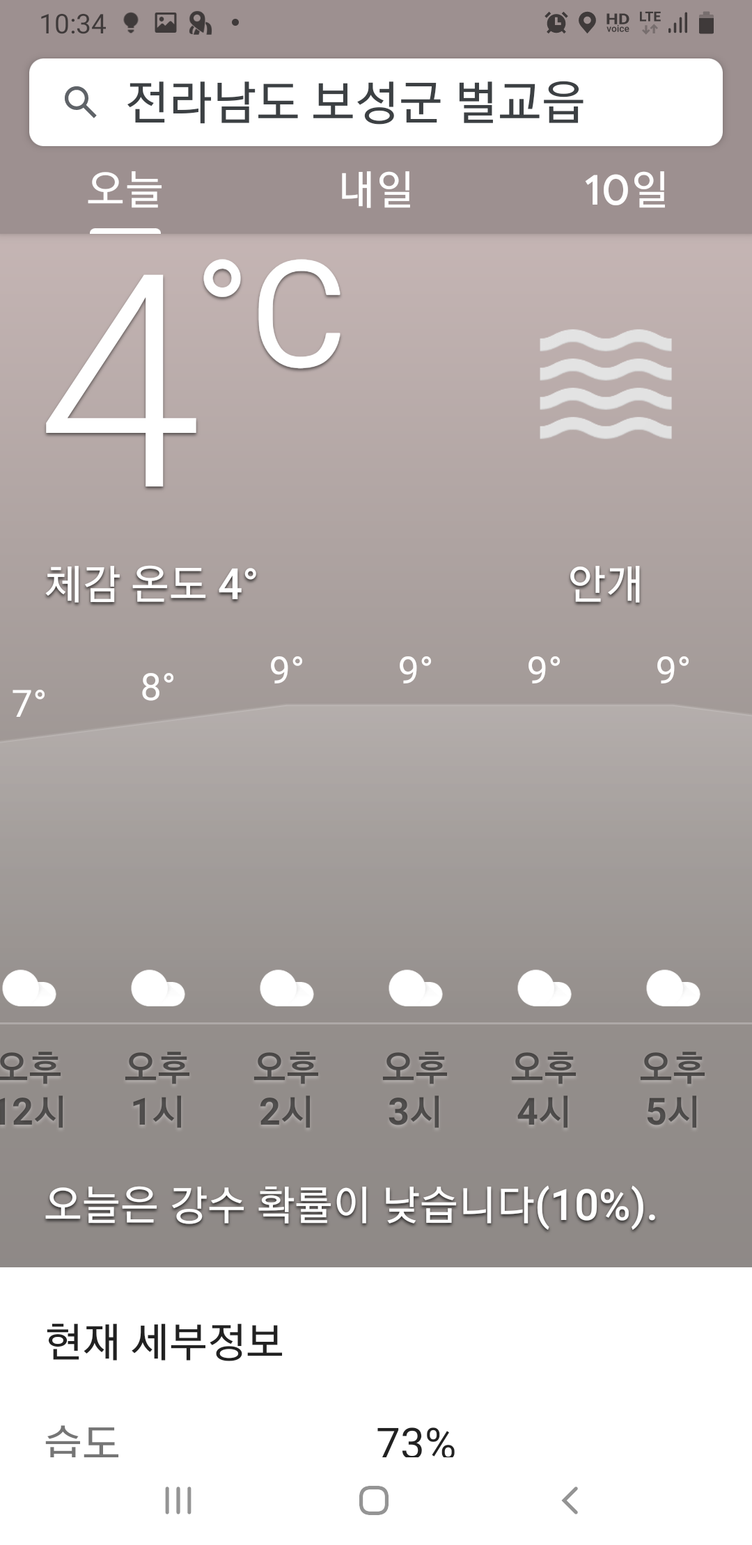 - 기상 : 4˚ ~ 9˚, 습도 73%, 바람 3~5(잔잔), 공기질 59(보통), 일몰 18시09분