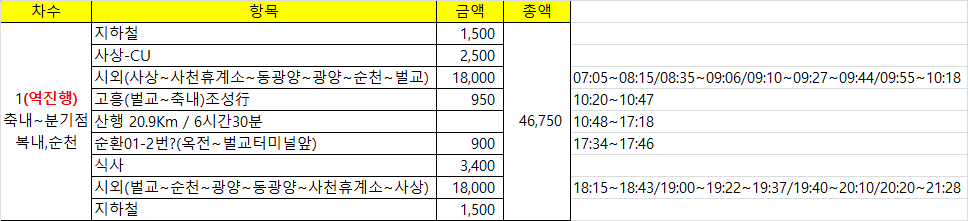 이번 구간은 순방향 진행보다 역방향 진행이 집으로 오는데 낫아 역방향 진행을 목표로 벌교로 향하는데, 문제는 시외버스 도착 시간이 애매하여 순방향에 대한 정보도 준비한다