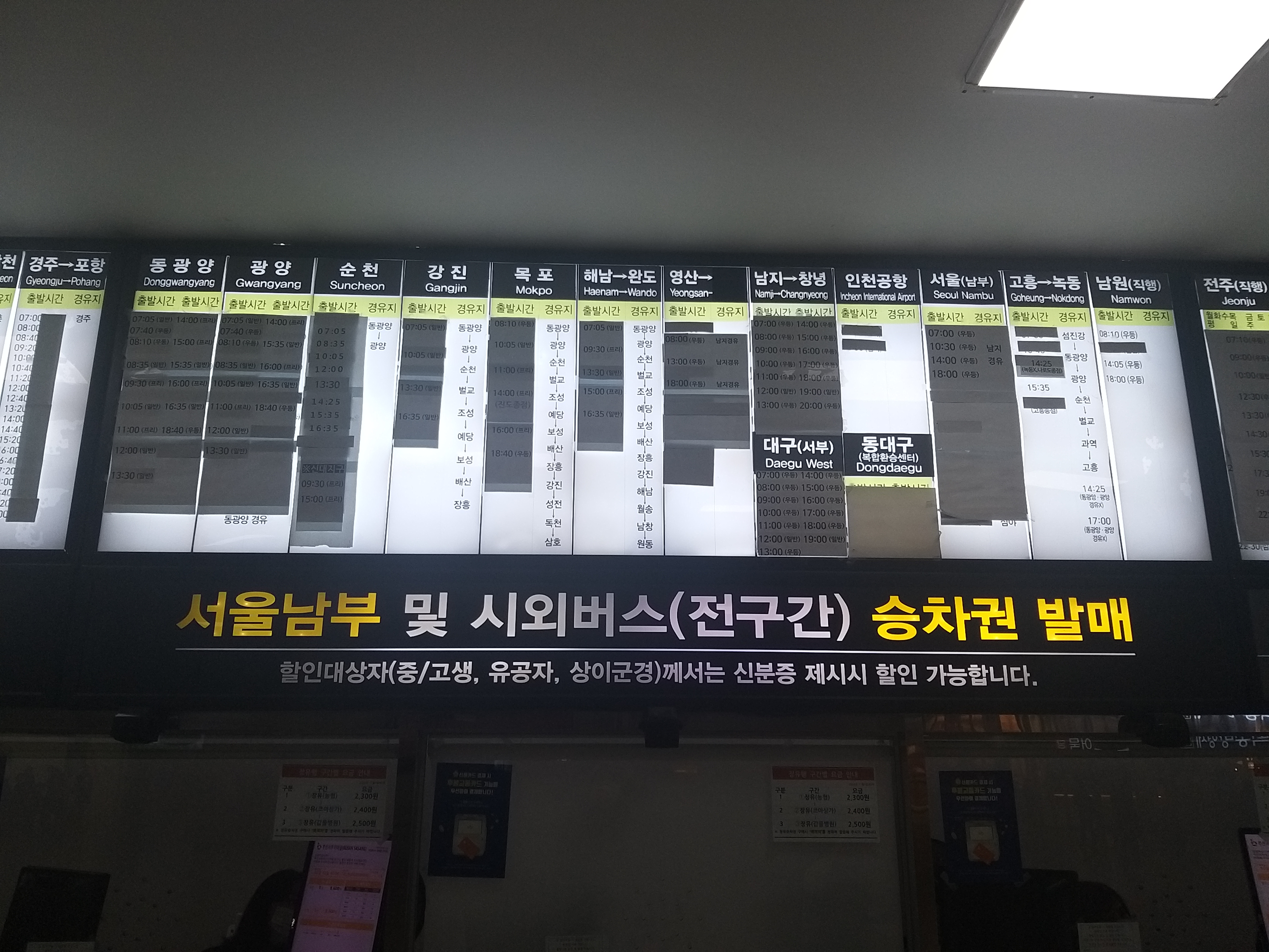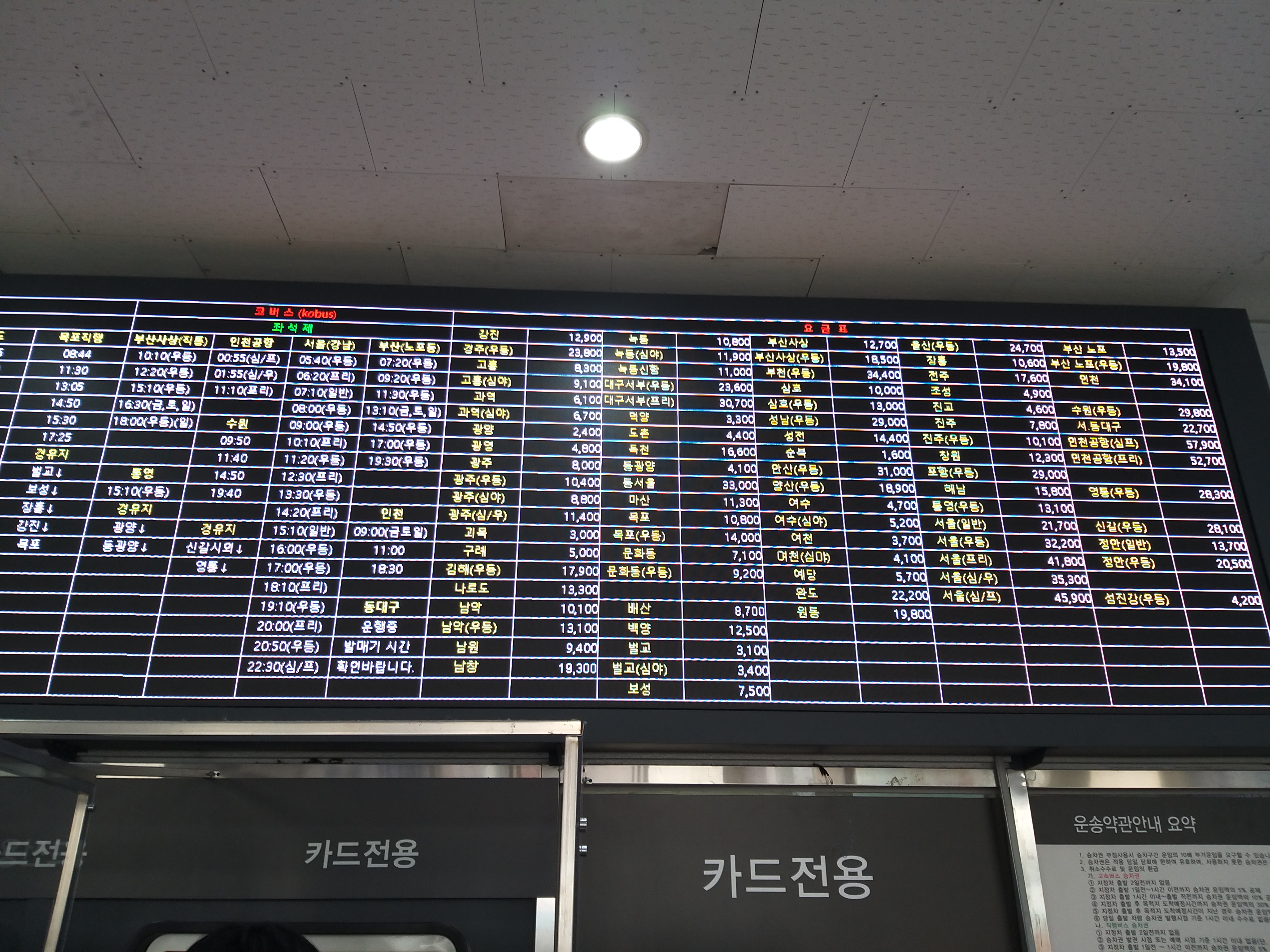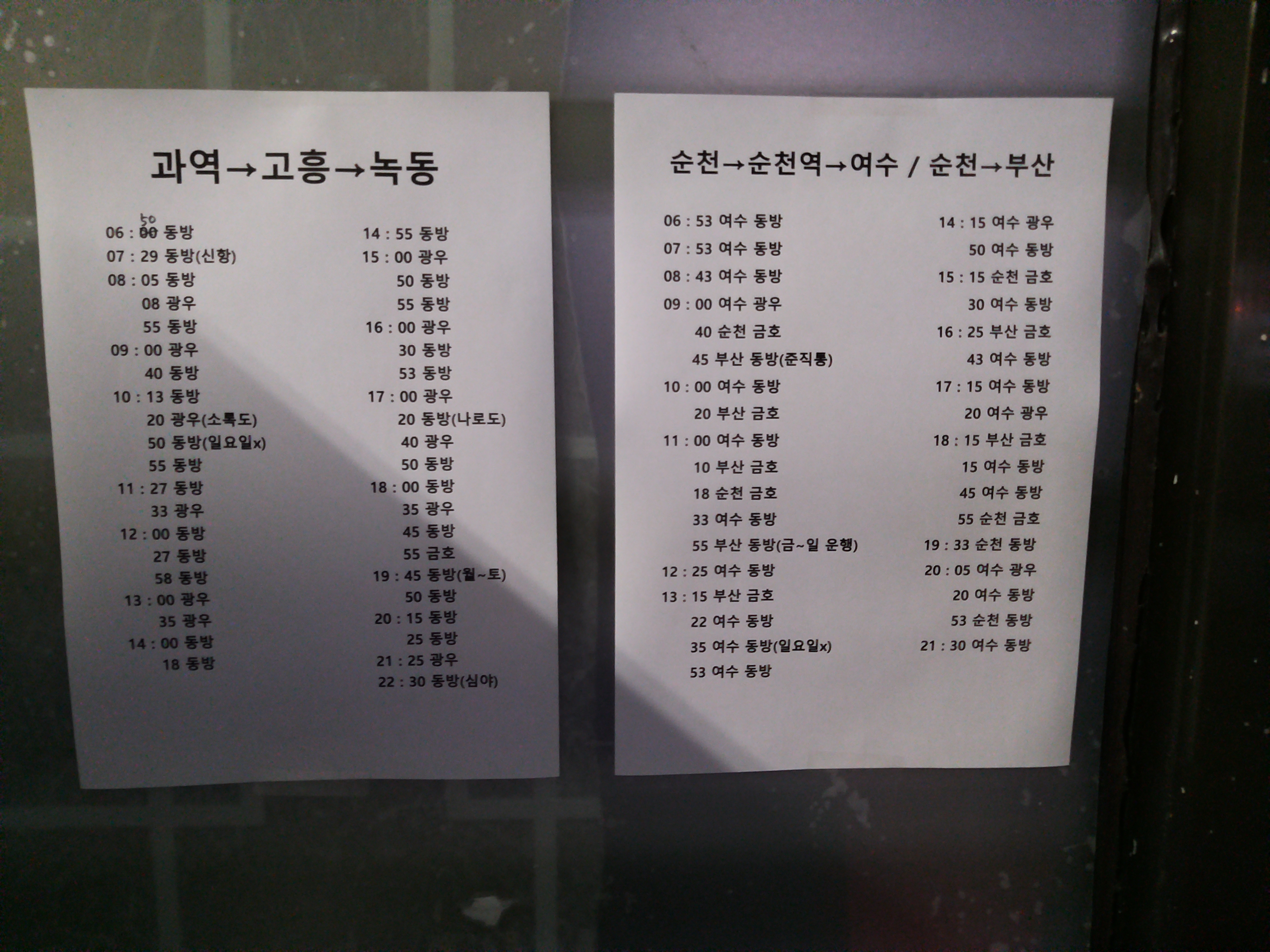 버스는 순천에 9시44분 도착하여 9시55분 출발한다. 참고로 2구간 들머리를 안전빵으로 진행 할려면 순천까지 끊고, 여기서 9시50분 고흥가는 버스를 타면 될것 같다. 혹 놓치면 이놈 다시 타면 되니까 ㅎ 이게 뭐지 2구간 적용해보니 요금이 다르다. [사상~벌교 18000원 // 사상~순천 12700원, 순천~벌교 3100원] 뭐야 장거리 고객 우대가 아닌 호구로 아네