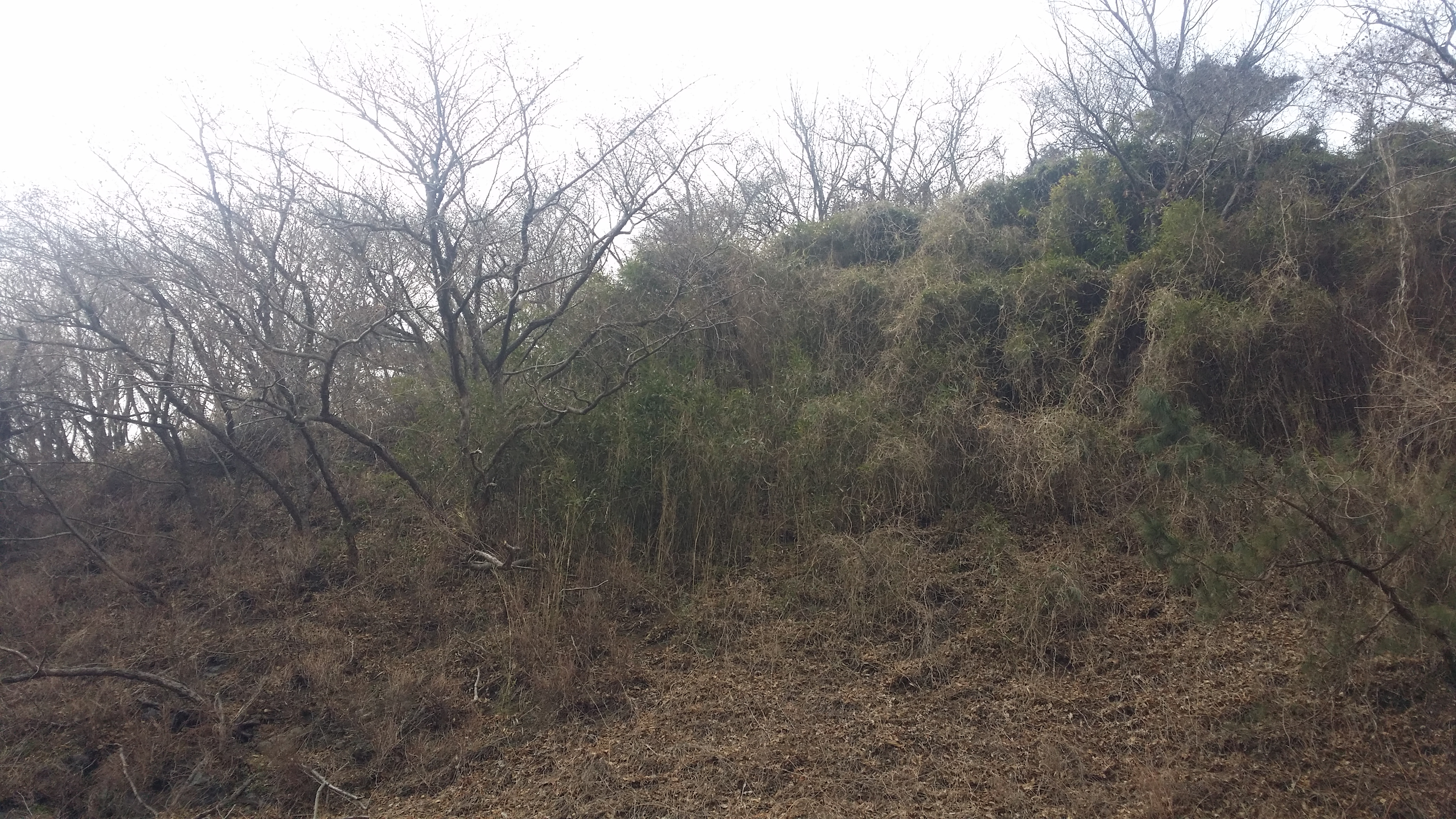 휴계소옆 대숲으로 오르는데, 장난이 아니다. 급경사에 모래길이라 연약한 대나무를 잡고 올라서야 한다. 이 등로에 대한 산행기를 접하진 않았는데, 누군가 지나 다닌 흔적이 있다.정방향 진행시엔 들머리만 잘 잡으면 수월할듯 하다