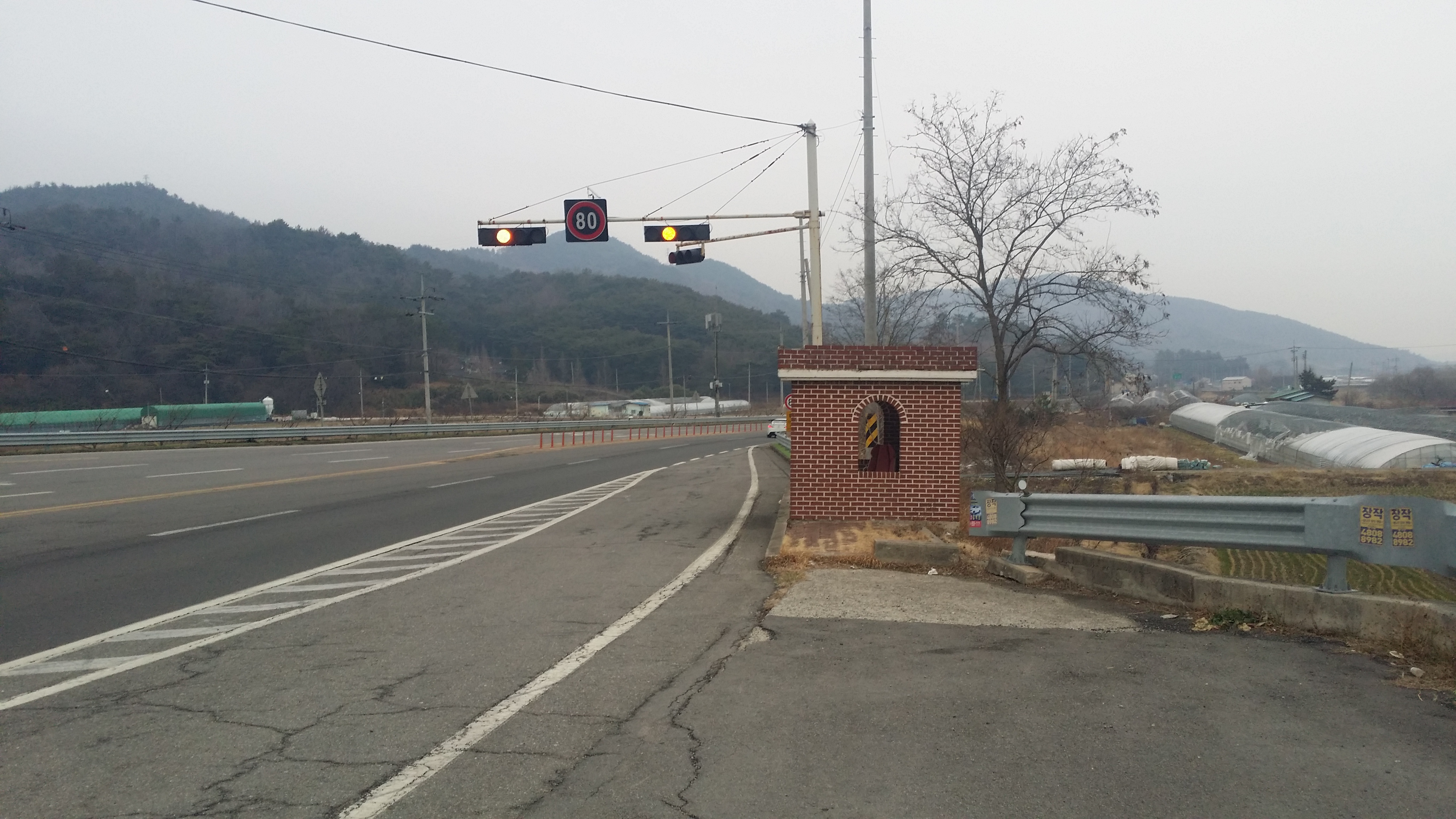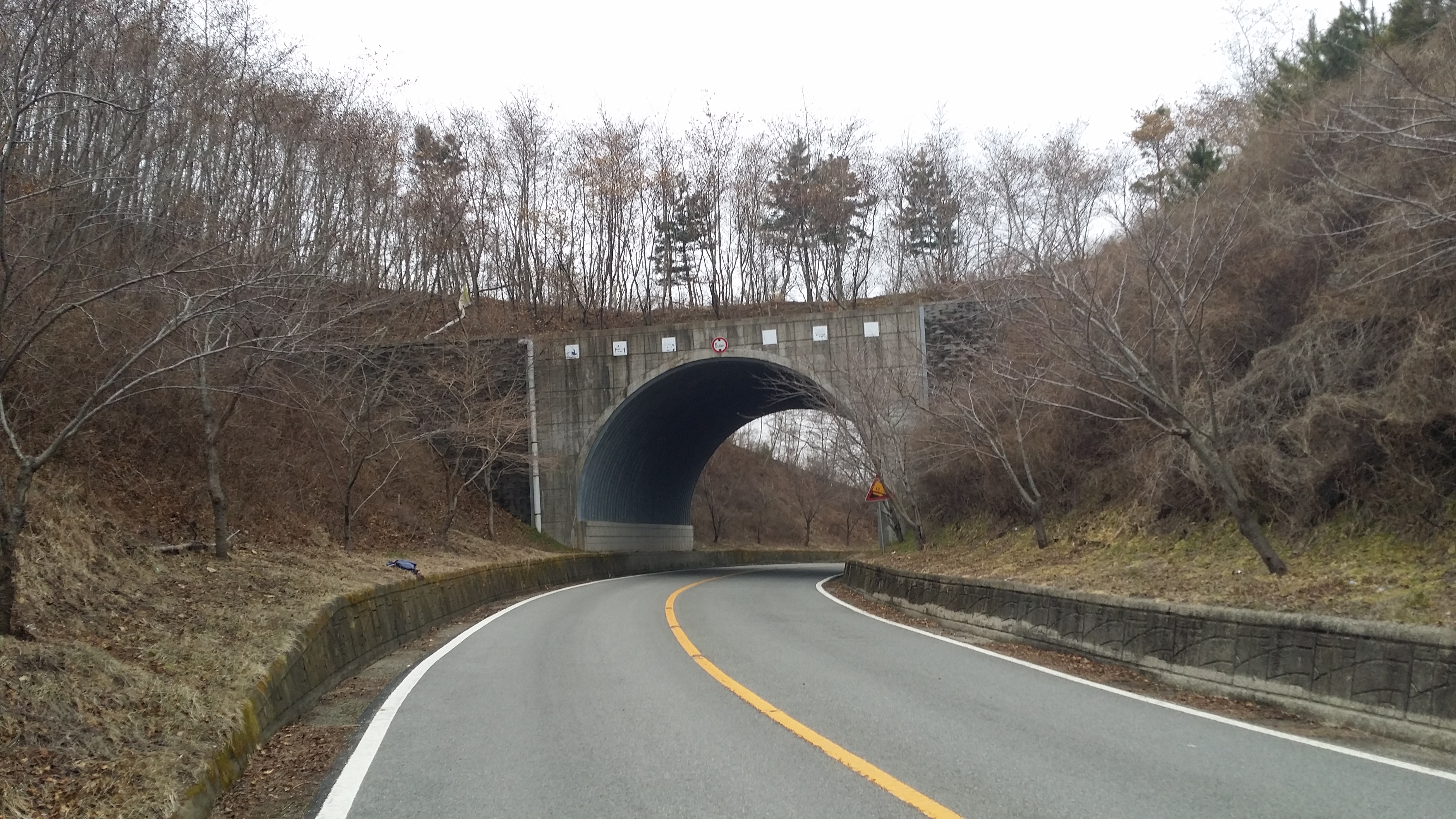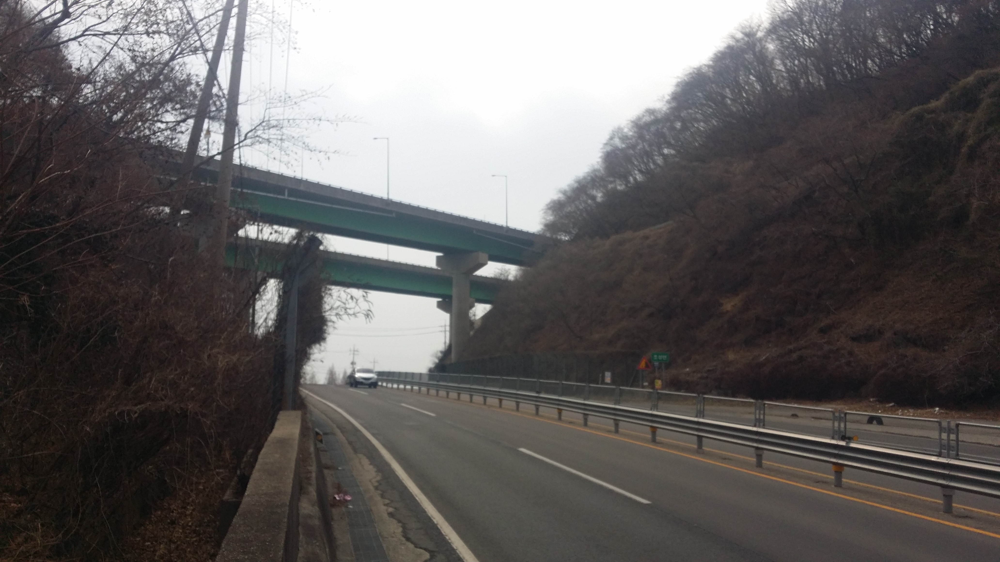 13:54 여하치 / 통행 차량이 많지 않다. 2번국도를 무단횡단하여 보성신월2교 부근으로 이동했는데 경사가 급해 휴계소 부근으로 되돌아 온다