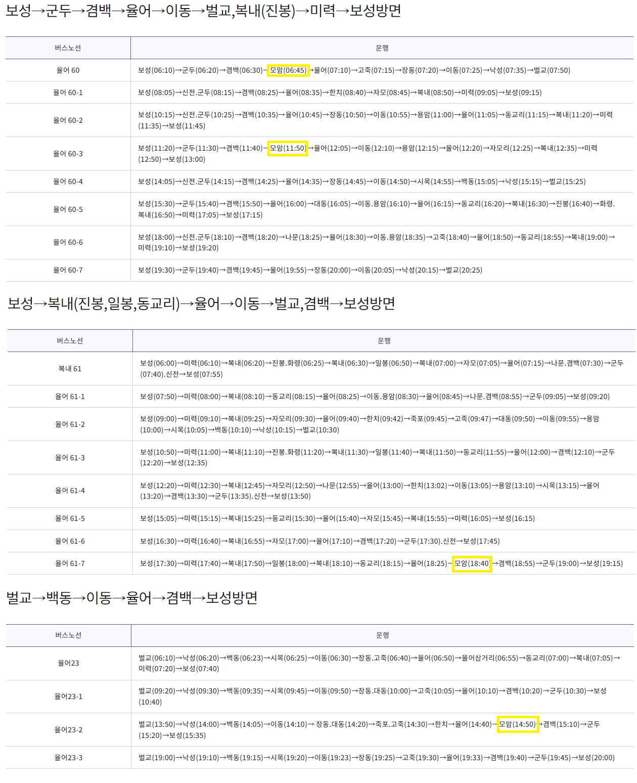 참고로 모암재 부근 가는 버스가 보성에서 3번 벌교에서 1번 있는데 안맞다