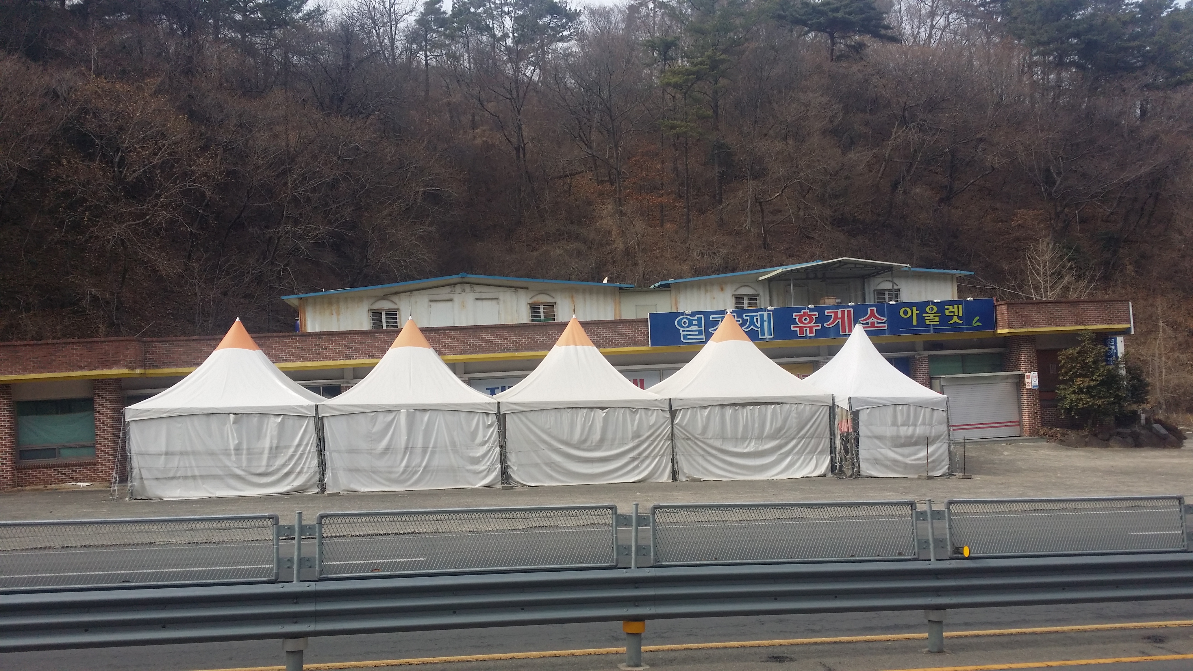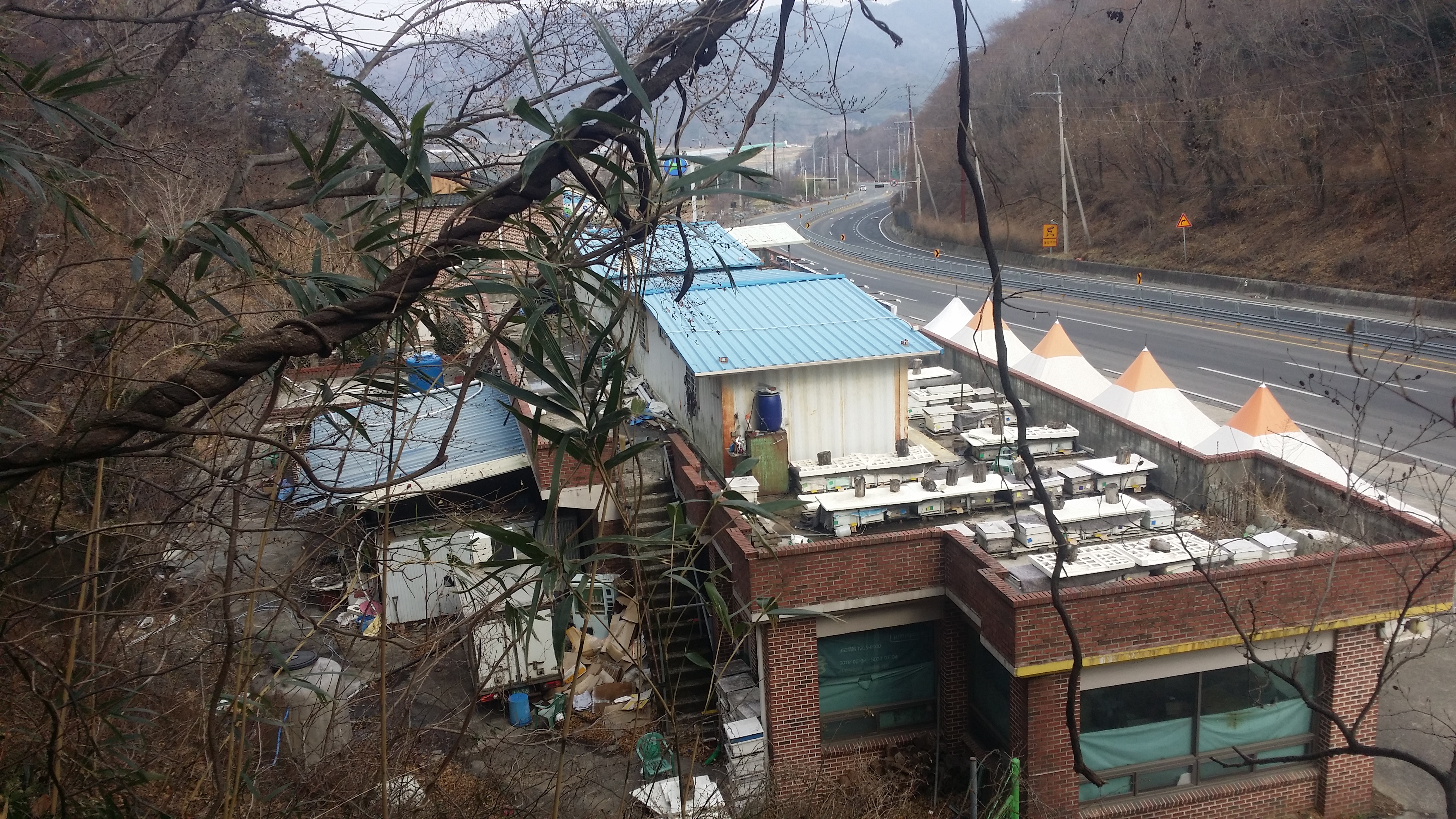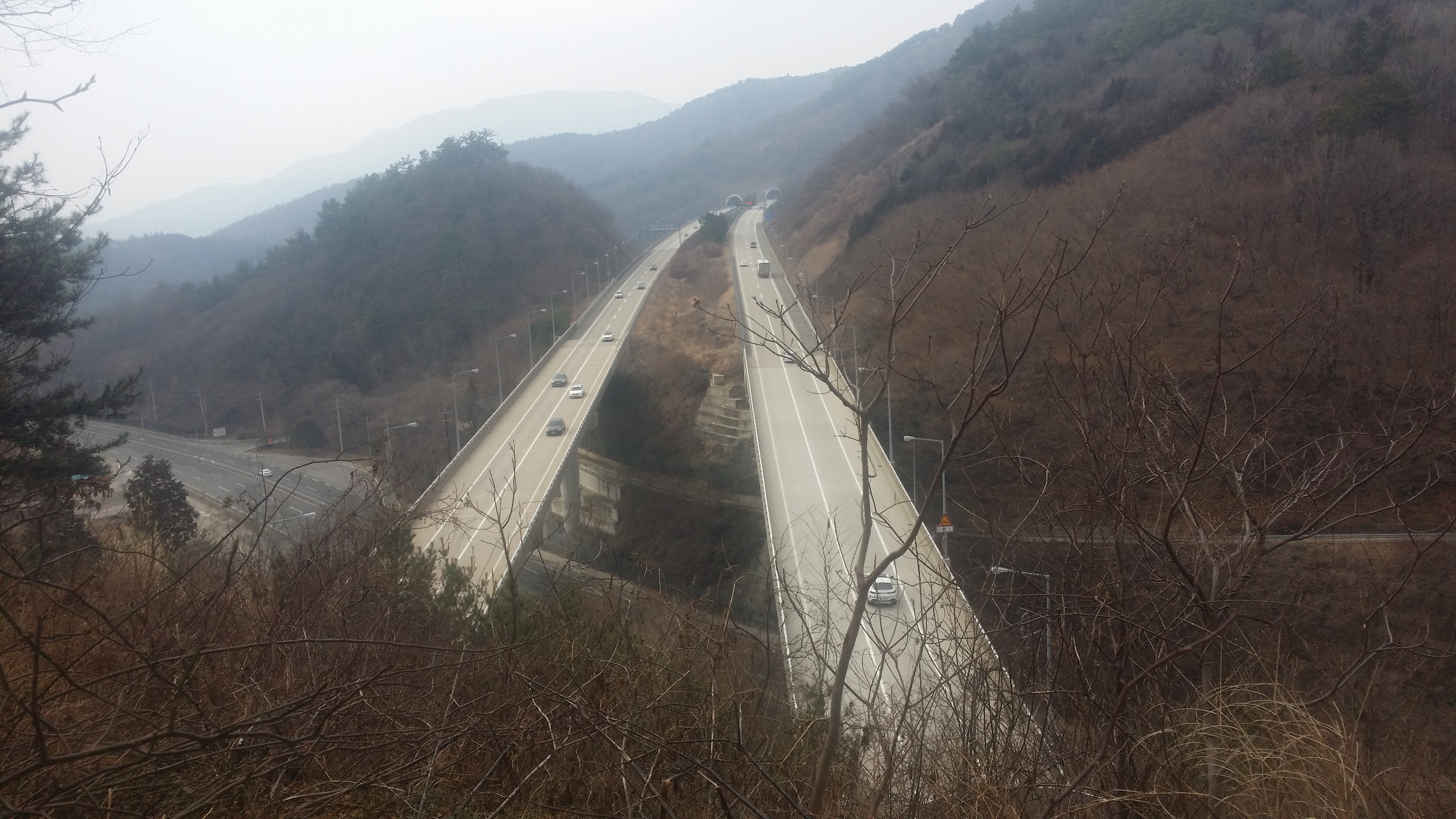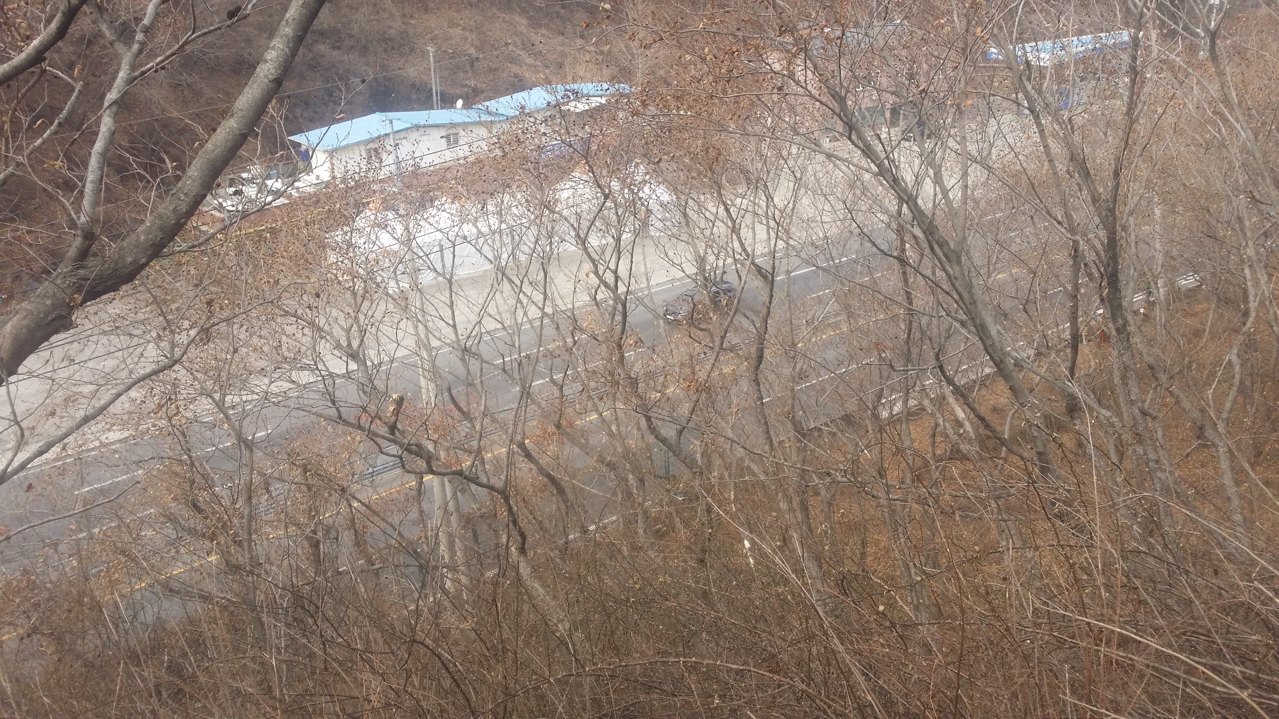 휴계소 뒷편 골짜기로 오르면 편할것 같은데, 휴계소가 막고 있어