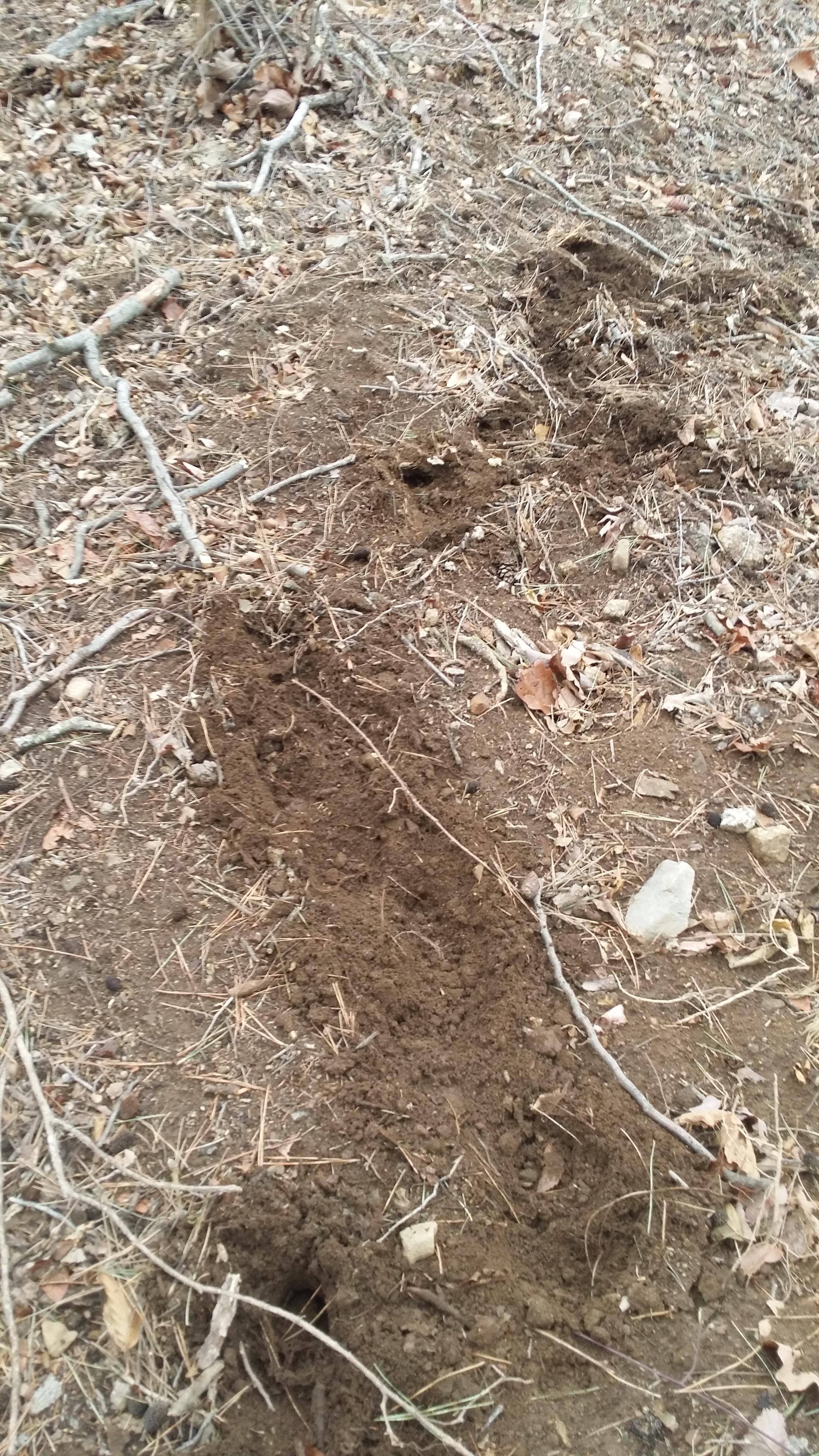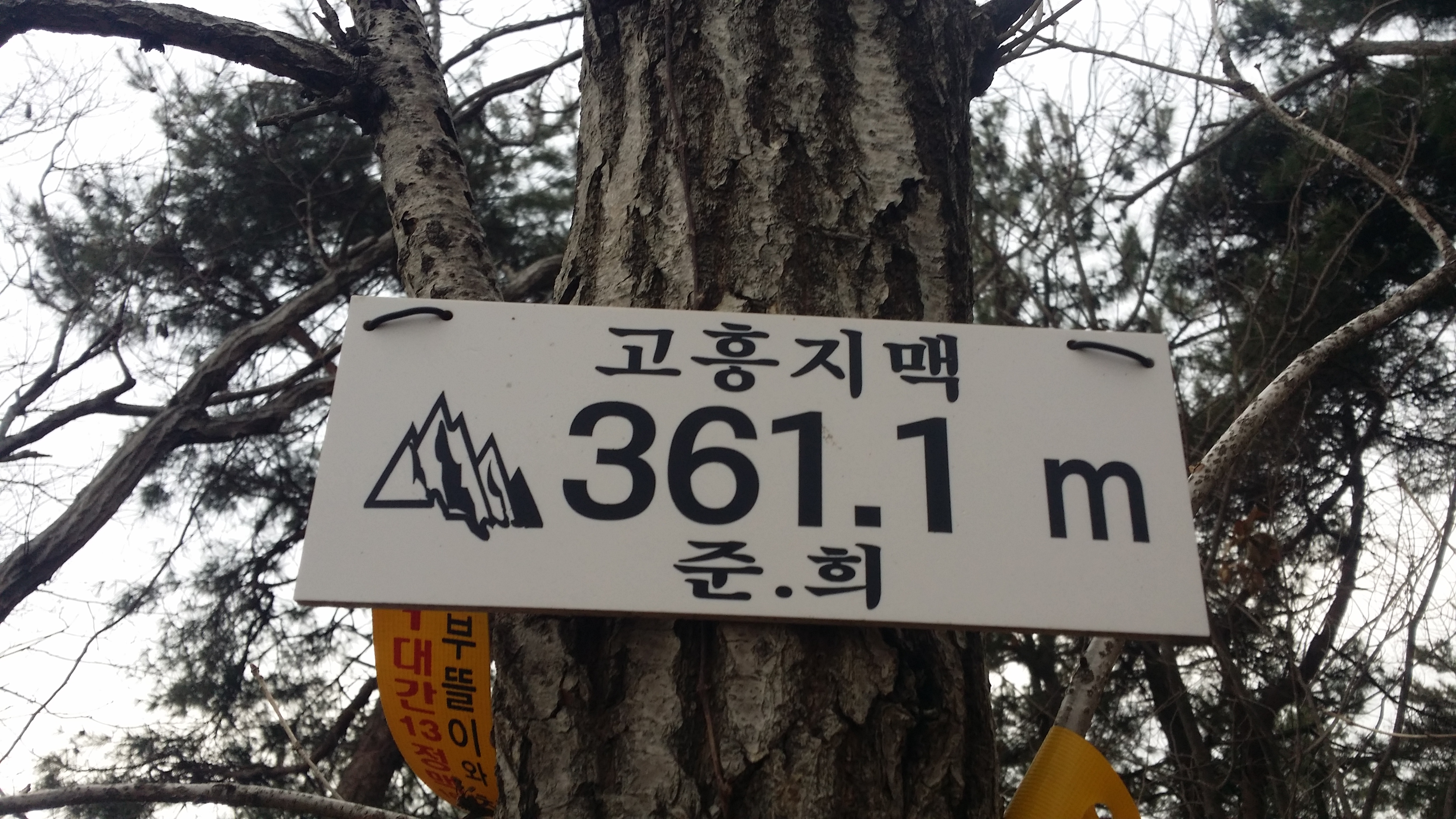 15:17 361.6봉에서 고흥지맥 분기점 사이가 도야지 소굴인것 같다. 이번 구간은 정방향이던 역방향이던 고도 상승폭이 동일한데, 순방향은 도로를 따라 분기점으로 이동하는 관계로 역방향에 비해 수월한것 같다. 아 분기점으로 향하는 등로가 가파르다. 너무 힘들어 전방 경계 실패. 고개를 쳐박고 올라서는데 둔탁한 소리가 들린다. 고맙게도 도야지 세마리가 알아서 도망간다. 그리곤 분했는지 위협적인 소리가 지속적으로 들려 뒤통수가 따갑네. 이후 분기점까지 가는 도중에 전날 내린 비로 선명하게 찍힌 큰놈의 발자국이 2군데 보인다.