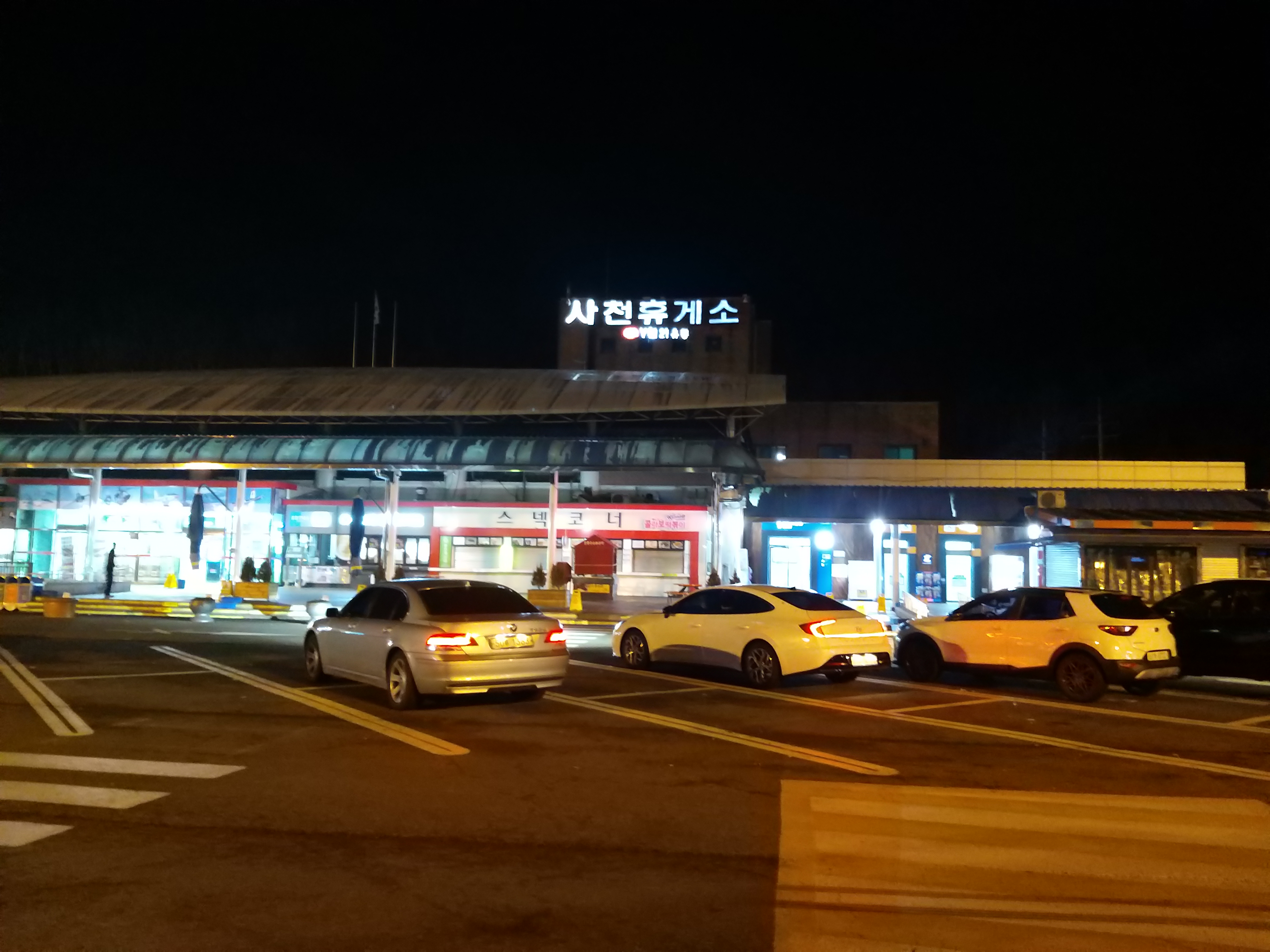 허걱 그냥 부산으로 가도 되는데, 쉴 타임이 아닌데 사천 휴계소에 들러 10분 쉬고간다