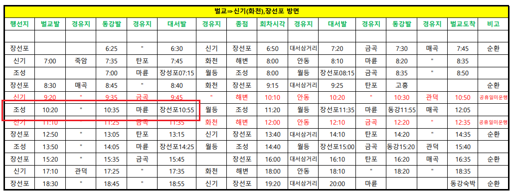 정방향 진행시 10시40분 보성行 버스를 타고 쌍천에서 하차한다.