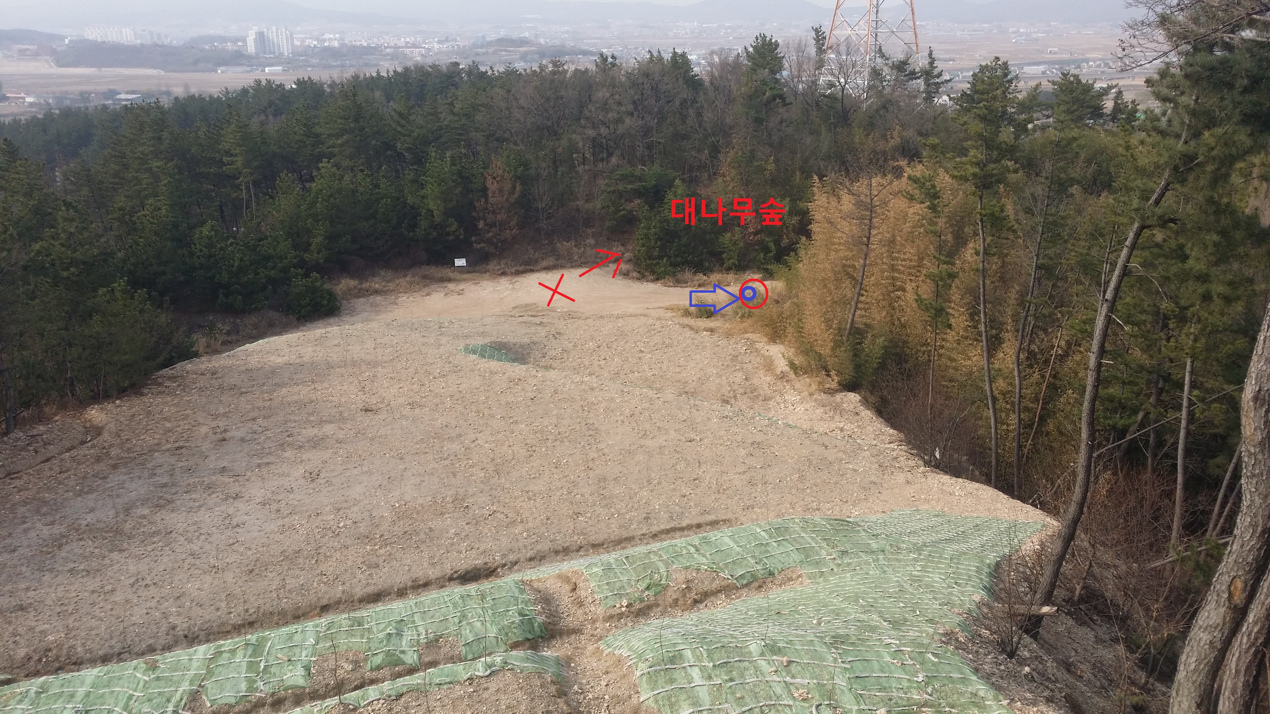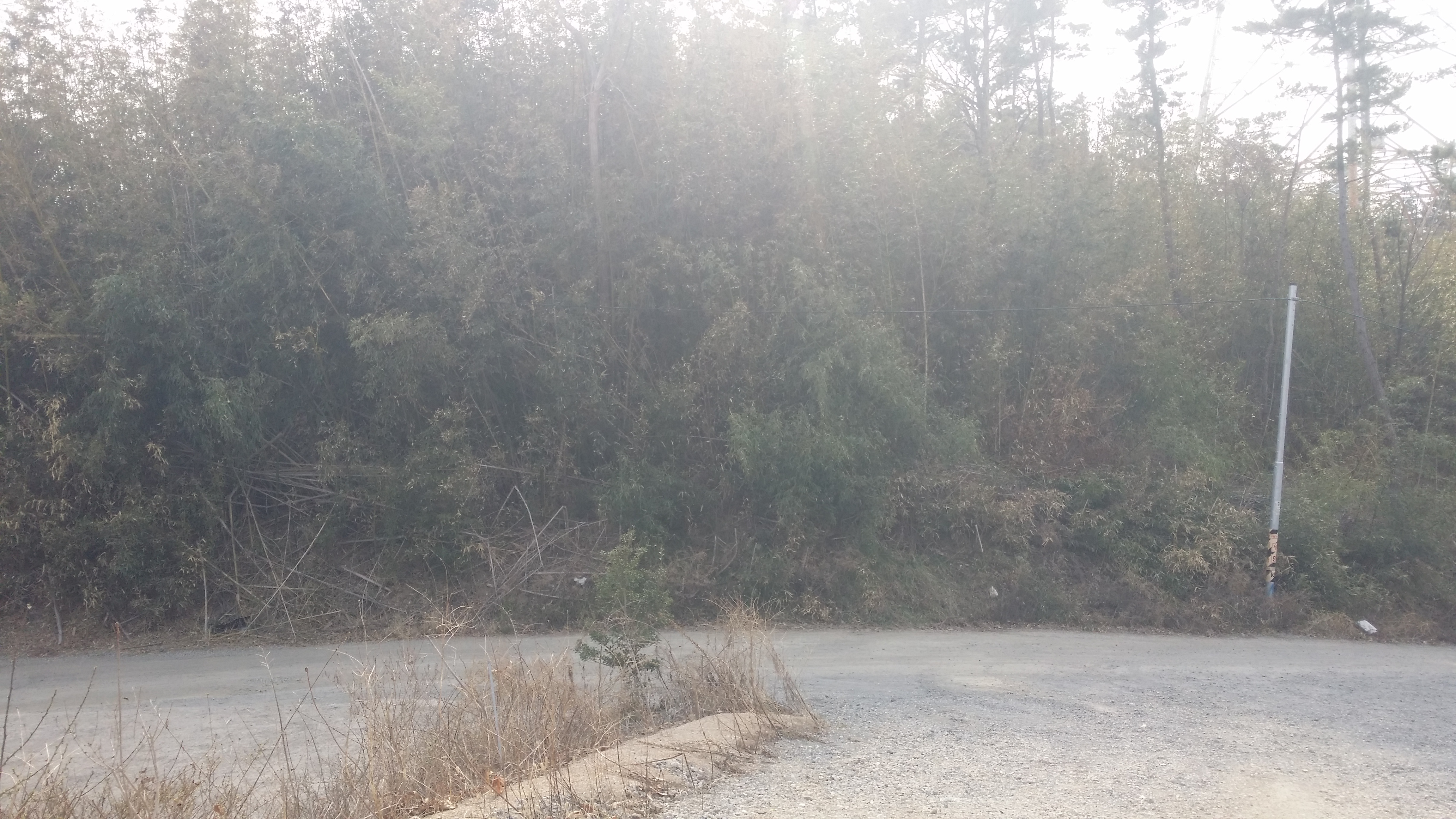 15:45 대나무숲을 빠져나와서 / 절개지를 내려서(윗 사진 참조) 마루금을 고집하지 말고 수레길로 진행하길. 대숲엔 길이 없다. 알아서...