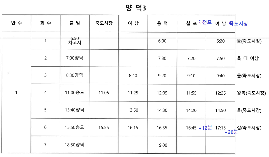 양덕 마을버스가 16시57분경 막차 입니다. 영일만 산단까지 약 3Km 걸어야 합니다