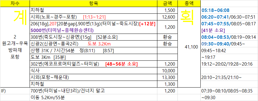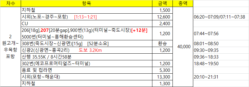 노포동에서 포항行 첫차를 탄다. 바로 뒷차를 타도 되는데, 장거리 산행이라 조금 더 일찍 출발하는게 안심이 되어