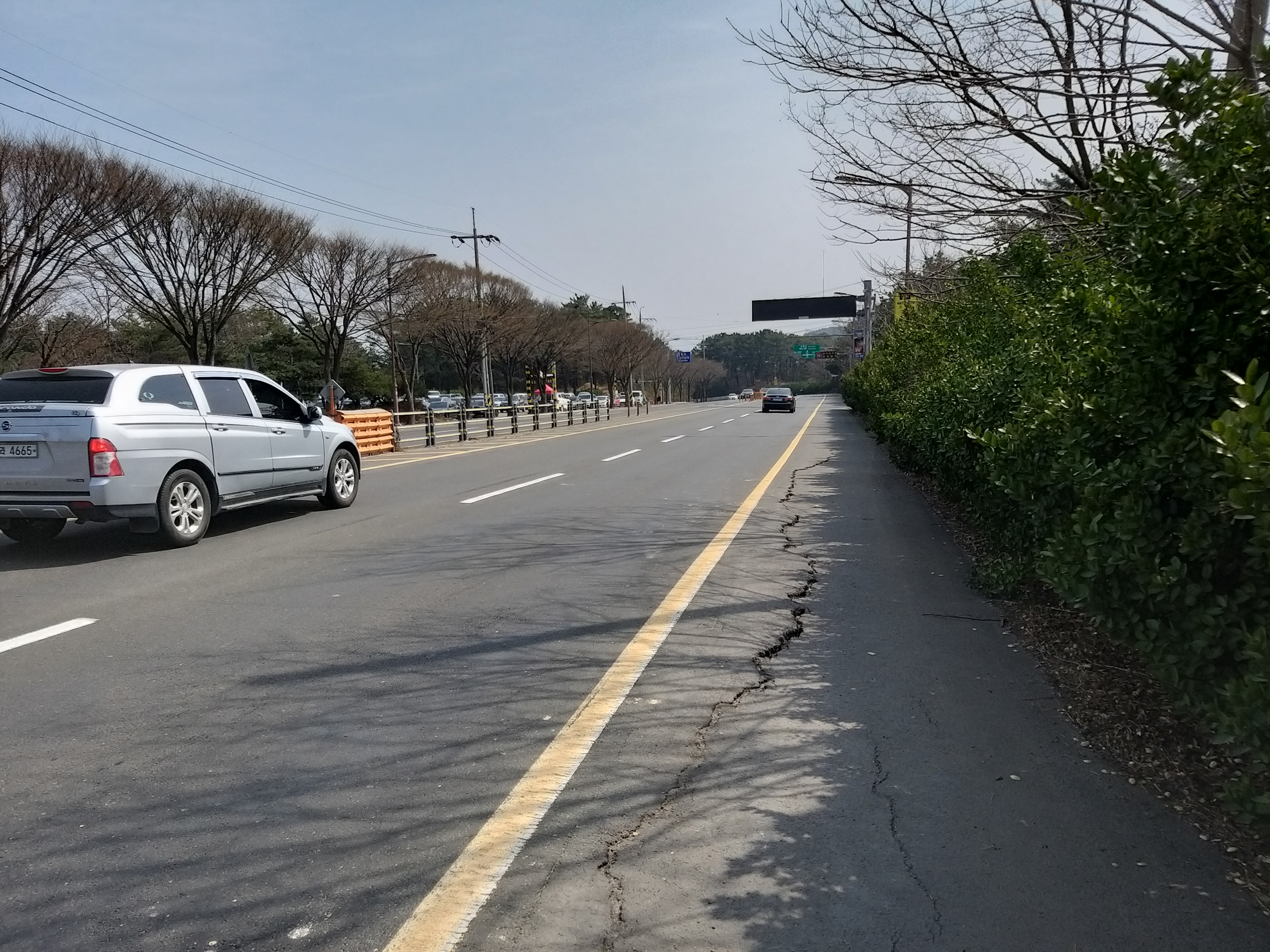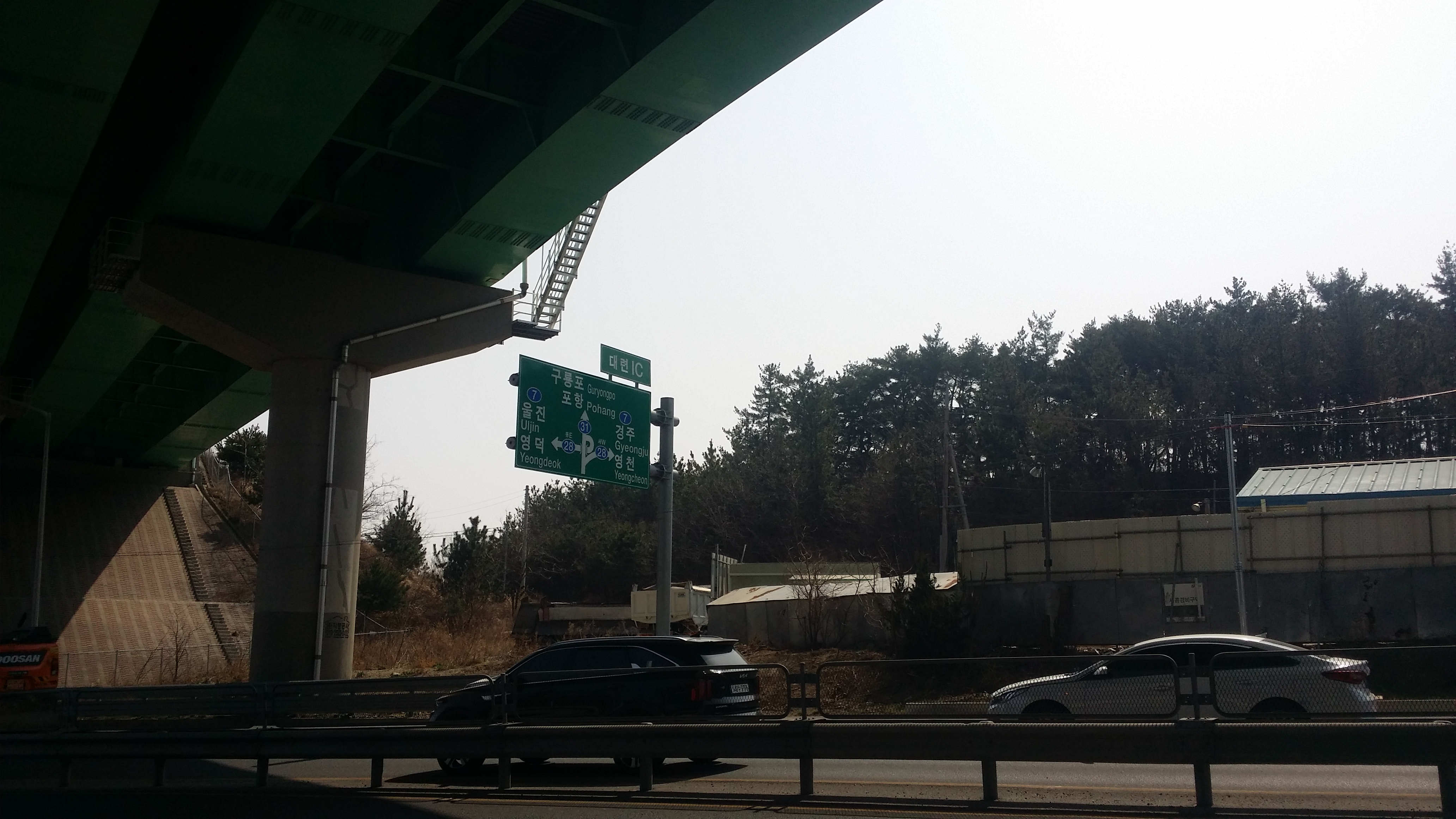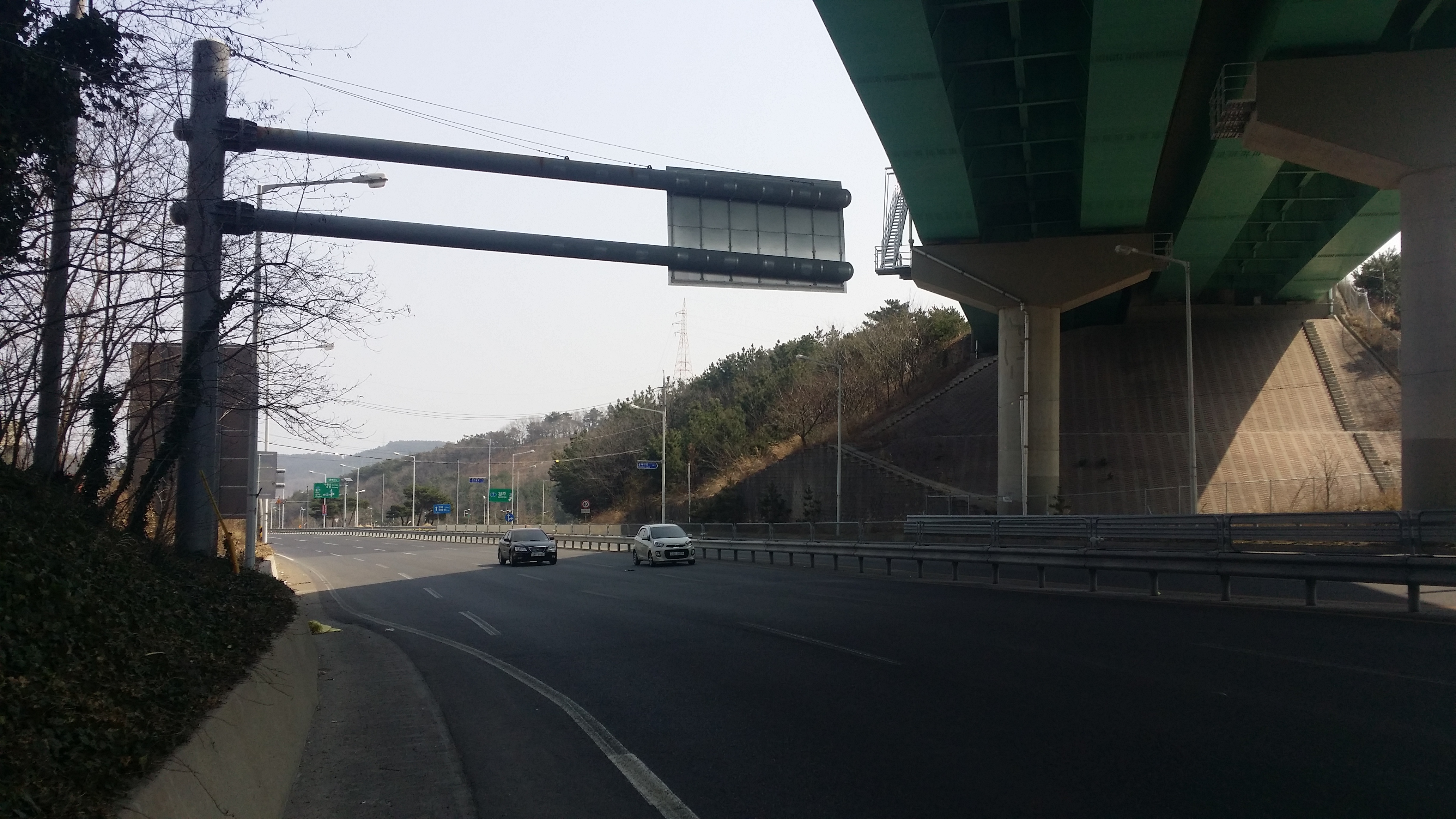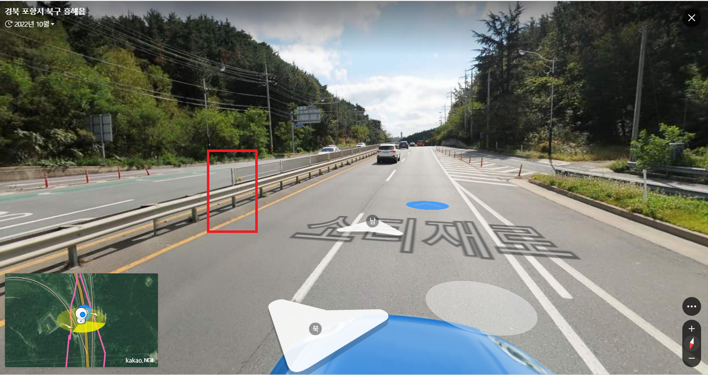 흥해 방면으로 이동하니 중앙분리대 위 철망이 끝나는 지점에 올라서 자세를 낮추니 안전감 있어 좋네
