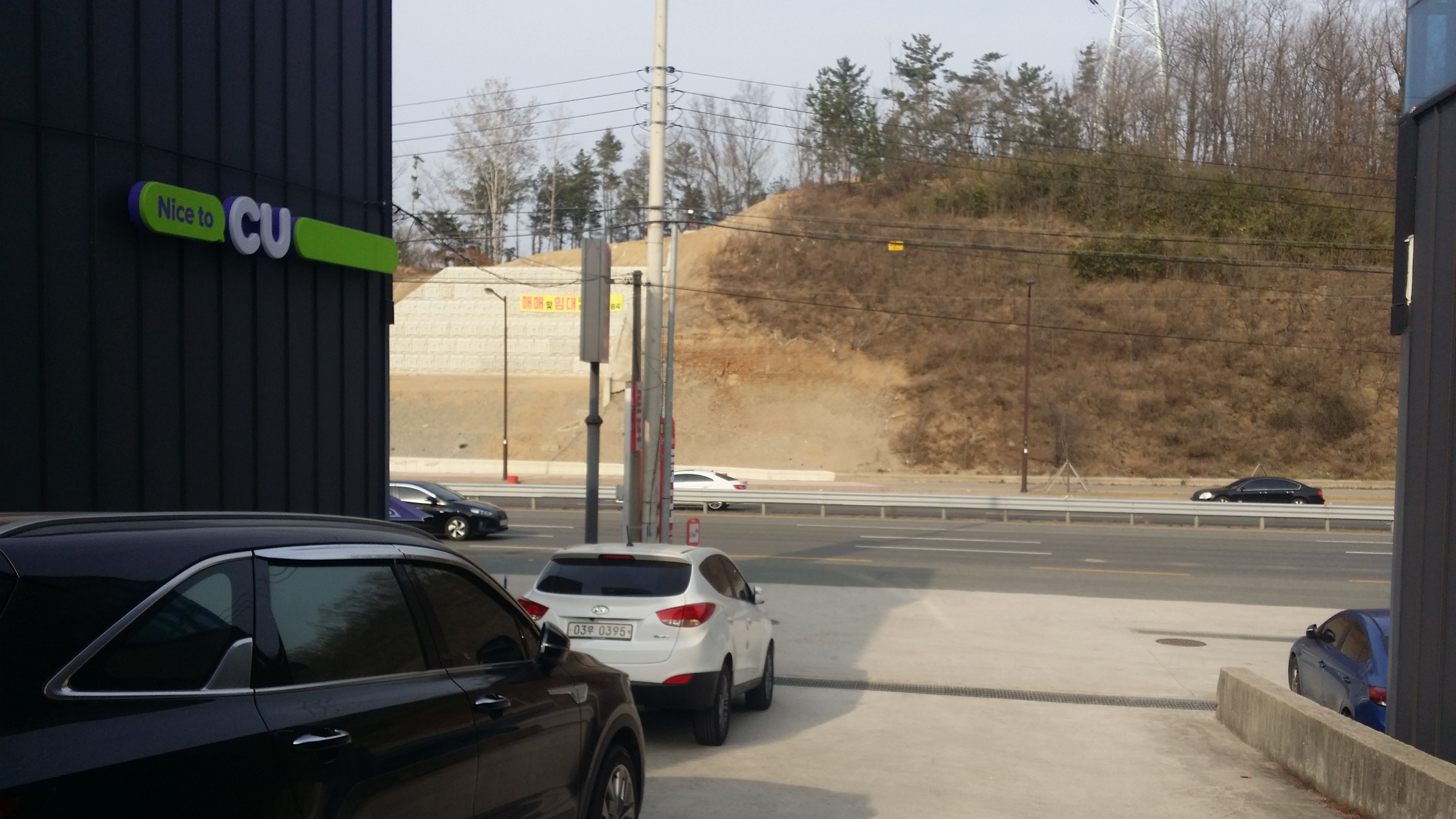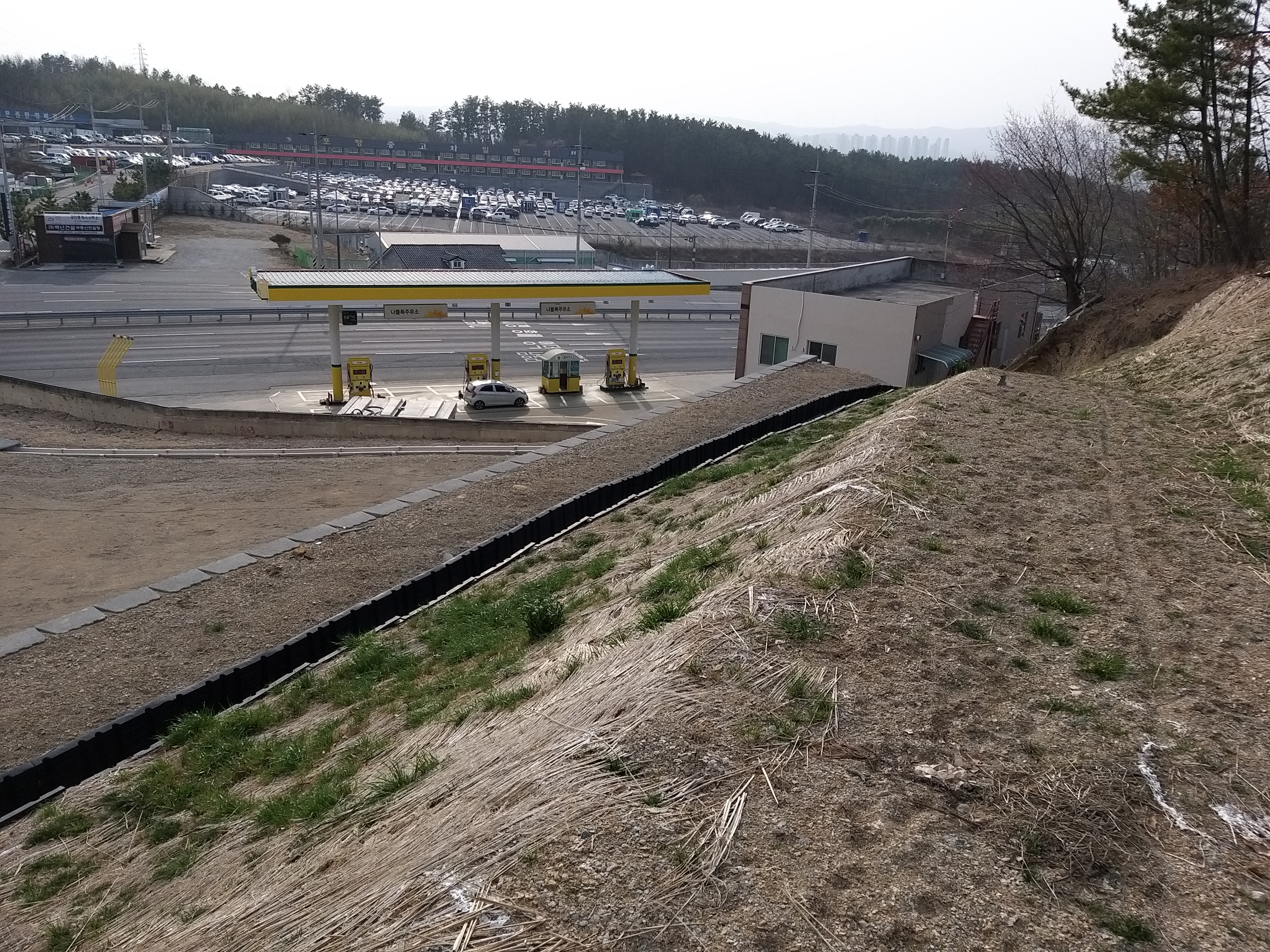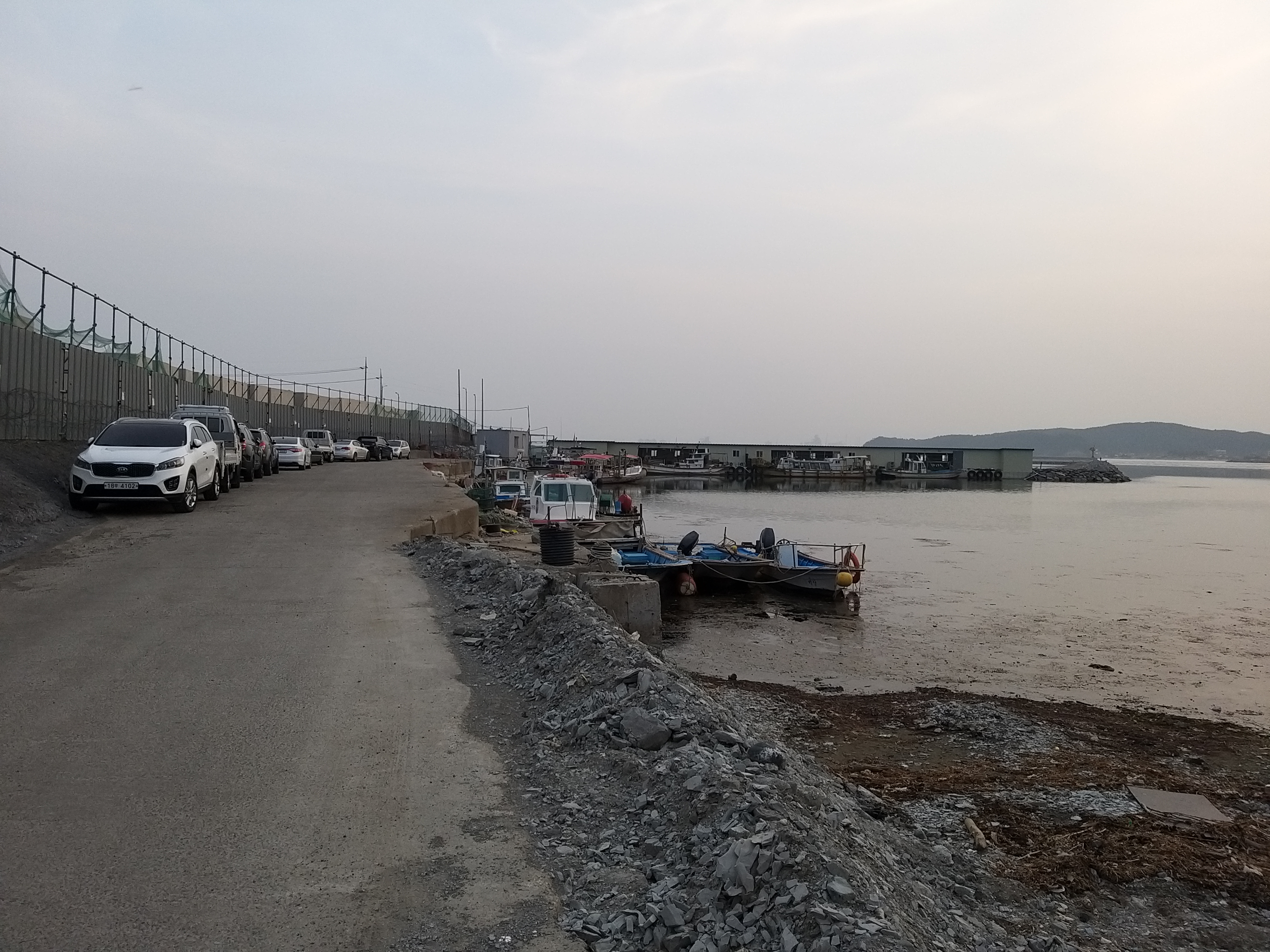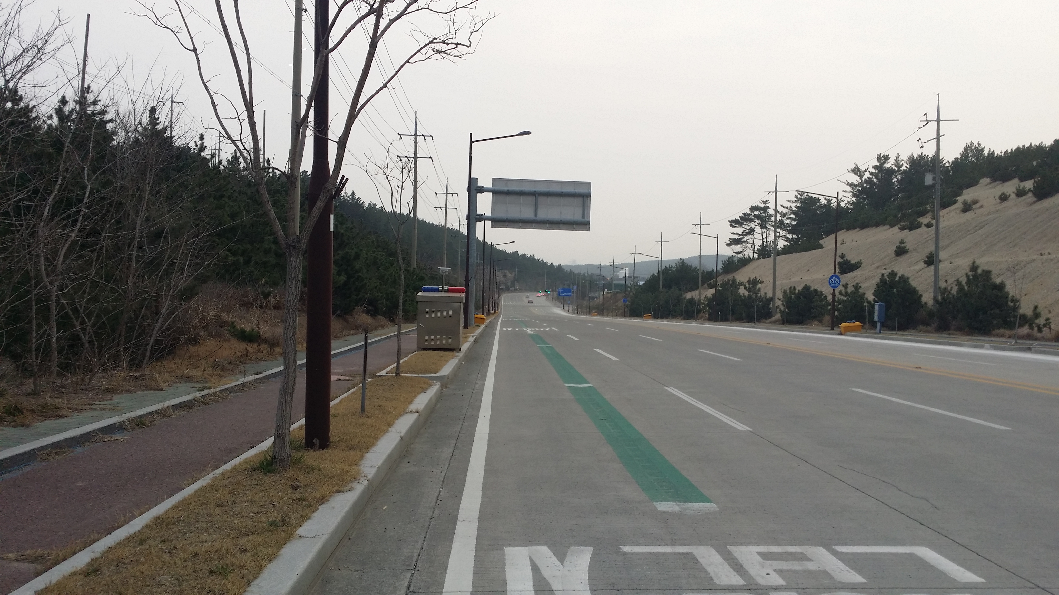 흥해 방면으로 이동하니 중앙분리대 위 철망이 끝나는 지점에 올라서 자세를 낮추니 안전감 있어 좋네