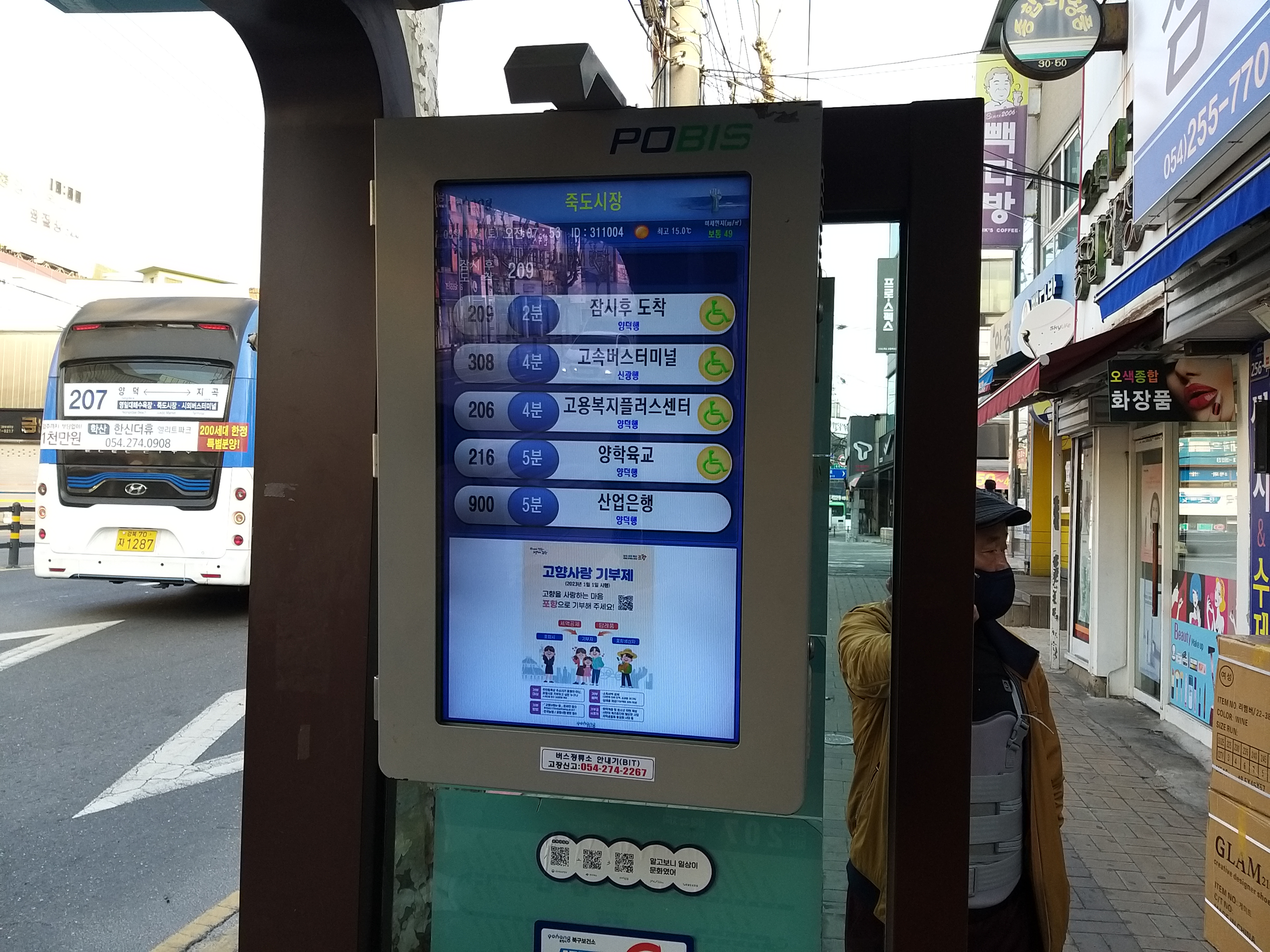 08시01분 죽도시장에서 308번을 승차한다