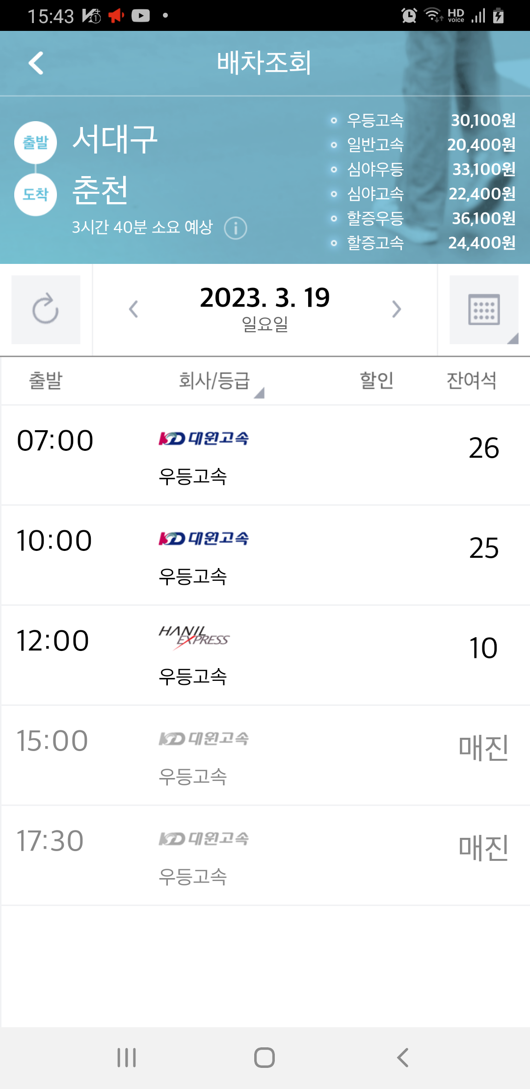 춘천까지 예상 소요시간이 3시40분이다. 재수 좋으면 춘천에서 10시30분에 양구行 버스를 탈수 있을것 같다. 이상하게 승차 인원을 100% 안채우고 버스가 출발한다. 평일이라 교통 흐름이 원활치 않다. 신천대로를 잘 기어가던 버스가 경로 이탈 하여 시내로 들어간다. 잠시후 이유를 알게된다. 고속버스는 고속도로상 환승센터외에는 경유지가 없는걸로 알고 있는데, 서대구터미널로 진입한다. 이제사 100%의 승객을 안채운 이유를 알게된다. 아 미역국 먹었네. 동대구나 서대구 출발시간이 같다. 경험 안해본 사람들은 각각 출발 한다고 생각이 들겠네