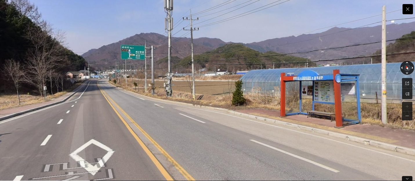13:15 대암아파트 정류소 / 20분이면 충분한 거리를 36분이나 걸렸다. 양대 포탈엔 없는 정류소다. 팔랑에 다달아 하차벨을 눌렀더니 차를 세운다. 잘못 눌렀다 소리도 못내고 내렸는데, 팔랑에서 하차 하는것 보다 이동 거리가 짧다. 도솔산을 바라보며 통문삼거리로 이동한다