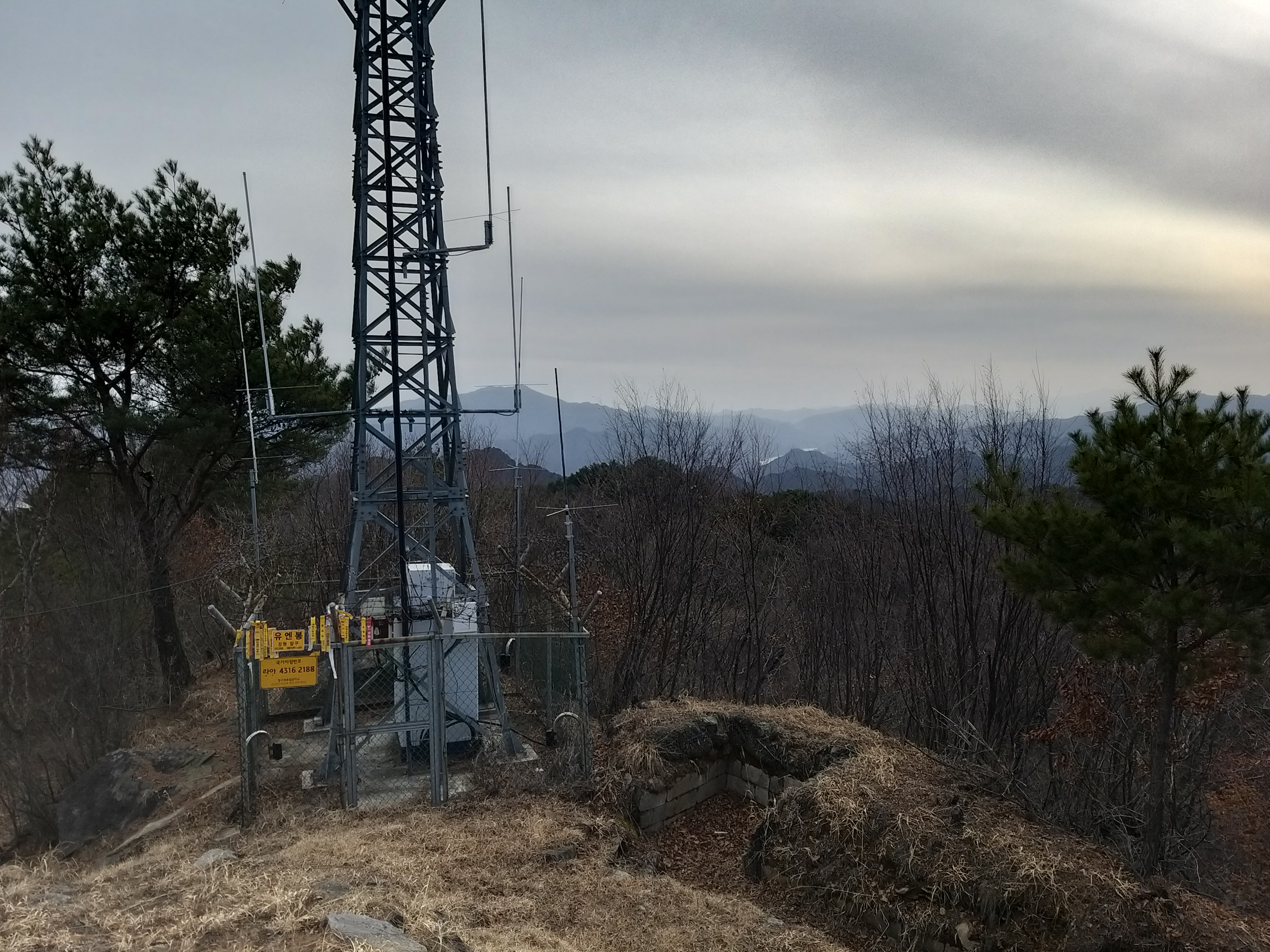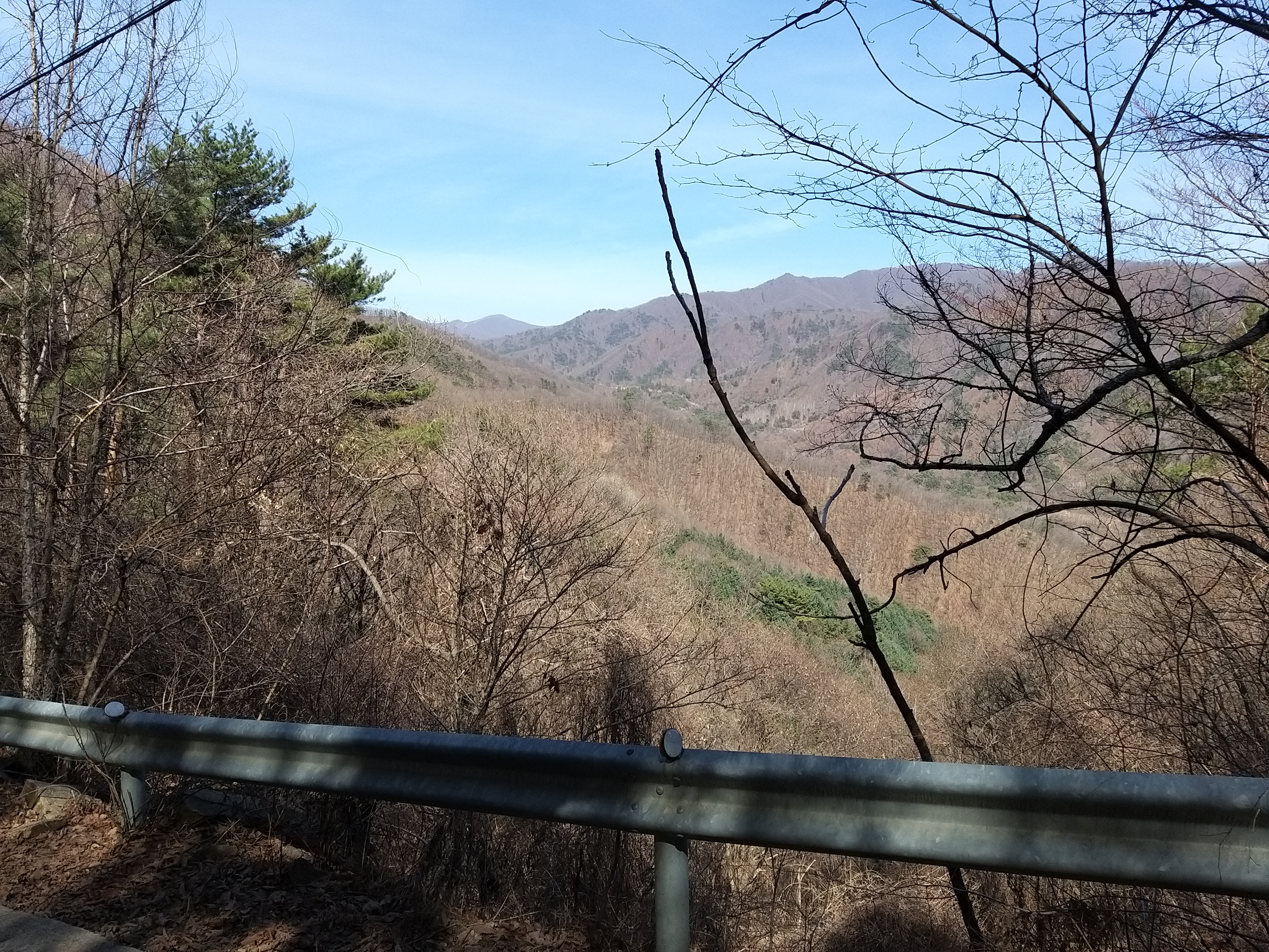 ??:?? 성곡령 / 내려설곳이 마땅치 않을게다. 걍 직진하면 저기 낙석방지펜스 왼쪽(사진상)에 동아줄이 있다. 동아줄 잡고 내려서 틈으로 빠져 나오면 끝. 아마 18시35분경 내려선것 같다. 망할 기사만 아니면 군량(3.2Km)으로 하산했을텐데. 금악리 까진 5.5Km