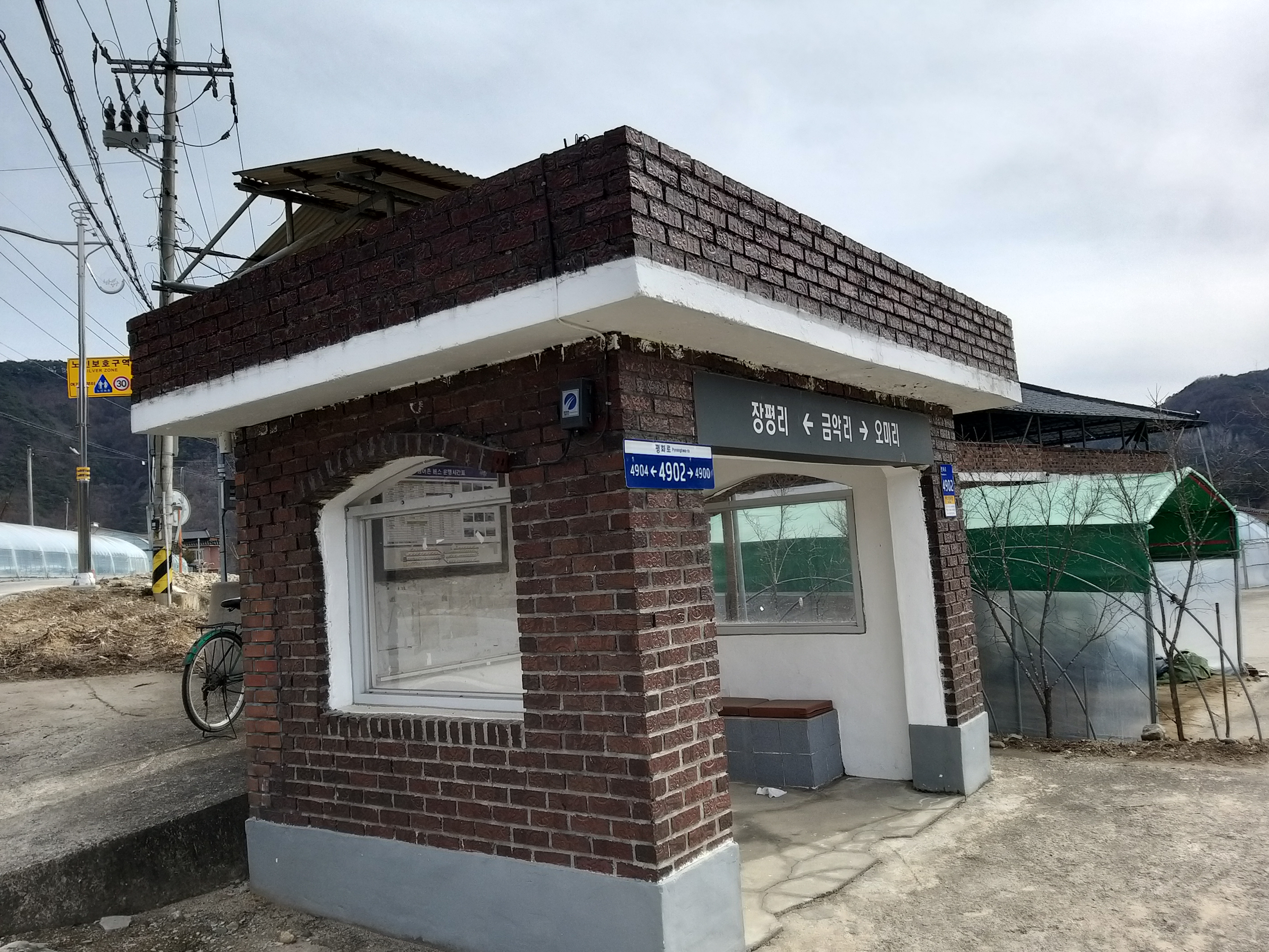 금악리 마을회관 정류소 / 19시40분 이전에 도착. 버스 정류소에 도착하여 정리를 하던중 양구에서 19시에 나를 태우고 나갈 버스가 오미리를 향해 19시40분 지나가는걸 체크함