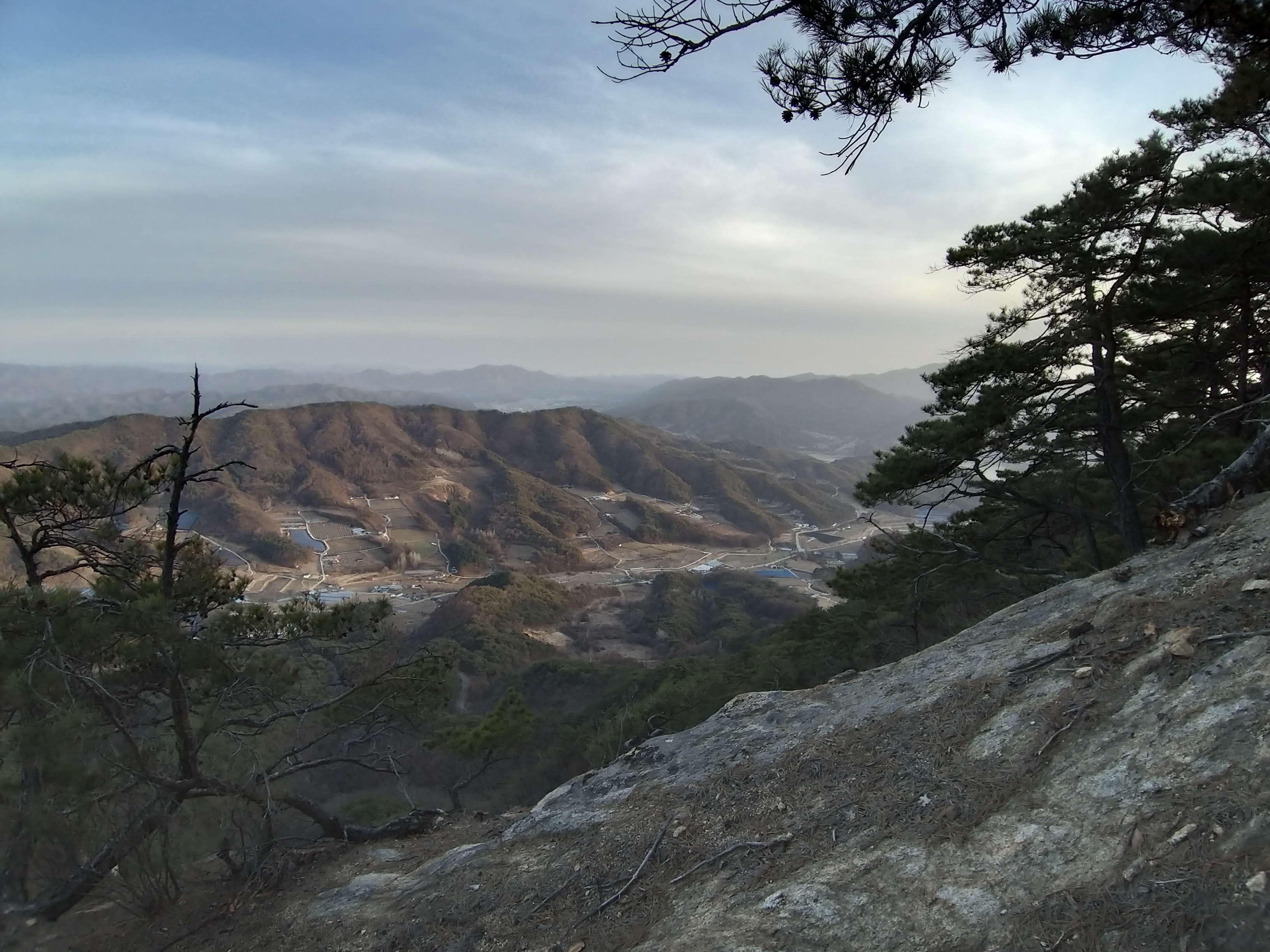 18:08 577.9봉을 향해 암릉구간을 오르며 군량리를 내려다 본다