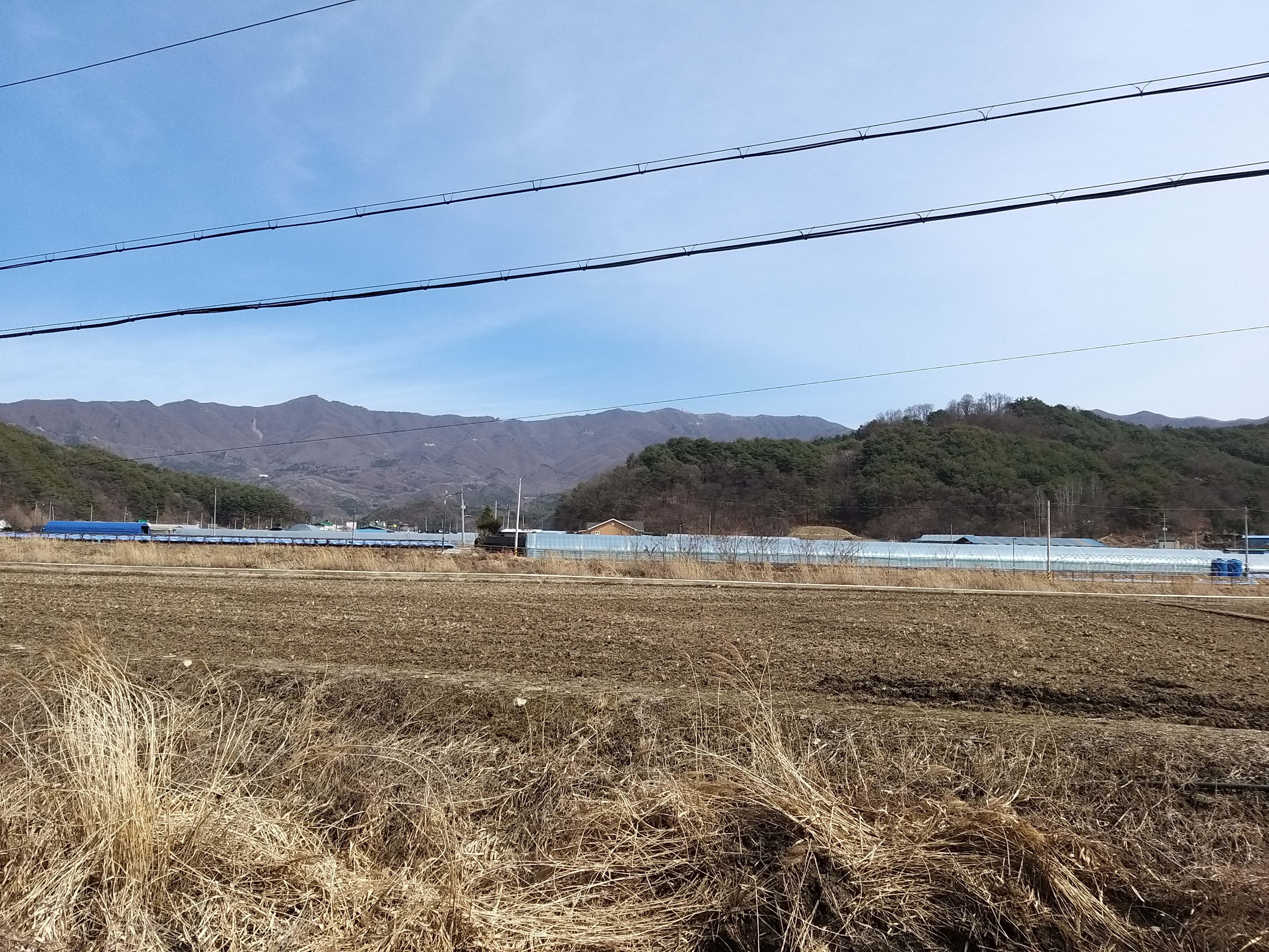 14:32 비득재 갈림길을 지나 작도를 걸으며 비득재로 내려서는 능선을 바라본다. 도로엔 타이어 자국이 선명하다. 월운리를 지나며 숙박비 아낄려 평일을 택한걸 후회했다. 가옥은 없고, 농경지만 있고, 민통선 지역이라 출입을 금한다는 경고문이 있고, 군차량은 가끔씩 지나가고. 차량이 정차하여 민통선 지역이니 되돌아 가라면 피의능선 전투전적비 부근에서 치고 오를 각오를하며 가슴 조리며 진행한다