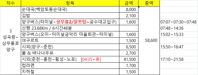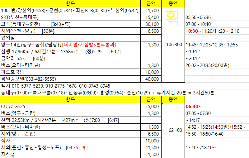 08:58 개편전 차량 운행 시간에 맞춰 계획을 짰더니, 엉뚱한 버스를 타고 1시간5분을 허비하고도 성곡령에 약 35분 늦게 도착 예정이라 춘천에서 막차 타는데 지장없어 차편을 예매했다