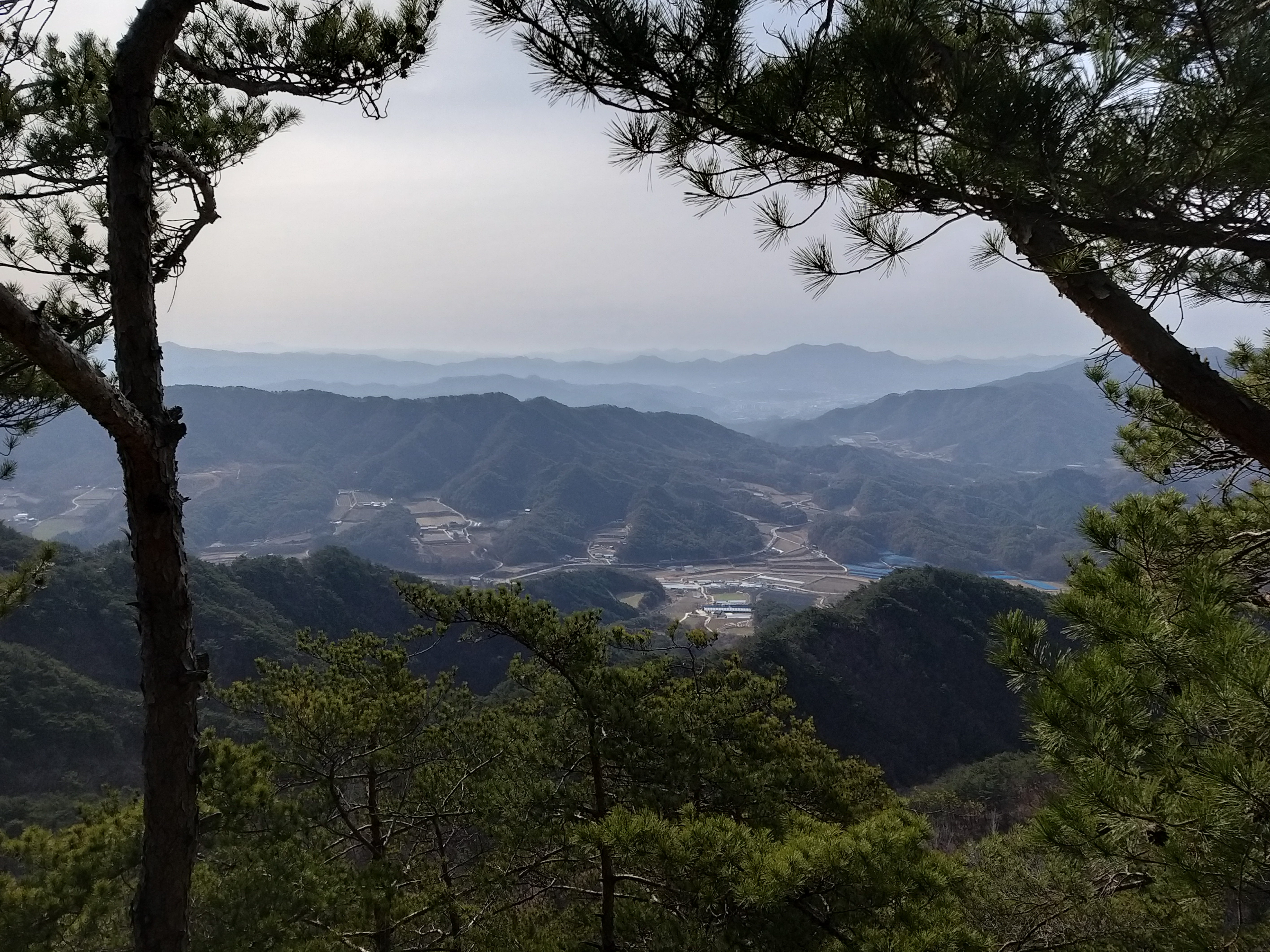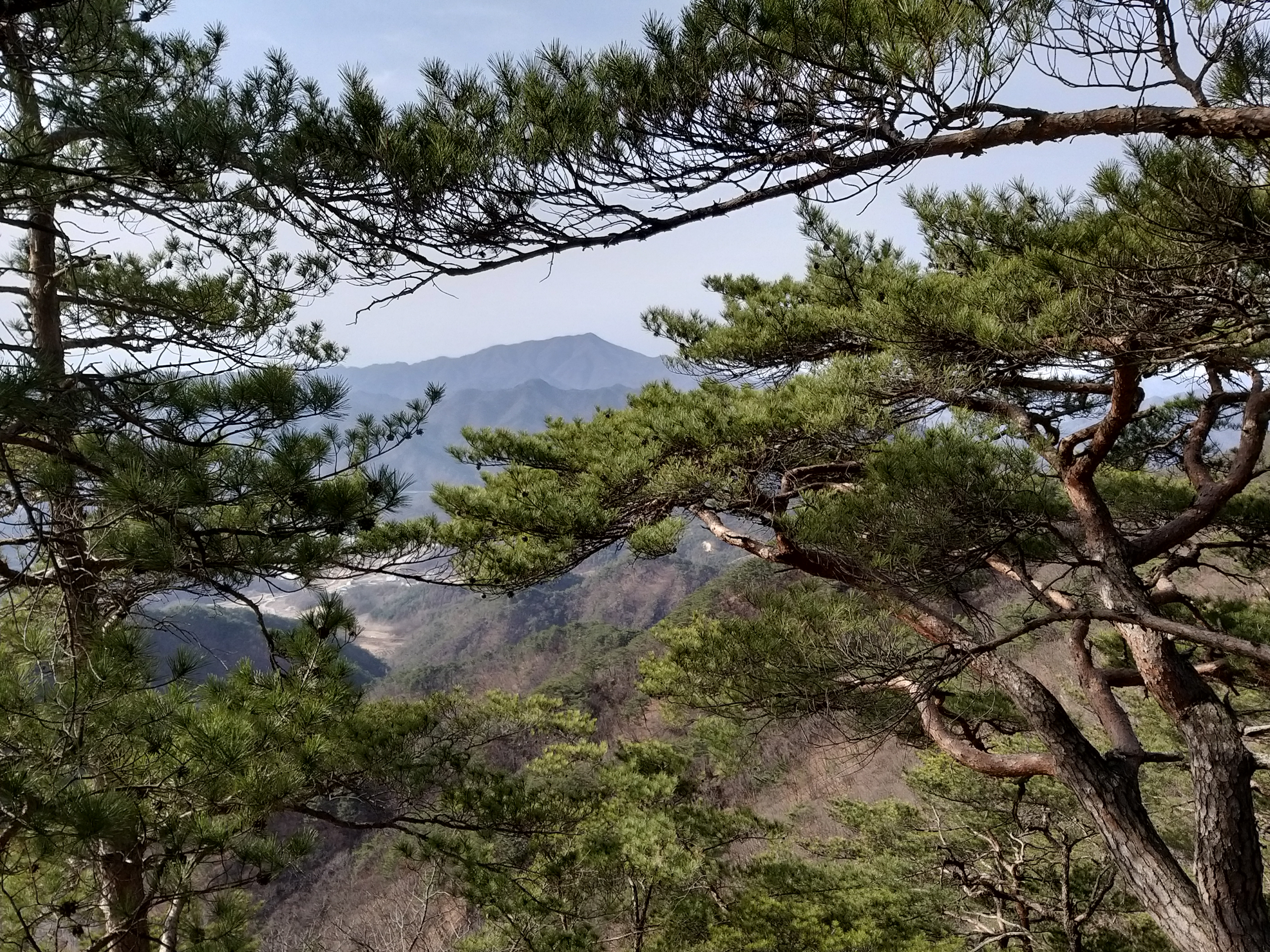 소나무에 가려 전망대 구실을 못한다. 도솔지맥 마루금들이다. 사명산은 다시 찾고 싶었던 몇 안되는 산중에 하나다