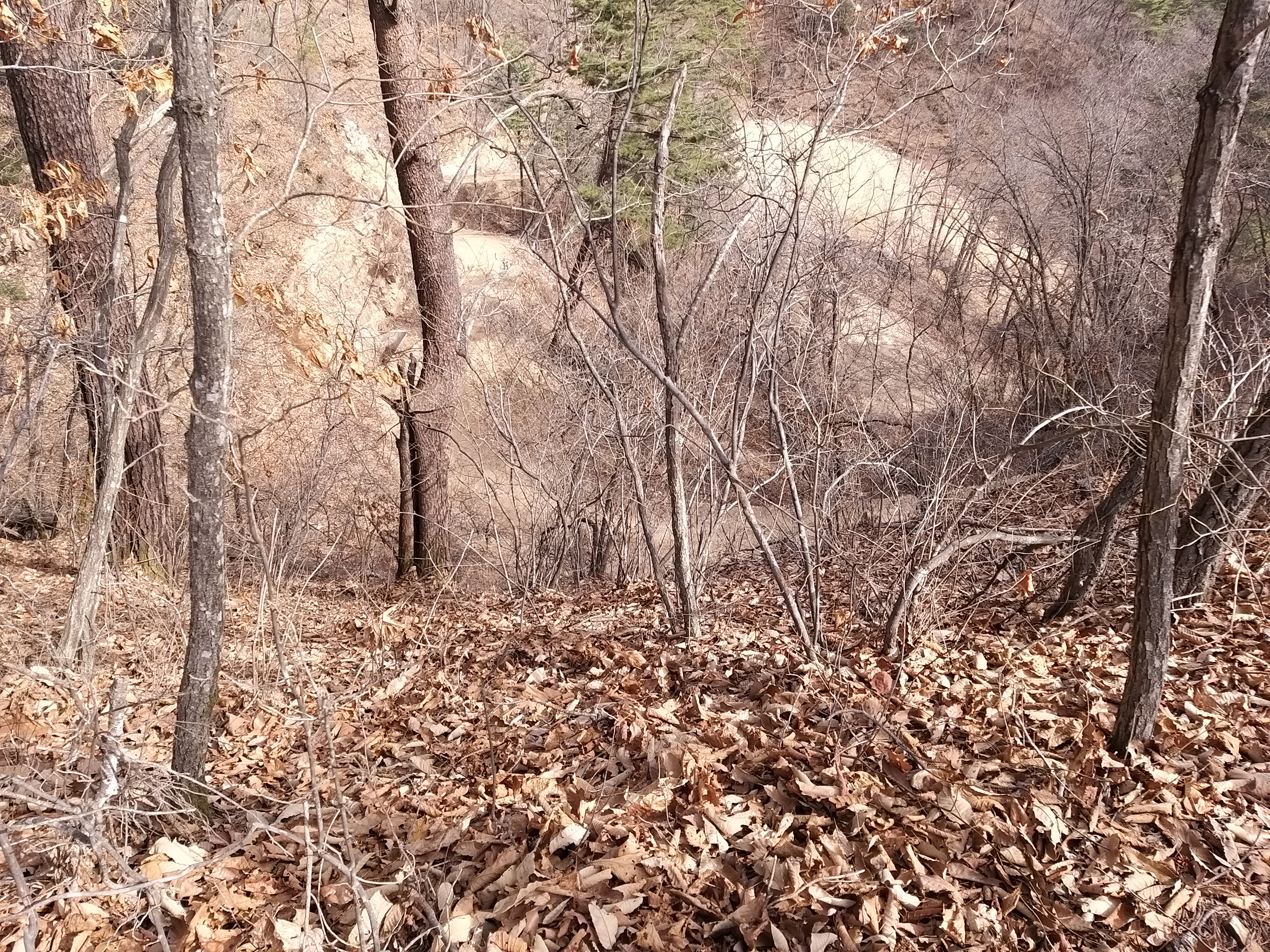 아래 사진은 똥벼락님 블로그에서 발췌한 내용으로 임도에서 좌측으로 진행시 마땅한 접속 구간이 없다는게다