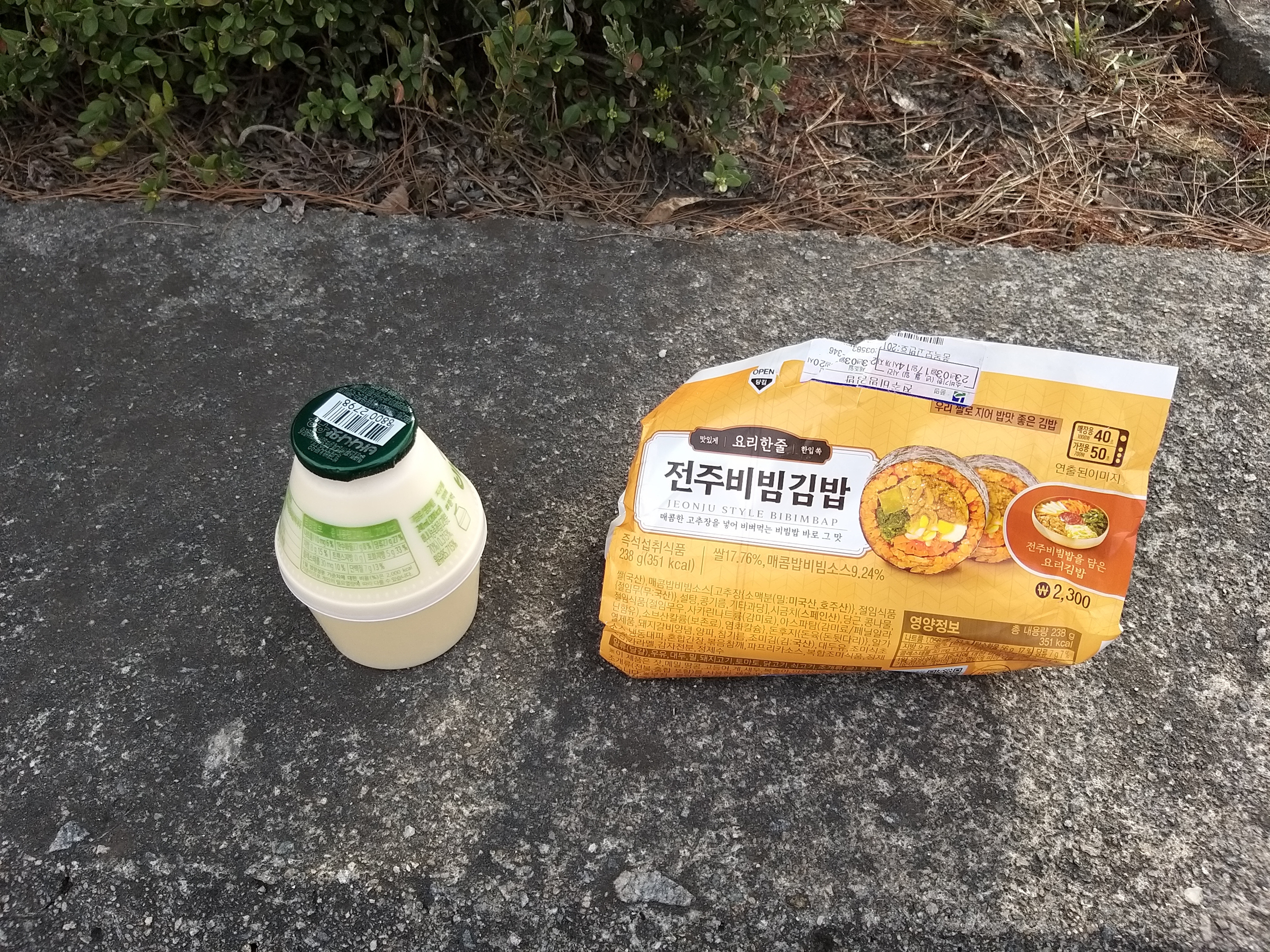 국밥집 대각선 방향에서 김밥구입. 생수는 모텔에서 제공한걸로