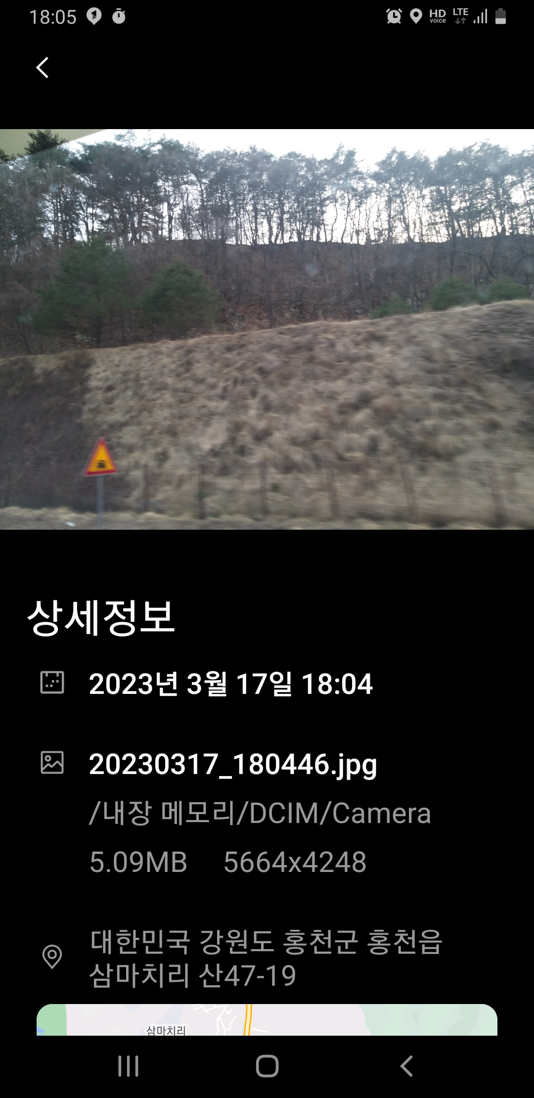 버스는 춘천 시내를 어렵게 빠져 나와 쌔빠지게 달려 홍천에 예정된 시간보다 3분 늦은 17시53분 도착하여 출발한다. 횡성이 중간 경유지인데, 예전엔 고속도로 입구 인근에서 통화후 진입 여부를 결정하던데(타는 승객이 거의 없었음) 홍성에서 예매된 좌석이 덜 차 떠나는걸로봐 오늘은 횡성을 경유 한다고 마음 먹었는데 이 아찌 국도로 달린다. 그동안 경험한 데이타와 네비를 구동하니 소요시간이 비슷하다. 기사님은 정확하게 고속도로 경유 시간과 꼭 맞춰 30분만에 횡성에 도착했다. 홍성과 횡성간에 소요 시간이 약 30분인데 배차 시간은 25분이다. 혹시 횡성에서 부산行 버스를 탄다면 예정된 시간보다 조금 늦으니 이점 감안하여 여행 하시길. 18시15분에 출발해야할 버스가 18시25분 출발한다. 국도를 달린 덕분에 한강기맥의 추억인 삼마치 고개를 다시 보게 되었다
