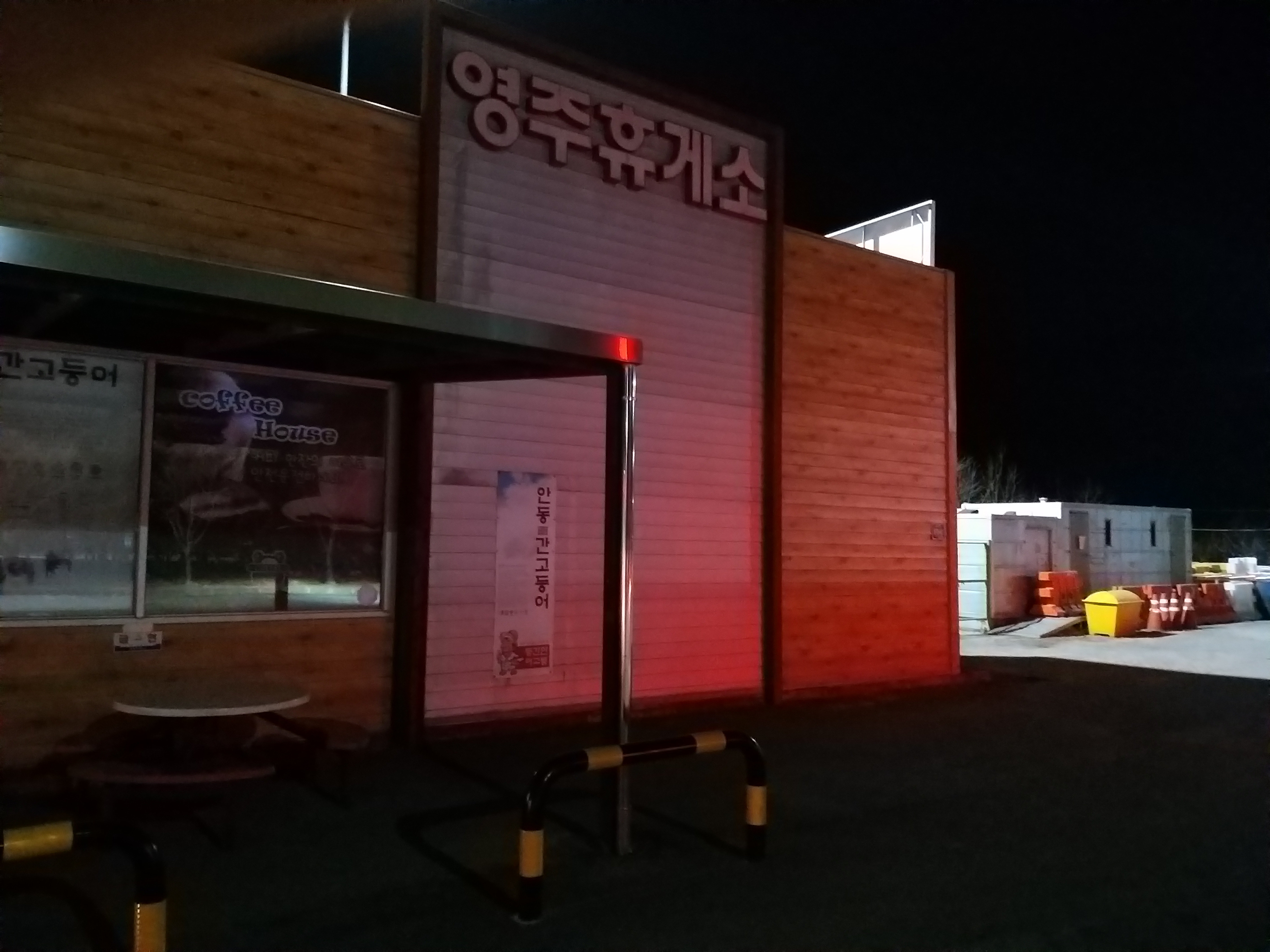 단양휴계소 까지 경유지 타임 체크를 하고, 안동휴계소에서 휴계 시간을 갖기에 잠시 눈을 붙였는데 10분간 쉰단다. 엉 벌써 안동휴계소. 아니다 영주휴계소에 진입했네