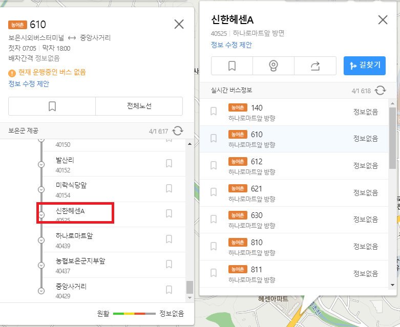 신한헤센 아파트에서 하차하여 길건너 승강장에서 830번대(830, 831, 832번) 버스를 타면된다