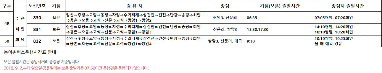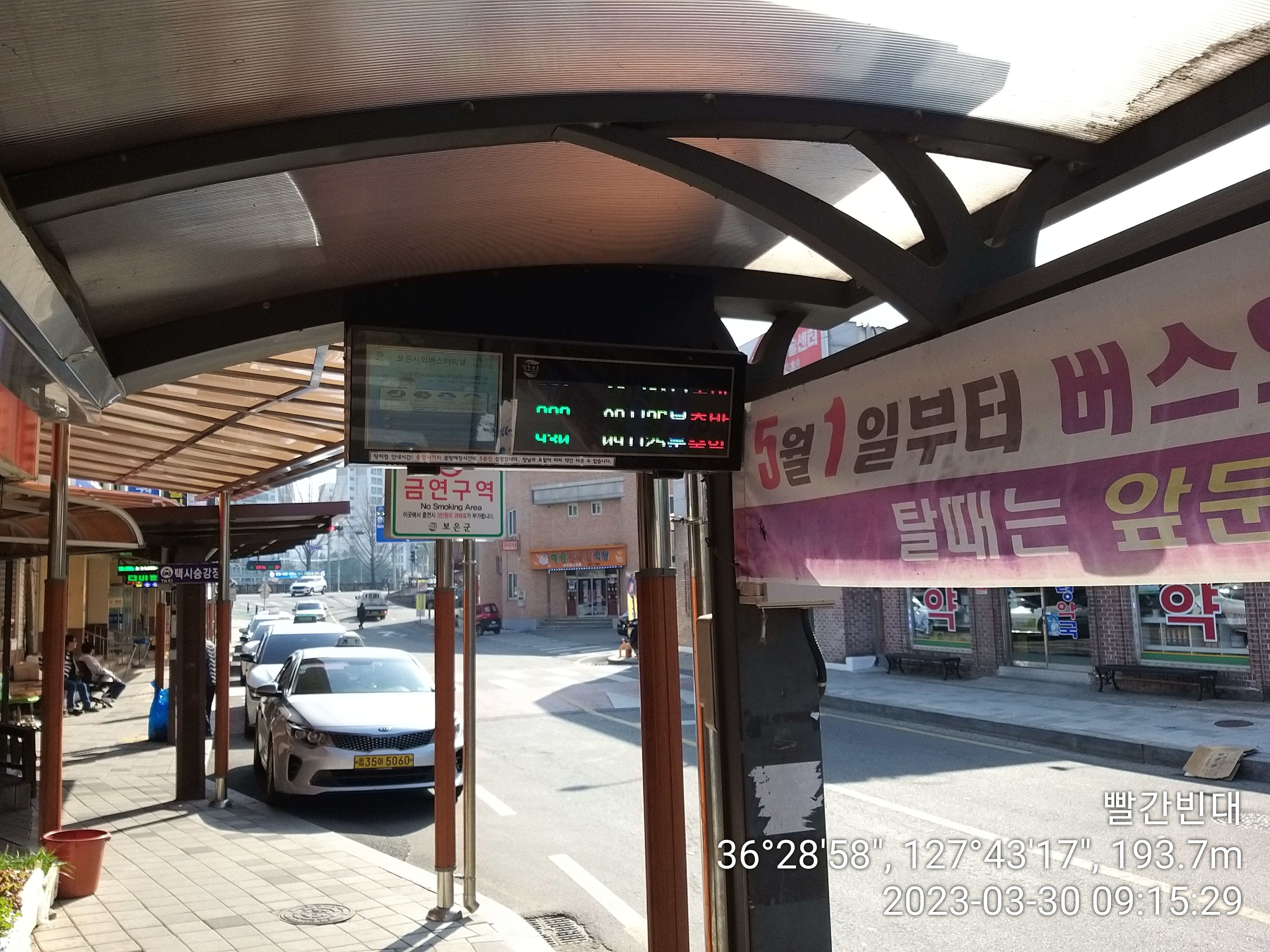 보은군 농어촌버스 시간표는 다음 정류소인 중앙사거리 기준으로 이곳 터미널엔 5분전 출발 예정 이라는데, 중앙사거리까지 1분 거리라, 그곳 출발 시간에 맞춰 2~3분전에 이곳에서 출발하네