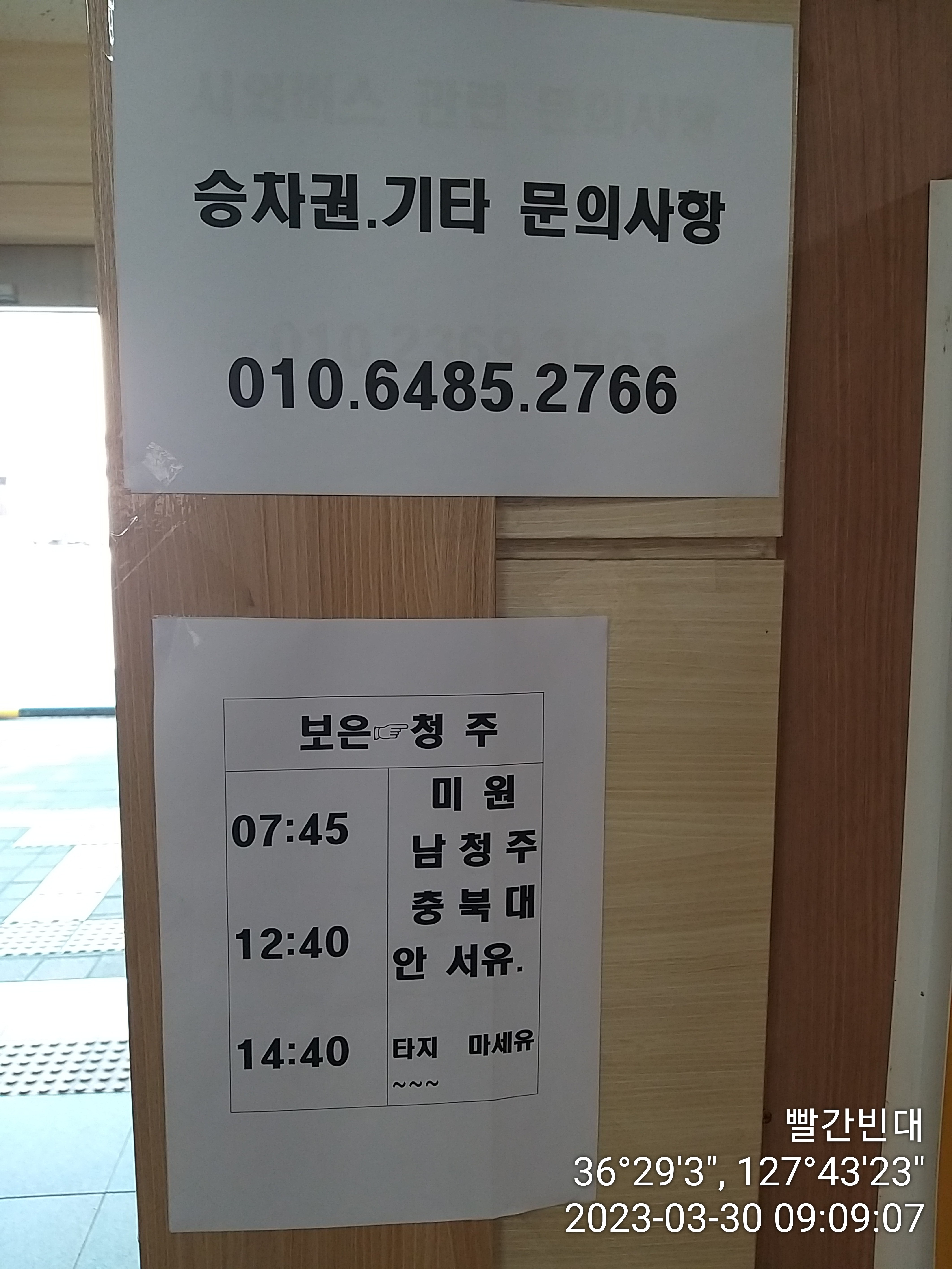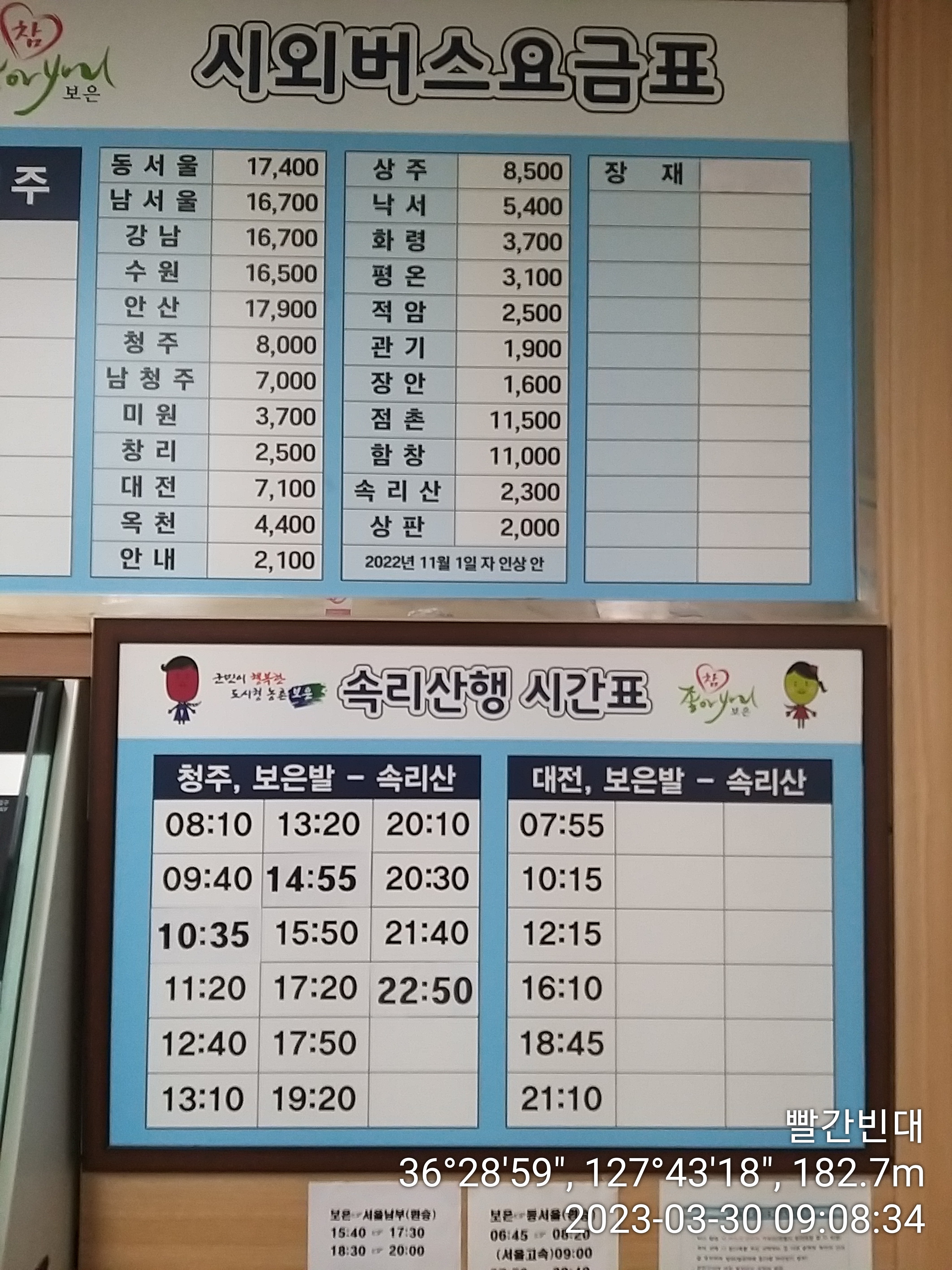 보은터미널 버스 시간표