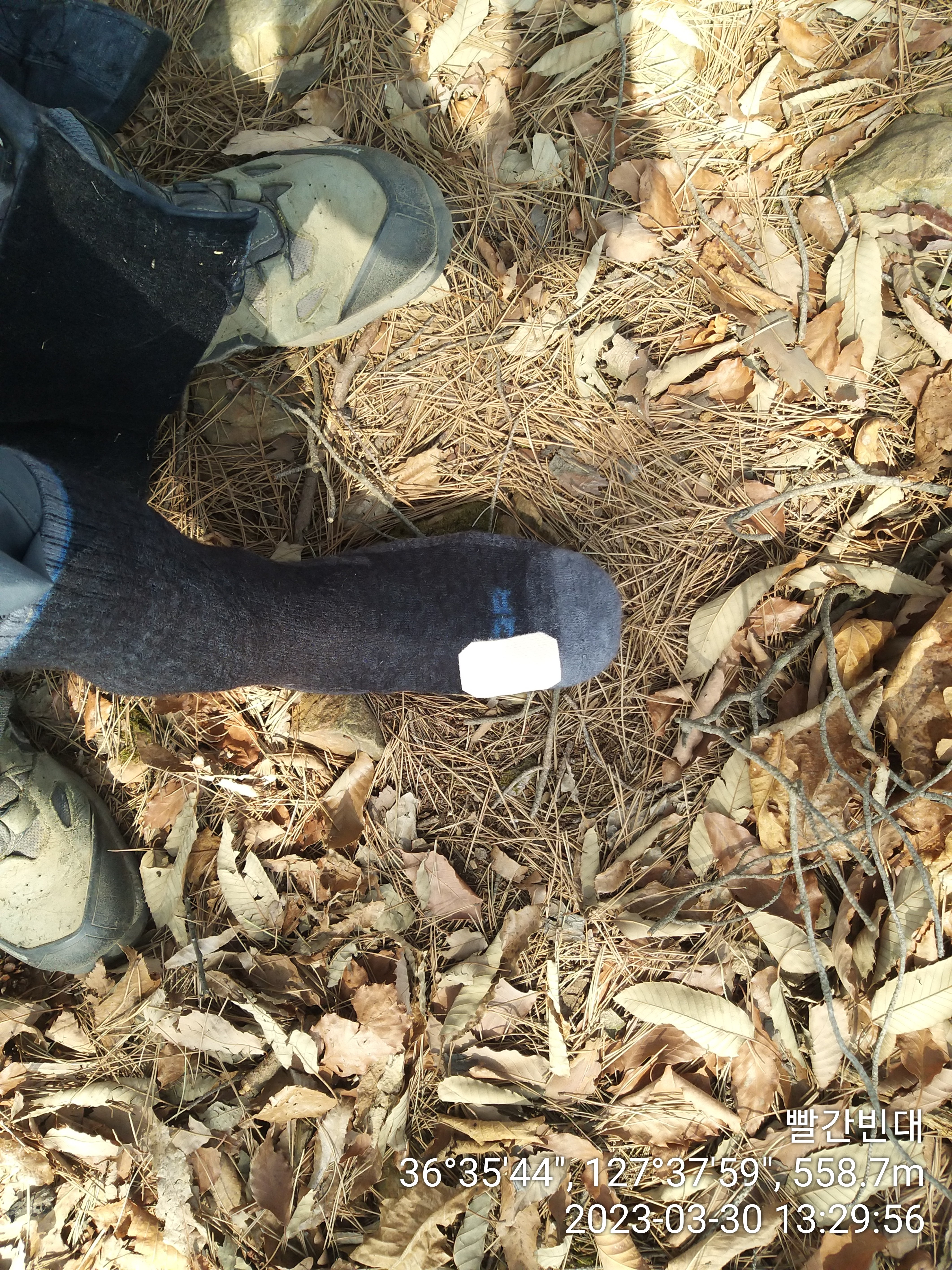 나에겐 5컬레의 등산화가 있다. 그중 잠발란(뉴핀스)은 너무 무거워 폐기해야하고 캠프라인(다이나스)은 발등에 500원 짜리 주화만한 구멍이 생겨 폐기해야하나 비암이 동면하는 겨울엔 쓸만하여 유보중이고 나머지 3컬레로 산행중인데 이것들이 가끔 한번씩 말썽을 일으킨다. 오른쪽 뒷꿈치는 관리 부족으로 변형이와 한번씩 통증을 유발하는데 다이소에서 힐링풋패드를 구입하여 實이 화장 지울때 사용하는 솜을 덧대니 해결 되었고, 가끔씩 발생하는 복숭아뼈 시치는거, 발등 시치는거, 새끼 발가락 물집 잡히는건 그때 그때 상황봐 대처하던지 무시하던지 했는데, 오늘은 초반부터 3종 세트가 순차적으로 발생하여 금일 및 내일 산행을 어렵게 할려하네. 먼저 왼쪽 안 복숭아뼈가 시친다. 발등 덮개가 말썽이네 인위적으로 위치를 바꿔주면 괜찮는데, 이내 원위치되어 시친다. 안되겠다. 손수건을 덧댄다. 살것같네. 잠시후 왼쪽 엄지 발등이 시친다. 작은놈이 훈련소 입소할때, 물집 방지용 패드가 필수품이라하여 사줬더니 남은걸 가져왔네. 그걸 내가 요긴하게 활용하고 있다. 발등에 붙이니 끝. 아! 끝이 아니네 이번엔 오른쪽 새끼 발가락에 물집이 잡힐려네. 비학지맥 마무리때 생긴 부위가 약해져 재발될 조짐이다. 발바닥에 붙였는데 그리 신통치 않았지만 무사히 산행을 마쳤다.